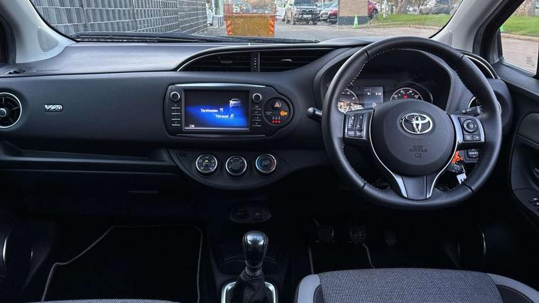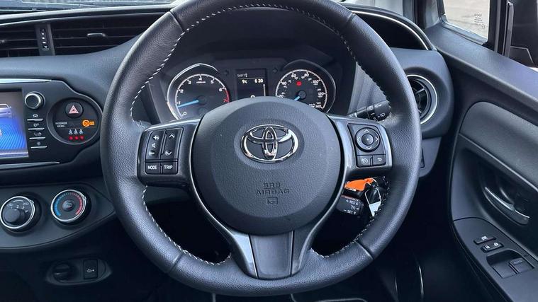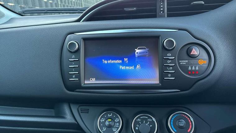 4.2" coloured LED TFT multi information display, Analogue speedometer, Analogue tachometer, Auto speed limiter, Bluetooth connectivity, Cruise control, External temperature gauge, Fuel indicator with low level warning, Key reminder warning, Lights on warning, Multi information display switches on steering wheel, Power Steering, Reversing camera, Trip computer, 6 speakers, Auxiliary input socket, Steering wheel mounted audio/telephone switches, Toyota Touch 2 with DAB, USB connection, Auto up and down function on drivers window, Automatic wipers, Bi-tone grey roof, Black lower front grille, Body colour bumpers, Body colour door handles, C pillar decal, Daytime running lights, Electric adjustable heated door mirrors, Electric front windows, Follow me home headlights, Front fog lights, Grey contrasting colour door mirrors, Grey door moulding, Grey door side sills, Grey front grille and fogs, Headlight cut-off reminder, LED High mounted stop lamp, Manual dimming rear view mirror, Privacy glass, Projector headlights, Rain sensitive windscreen wipers, Rear combination lights bulb type, Rear window defogger, Rear wiper, Turning signal integrated indicators in door mirrors, Y20 Badging, 12v power outlet - front, 3 adjustable rear headrests, 3 spoke leather steering wheel, 60/40 split folding rear seat, Active headrests, Boot light, Data Communication Module (DCM) connected services, Driver and front passenger personal light, Driver and front passenger Whiplash Injury Lessening seats, Fabric upholstery, Front and rear cup holders, Front map reading lights, Front seats with lumbar support, Glovebox, Height adjustable driver's seat, Height adjustable front head restraints, Illuminated entry system, Isofix seat fixing, Leather gearshift, Manual air conditioning, Map pockets on the backs of the front seats, Pollen filter, Removable rear parcel shelf, Sliding front seats, Soft touch inner door garnish, Tilt/telescopic steering column, Y20 badge interior and in seat trim, 3 point seatbelts on all rear seats, ABS+EBD+Brake assist, Collision mitigation braking system, Emergency brake light system (EBS), Front passenger airbag on/off switch, Front seatbelt reminder, Height adjustable front seatbelts with pre-tensioners and load limiters, Hill start assist control (HAC), Rear child proof door locks, Rear seat belt reminder, Road sign information display, Seatbelt warning lamp and buzzer, Supplemental restraint system (SRS) airbags - 7 airbags including driver, front passenger, curtain, side and knee airbags, Toyota safety sense including Road sign assist, Pre collision system, auto high beam and lane departure alert), Tyre pressure warning system, Vehicle stability control VSC + traction control, Engine immobiliser, Power and remote door locking, Interior satin accents, Soft touch instrument panel, 16" 10 spoke grey machined alloy wheels, Space saver spare wheel,