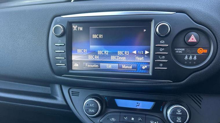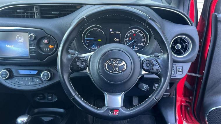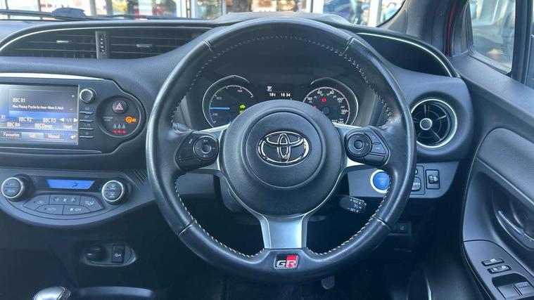 4.2" TFT colour screen, Bluetooth connectivity, Cruise control + speed limiter, Hybrid energy display, Power Steering, Push button start, Reversing camera, Road sign assist - RSA, Suspension tuning, Vehicle Stability Control (VSC), 6 speakers, DAB Digital radio, Steering wheel mounted audio/telephone switches, Touch 2 touchscreen Radio with iPod connectivity, Auto up and down function on drivers window, Automatic wipers, Bi-tone colour door mirrors, Black door mirrors, Black door moulding, Body colour bumpers, Daytime running lights, Electric adjustable heated door mirrors, Follow me home headlights, Front fog lights, Gloss black honeycomb lower front grille, GR Sport logo, LED High mounted stop lamp, Manual dimming rear view mirror, Power front windows, Projector headlights, Rain sensing front wipers, Rear combination lamp, Rear privacy glass, Rear spoiler, Turning signal integrated indicators in door mirrors, 3 rear headrests, Auto air conditioning, Dual zone air conditioning, Front and rear cup holders, Glovebox, Height adjustable driver's seat, Isofix seat fixing, Leather gearshift, Leather parking brake handle, Sliding front seats, Sports Leather steering wheel, Suede fabric upholstery, 3 point seatbelts on all rear seats, ABS+EBD+Brake assist, Active headrests, Emergency brake light system (EBS), Front passenger airbag on/off switch, Front seatbelt reminder, Hill start assist control (HAC), Rear seat belt reminder, Supplemental restraint system (SRS) airbags - 7 airbags including driver, front passenger, curtain, side and knee airbags, Toyota safety sense including Road sign assist, Pre collision system, auto high beam and lane departure alert), Tyre pressure warning system, Engine immobiliser, Power and remote door locking, Interior satin accents, Soft touch instrument panel, 17" alloy wheels, Tyre repair kit,