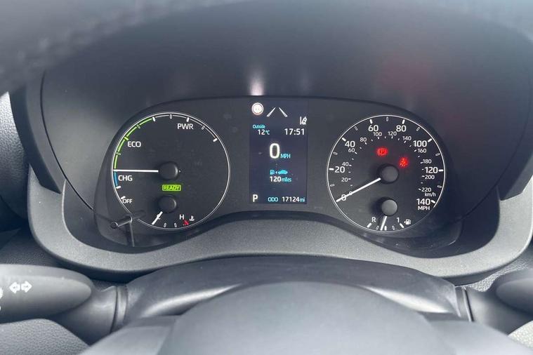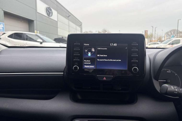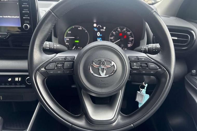 4.2" coloured TFT multi information display with analogue speedometer, Adaptive cruise control, Adjustable speed limit with speed warning, Bluetooth connectivity, E-call, Electric power steering, Hybrid energy display, Multi information display switches on steering wheel, Reversing camera, Smartphone integration with Apple CarPlay and Android auto, Tailgate, Voice recognition, Vehicle Stability Control (VSC), 4 speakers, 7" Multimedia display touch screen, Toyota Touch 2 with DAB, USB connection, Acoustic windscreen glass, Auto windscreen wipers, Automatic headlights, Body coloured door mirrors, Bulb indicators, Chequered front grille, Daytime running lights, Electric adjustable heated door mirrors, Follow me home headlights, Front auto power windows with anti jam protection, Halogen projector headlights, LED High mounted stop lamp, Manual headlight levelling, Rain sensor, Rear side wing doors, Rear spoiler, Rear wiper, Shark fin antenna, Turning signal integrated indicators in door mirrors, Variable front intermittent wipers, 3 adjustable rear headrests, 3 spoke leather steering wheel, 60/40 split folding rear seat, Active headrests, Adjustable boot height, Auto air conditioning, Coat hooks in rear grab handles, Cup holders (2 front & door), Data Communication Module (DCM) connected services, Fabric upholstery, Front armrest, Glovebox, Grey roof lining, Height adjustable driver's seat, Isofix seat fixing, Leather gearshift, Pollen filter, Shopping bag hooks, Single front passenger seat, Tilt/telescopic steering column, 3 point seatbelts on all rear seats, ABS+EBD+Brake assist, Electronic parking brake, Emergency brake light system (EBS), Front passenger airbag on/off switch, Front seatbelt reminder, Hill start assist control (HAC), Rear child proof door locks, Rear seat belt reminder, Supplemental Restraint System (SRS) 8 airbags: Driver & passenger's airbags, dual side curtain airbags, side impact airbags, front centre airbag, Toyota Safety Sense 2, Precollison + Night time Pedestrian & Cyclist Detection, Lane Trace Assist, Auto High Beam, Intelligent ACC & Road Sign Assist, Tyre pressure warning system, 2x Master key, Alarm/immobiliser, Remote powered central double locking doors, Soft touch instrument panel, Space saver spare wheel,
