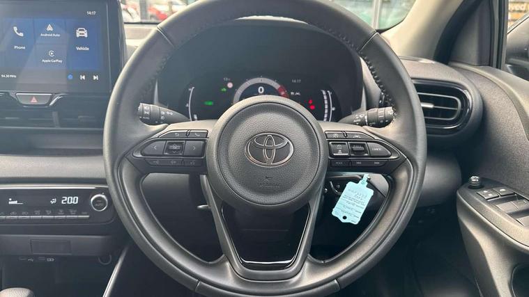 7" Digital Combimeter, Adaptive cruise control, Adjustable speed limit with speed warning, Bluetooth connectivity, Colour binocular inspired displays with digital speedometer, E-call, Electric power steering, Hybrid energy display, Lane trace assist, Multi information display switches on steering wheel, Pre-collision system (PCS), Reversing camera, Smartphone integration with Apple CarPlay and Android auto, Tailgate, Voice recognition, Vehicle Stability Control (VSC), 4 speakers, 9" Multimedia touch display, Toyota Touch 3 system with DAB radio, USB connection, Acoustic windscreen glass, Auto high beam assist, Auto windscreen wipers, Automatic headlights, Body coloured door mirrors, Electric adjustable heated door mirrors, Follow me home headlights, Front auto power windows with anti jam protection, LED daytime running lights, LED front fog lights, LED front light guide, LED Headlights, LED High mounted stop lamp, LED Indicators, LED rear light guide, Manual headlight levelling, Painted chequered front grille, Rain sensor, Rear auto power windows with anti jam protection, Rear privacy glass, Rear roof spoiler, Rear side wing doors, Rear wiper, Shark fin antenna, Turning signal integrated indicators in door mirrors, Variable front intermittent wipers, 3 adjustable rear headrests, 3 seat bench in 2nd row, 3 spoke leather steering wheel, 60/40 split folding rear seat, Active headrests, Adjustable boot height, Auto air conditioning, Coat hooks in rear grab handles, Cup holders (2 front & door), Data Communication Module (DCM) connected services, Fabric upholstery, Front armrest, Glovebox, Grey roof lining, Height adjustable driver's seat, Isofix seat fixing, Leather gearshift, Pollen filter, Shopping bag hooks, Single front passenger seat, Tilt/telescopic steering column, 3 point seatbelts on all rear seats, ABS+EBD+Brake assist, Electronic parking brake, Emergency brake light system (EBS), Front passenger airbag on/off switch, Front seatbelt reminder, Hill start assist control (HAC), Rear child proof door locks, Rear seat belt reminder, Supplemental Restraint System (SRS) 8 airbags: Driver & passenger's airbags, dual side curtain airbags, side impact airbags, front centre airbag, Toyota Safety Sense 3 with over the air updates, Tyre pressure warning system, 2x Master key, Alarm/immobiliser, Remote powered central double locking doors, Soft touch instrument panel, Space saver spare wheel,