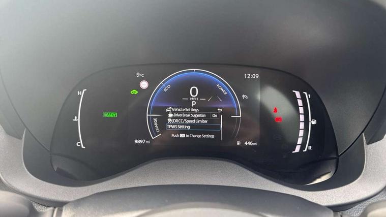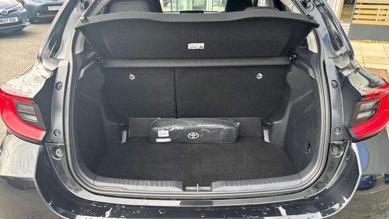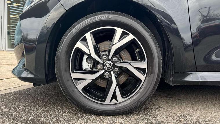 7" Digital Combimeter, Adaptive cruise control, Adjustable speed limit with speed warning, Bluetooth connectivity, Colour binocular inspired displays with digital speedometer, E-call, Electric power steering, Hybrid energy display, Lane trace assist, Multi information display switches on steering wheel, Pre-collision system (PCS), Reversing camera, Smartphone integration with Apple CarPlay and Android auto, Tailgate, Voice recognition, Vehicle Stability Control (VSC), 4 speakers, 9" Multimedia touch display, Toyota Touch 3 system with DAB radio, USB connection, Acoustic windscreen glass, Auto high beam assist, Auto windscreen wipers, Automatic headlights, Body coloured door mirrors, Electric adjustable heated door mirrors, Follow me home headlights, Front auto power windows with anti jam protection, LED daytime running lights, LED front fog lights, LED front light guide, LED Headlights, LED High mounted stop lamp, LED Indicators, LED rear light guide, Manual headlight levelling, Painted chequered front grille, Rain sensor, Rear auto power windows with anti jam protection, Rear privacy glass, Rear roof spoiler, Rear side wing doors, Rear wiper, Shark fin antenna, Turning signal integrated indicators in door mirrors, Variable front intermittent wipers, 3 adjustable rear headrests, 3 seat bench in 2nd row, 3 spoke leather steering wheel, 60/40 split folding rear seat, Active headrests, Adjustable boot height, Auto air conditioning, Coat hooks in rear grab handles, Cup holders (2 front & door), Data Communication Module (DCM) connected services, Fabric upholstery, Front armrest, Glovebox, Grey roof lining, Height adjustable driver's seat, Isofix seat fixing, Leather gearshift, Pollen filter, Shopping bag hooks, Single front passenger seat, Tilt/telescopic steering column, 3 point seatbelts on all rear seats, ABS+EBD+Brake assist, Electronic parking brake, Emergency brake light system (EBS), Front passenger airbag on/off switch, Front seatbelt reminder, Hill start assist control (HAC), Rear child proof door locks, Rear seat belt reminder, Supplemental Restraint System (SRS) 8 airbags: Driver & passenger's airbags, dual side curtain airbags, side impact airbags, front centre airbag, Toyota Safety Sense 3 with over the air updates, Tyre pressure warning system, 2x Master key, Alarm/immobiliser, Remote powered central double locking doors, Soft touch instrument panel, Space saver spare wheel,