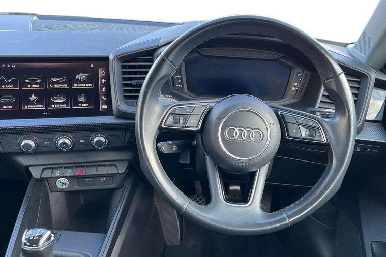 10.25" Digital instrument cluster display classis style instrument dials + speed, odometer, time, outside temperature, telephone menu + fuel level warning, Audi smartphone interface with connect compatible smartphone via USB directly MMI display + Nav, music, third party apps controlled via MMI controller, Automatic start/stop system, Bluetooth interface, Driver's information system, Electromechanical power steering, Emergency e-call, Emergency services call system, Lane departure warning system, Service interval indicator, Speed limiter, Voice control system, Washer fluid level indicator, Dynamic suspension, 1 x SDXC card reader, 2 x USB type C connection points, 6 passive loudspeakers, DAB Digital radio, MMI radio plus with 8.8" colour MMI display screen and MMI touch, Auto dimming rear view mirror, Body coloured bumpers, Body coloured door mirrors, Electric front and rear windows, Electrically adjustable, heated, folding door mirrors with integrated LED side indicator, Front side air inlets with front spoiler lip and rear diffuser in matt black grained, Heat insulating glass windscreen and side windows, Heated rear windscreen, High level LED brake light, LED headlights with LED rear lights + dynamic rear indicators + headlight adjustment and high beam, turning light + LED daytime running lights, Radiator grille in matt black, Rain and light sensors, Rear fog lights, Rear side wing doors, Rear wing door, Rear wiper, 12V socket in centre console with two cup holders, 3 rear seats with headrests, 3 seat bench in 2nd row, 3 spoke leather multifunction plus steering wheel, 40:60 Split folding rear seat or folded fully, Air vents, door handle recesses and centre console in black, Delta cloth upholstery, Driver and passenger seat with manual height adjust with forward and backwards adjustment, Front head restraints, Front passenger seat, Front/rear floor mats, Height and reach adjustable steering wheel, ISOFIX child seat mounting for front passenger and outer rear seats including top tether attachment point of outer rear seats, Leather gear knob with aluminium trim, Leatherette handbrake grip, Luggage compartment light with front and rear reading lights, Manual air conditioning, Titanium grey cloth headlining, Luggage compartment pack - A1, 3x3 point rear seatbelts, Audi pre-sense front with pedestrain and cyclist recognition, Brake assist function, Driver and front passenger airbag with front side and head airbags, Electronic Stability Control including ABS, EBD, ASR and EDL, Front passenger airbag deactivation switch, Hill hold assist, Manual rear child locks, Seatbelt height adjustment for front seats, Seatbelt monitoring, Tyre pressure warning light, Warning triangle and first aid kit, Anti theft alarm, Anti theft wheel bolts and loose wheel warning, Immobiliser, Remote central locking with 2 foldaway keys, Black inlays polygon structure, 15" 5 arm design alloy wheels,