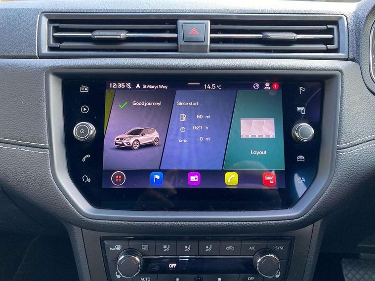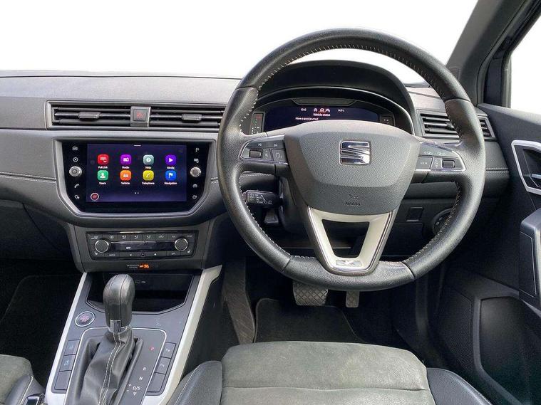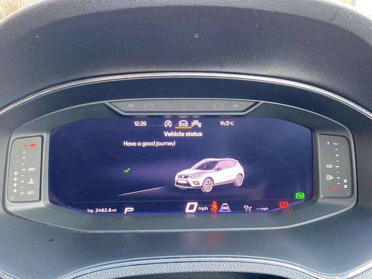 Interior chrome line trim, Leatherette dashboard, Connectivity pack plus - Arona, Interior chrome pack - Arona, Storage pack - Arona, 18" Performance alloy wheels, 2 folding remote keys with window open/close function, Alarm with back-up horn, Electronic engine immobiliser, KESSY Keyless entry and go, Locking wheel bolts, Remote central locking + deadlocks, Tow away protection, 6 speakers, Bluetooth interface for hands free and audio streaming, DAB digital radio and AM/FM radio, Steering wheel mounted audio controls, 3 point seatbelts on all rear seats, ABS, Active front headrests, Child locks on rear doors, Driver and front passenger airbags with front passenger airbag de activation, front side and curtain airbags, Electronic stability control, Emergency Brake Assist (EBA) and front assist, Front and rear seatbelt reminder, Hill hold control, Multi-Collision braking, Tiredness recognition system, Traction control, Tyre pressure monitoring system, Anti theft roof antenna, Auto dimming interior rear view mirror, Automatic activation of hazard warning lights, Automatic headlights, Body coloured bumpers, Body coloured door handle inserts, Chrome front grille frame, Chrome grille bars, Chrome grille surround, Chrome roof rails, Chrome window trim, Coming/leaving home lighting function, Electric front/rear windows with one touch/auto up/down, Electrically adjustable, heated and folding door mirrors, Front grille hot stamping, Full LED headlights dipped and mainbeam + front and rear fog lights, Hidden exhaust pipe, Ice metal door side panels, LED daytime running lights, LED rear tail lights and licence plate lights, Protective side mouldings, Rain sensing wipers, Rear window wash/wipe, Roof colour door mirrors, Visible VIN plate, Windshield wiper with intermittent control and potentiometer, 2 cupholders, 60/40 split folding rear seat, Aircare filter, Black interior roof, Double boot floor, Driver sunvisor with covered mirror + card holder, Dual zone climate control, Front courtesy light with front reading lights, Front seat back storage pockets, Gear shift indicator, Heated front seats, Height adjustable front seats, Height/reach adjustable steering column, Illuminated boot, Instrument lighting with brightness control, Interior light in footwell, central console and door panel, ISOFIX points in outer rear seats with top tether anchorage points, Leather steering wheel/gear knob/handbrake, Microsuede cloth upholstery, Multi-colour ambient interior lighting, Passenger sunvisor with vanity mirror, Storage net on centre console, Two front and three rear height adjustable headrests, 'Lights On' Reminder warning buzzer, Adaptive cruise control, Blind spot monitor, Digital clock, Digital cockpit, Electric speed sensitive power steering, Front parking sensor, Full Link Smartphone Integration with Mirror Link, Apple Car Play, Google Android Auto with USB Type C cable for Apple and Android compatibility, Low fuel warning light, Outside temperature display, Park assist system, Rear cross traffic alert, Rear parking sensor, Rear view camera, RPM counter, Seat connect with safety, service, remote and online, Trip computer, Comfort suspension,