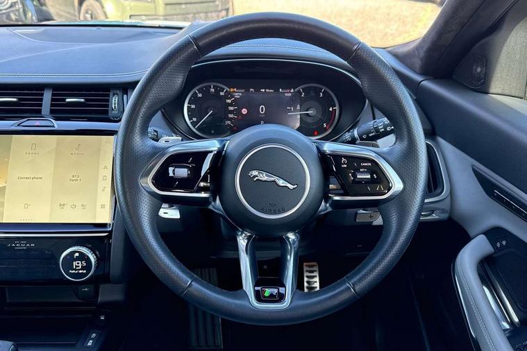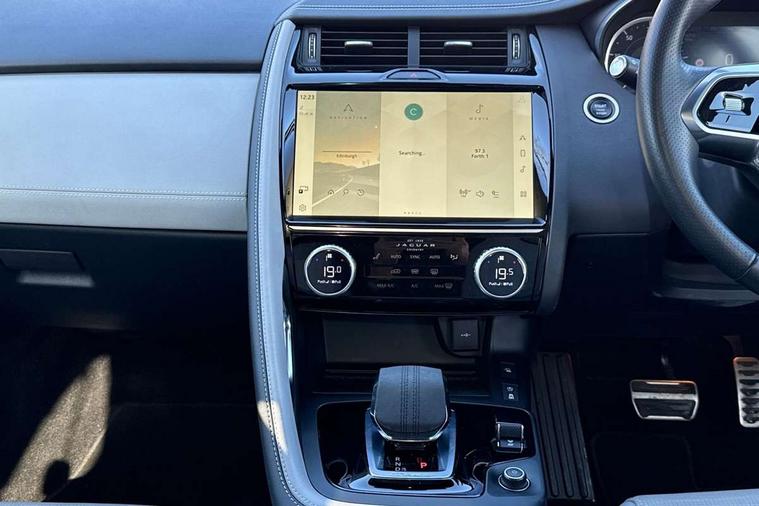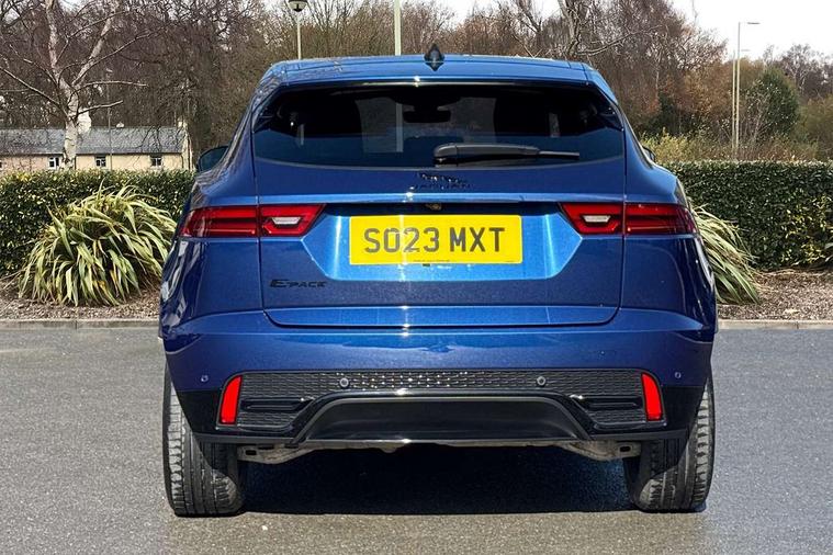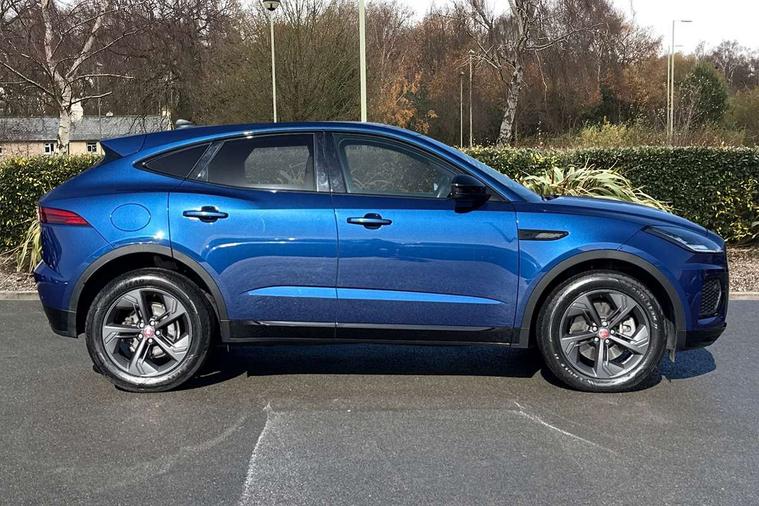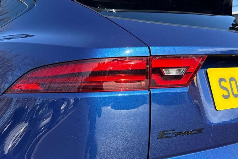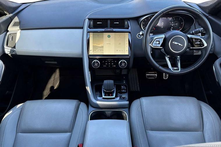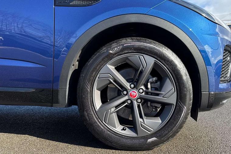 11.4" touchscreen with central ICP, 12.3" full digital instrument panel, Adaptive cruise control, Android Auto, Apple car play, Driver condition monitor, Eco driving style assistant, Electric power assisted steering, Emergency services call system, Front and rear parking aid, InControl remote, Jaguar drive control with adaptive surface response, Jaguar Toggle sport shift selector, Lane keep assist, Outside temperature gauge, Pivi pro connected infotainment system with smart settings and navigation pro, Push button start, Speed proportional steering, Traffic sign recognition with adaptive speed limiter, Trip computer, Voice control system, Configurable dynamics, Diesel particulate filter, Efficient Driveline, Passive suspension, AM/FM DVD MP3 radio, Bluetooth connectivity including audio streaming, DAB digital audio broadcast, Dynamic volume control, 3 flash lane change indicators, Approach Illumination, Auto high beam assist, Automatic headlights, Body colour door handles, Body colour upper spoiler, Body coloured side sills, Centre high-mounted stop light, Electric front/rear windows with one touch/auto up/down, Electric heated/power fold memory door mirrors with approach lights and auto dimming driver side, Embossed leaper for grained and windsor leather, Fixed panoramic glass sunroof, Heated washer jets, Heated windscreen, Jaguar script and leaper, LED tail lights, LED third brake light, Narvik black antenna pod and side pillar finisher, Narvik black door mirrors, Narvik black front and rear low bumpers, Narvik black lower side cladding, Privacy glass, R Dynamic badge, Rain sensor windscreen wipers, Rear fog lights, Rear side wing doors, Rear wash wiper, Satin black grained front outer grille, low grill mesh and low bumper valence, side fender vent mesh and finisher, rear tow eye cover and grille mesh, Twin exhaust tailpipe, Variable front intermittent wipers, 3 rear head restraints, 3 seat bench in 2nd row, 40:20:40 rear seat fold, Bright metal pedals, Carpet mats, Centre console with armrest, Enhanced ambient lighting, Hooks loadspace, ISOFIX on outer rear seats, Loadspace cover, Loadspace light, Loadspace storage net, Luggage tie-downs in loadspace, Manual height/reach adjust steering wheel, Multifunction steering wheel, Overhead lighting console, Passive front head restraints, Power sockets, R-Dynamic branded leather steering wheel, Rear air vents, Rear bench seats, Satin chrome gearshift paddles, Single front passenger seat, Sunvisors with illuminated vanity mirrors, Twin front cupholders, Two zone climate control, Exterior black pack - E-pace, 3x3 point rear seatbelts, ABS, All surface progress control (ASPC), Child locks on rear doors, Customer configurable autolock, DSC - Dynamic Stability Control, Electronic brake force distribution, Electronic parking brake, Emergency brake assist, Emergency braking, Front airbags with passenger seat occupant detector, Front and rear curtain airbags, Front and rear seatbelt reminder, Front passenger airbag deactivation, Front seatbelt pretensioners, Front side airbags, Height adjustable front seatbelts, Hill start assist, Low friction launch, Power child locks, Torque vectoring brake, Tyre pressure monitoring system, Intrusion sensor and alarm, Locking wheel nuts, Remote central locking,
