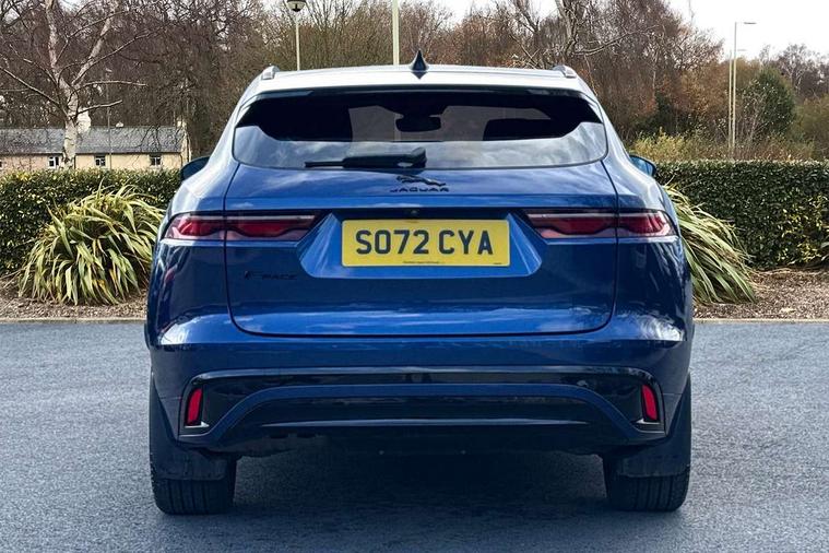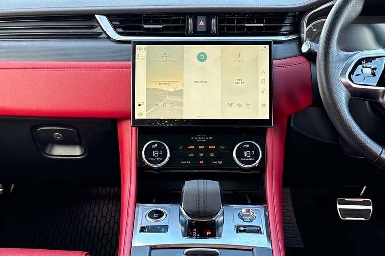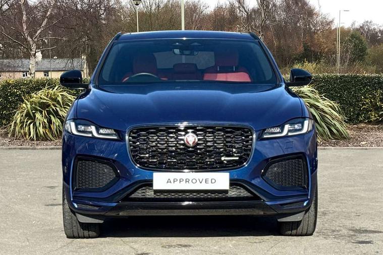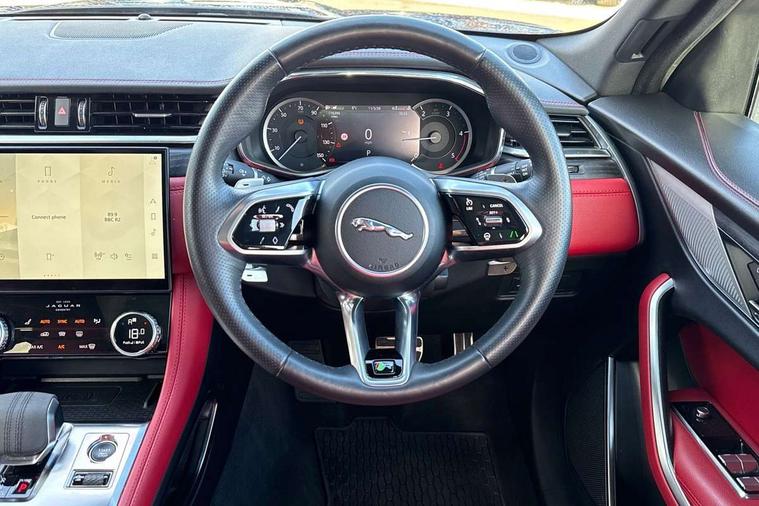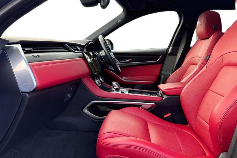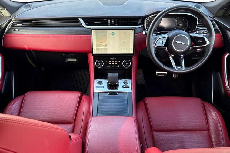 11.4" touchscreen, Android Auto, Apple car play, Bluetooth connectivity, Driver alert system, Driver condition monitor, eCall emergency call system, Eco driving style assistant, Electric power assisted steering, InControl remote, Jaguar Toggle shift selector, Lane departure warning system, Lane keep assist, Outside temperature gauge, Personalisation profile management, Pivi pro connected navigation system with app interface and media storage, Pro services and wifi hotspot, Push button starter, Service interval indicator, Speed proportional steering, Start up sequence with movement in dials and lighting, Traffic sign recognition with adaptive speed limiter, Trip computer, Voice control system, 8 speed automatic transmission, All terrain progress control, All Wheel Drive (AWD), Open differential with torque vectoring by braking, AM/FM radio, Bluetooth streaming, DAB Radio (Digital Audio Broadcasting), Dynamic volume control, InControl apps, InControl protect, iPod integration, 3 flash lane change indicators, Animated directional indicators, Approach Illumination, Auto dimming rear view mirror, Automatic headlights, Electric windows with one touch open/close and anti trap, F-Pace and R Dynamic badge, Gloss black door mirrors, Gloss black roof rails, Green tinted glass, Heated front windscreen + heated washer jets, Heated rear window with timer, Jaguar script and leaper, LED High level third brake light, LED tail lights, Non acoustic front windscreen, Privacy glass, R Dynamic badge on side door, Rain sensor windscreen wipers, Rear fog lights, Rear metal tread plates, Rear side wing doors, Rear wiper, Trailer stability assist, Variable front intermittent wipers, 12V power point front, 3 rear headrests, 3 seat bench in 2nd row, Air distribution speed, Bright metal foot pedals, Centre armrest console, Centre console with side storage, Deletion loadspace storage rails, Door sill tread plates, Fold flat front seats, Front centre armrest with storage compartment, Front door storage space, Glovebox finisher with jaguar script, Heated steering wheel, Hooks in loadspace, Illuminated glovebox, Interior front door handles with separate locking switches, ISOFIX on outer rear seats, Jaguar sense, Luggage tie downs in loadspace, Mist sensing, Multifunction steering wheel, Overhead lighting console, Overhead stowage for sunglasses, Passive front head restraints, Premium cabin lighting, Premium carpet mats, R-Dynamic branded leather steering wheel, Rear air vents, Rear armrest with twin cupholders, Rear centre headrest, Rear door storage space, Reversible boot floor, Satin chrome gearshift paddles, Shopping bag hook, Single front passenger seat, Sunvisors with illuminated vanity mirrors, Twin front cupholders with cover, Black Exterior pack - F Pace R-Dynamic/Sport, Exterior pack - F Pace R-Dynamic, Online Pack with data plan - F-Pace, 355mm front brakes and 325mm rear brakes, 3x3 point rear seatbelts, ABS, All surface progress control (ASPC), Brake pad warning light, DSC - Dynamic Stability Control, Electric parking brake (EPB), Emergency brake assist, Front airbags with passenger seat occupant detector, Front and rear seatbelt reminder, Front side airbags, Full length side window curtain airbag, Hill launch assist, Power operated child locks, Torque vectoring brake, Traction control, Tyre pressure monitoring system, Immobiliser, Keyless start, Locking wheel nuts, Perimeter alarm, Remote central locking, Valet mode,