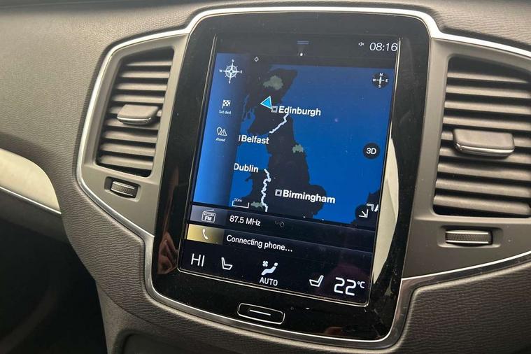 12.3" Active TFT crystal driver's instrument display, 9" centre console portrait touch screen, Adjustable steering wheel force, Bluetooth hands free telephone connection, Drive mode settings, Driver alert control with lane keeping aid, Handsfree power tailgate opening and closing, Intellisafe assist - Adaptive cruise control with pilot assist, Oncoming Lane Mitigation, Remote engine start, Sensus navigation with European mapping and traffic information, Service interval indicator, Speed limiter, Speed sensitive steering, Trip computer, Voice activated control for key functions, Volvo on call, 8 speed automatic transmission with start/stop + manual change functions, All wheel drive system, DAB Radio (Digital Audio Broadcasting), Steering wheel audio controls, Steering wheel remote infotainment controls, Adaptive brake lights with high level LED brake lights, Auto dimming interior + exterior mirrors, Automatic headlight levelling system, Automatic LED Headlights + Active high beam incorporating daytime running lights, Body colour bumpers, Chrome door handles deco strip and window surround, Colour coordinated auto folding and heated power door mirrors, Dual integrated exhaust pipes, Front and rear power windows, Home safe and approach lighting, Integrated roof rails in silver, LED front fog lights, Piano black waterfall front grille, Puddle lights, Rain sensor with automatic windscreen wiper activation, Rear wash/wipe with intermittent wipe setting, Roof antenna, Roof spoiler, Visible VIN plate, 12V socket front tunnel console, rear passenger compartment and cargo area, 2nd Row centre armrest with storage and cupholders, 3 spoke leather steering wheel and illuminated gear knob with chrome trim, B Pillar ventilation, Bright metal luggage threshold, Cargo divider with grocery bag holder, Centre console cupholders and storage, Driver's side lower dashboard storage compartment, Floor mats, Front and rear aluminium tread plates, Front and rear reading lights, Theatre lighting and centre armrest storage illumination, Front footwell and side step illumination, Front headrests, Heated front seats, Height/reach adjustable steering column, Illuminated luggage compartment, Illuminated vanity mirrors + ticket holder, Illumination lockable glovebox compartment, Leather faced upholstery, Load protection net, Outboard armrest with cupholder and storage for third row passengers, Power driver seat with lumbar support and memory for seat and exterior door mirrors, Power folding 2nd row headrests, Power passenger seat with lumbar support, Rear headrests, Semi automatic load cover, Three 2nd row individual folding passenger seats with fore/aft adjustment, Two 3rd row individual folding passenger seats, Underfloor cargo storage, 7 three point seatbelts, City safety includes pedestrian, cyclist and large animal detection and front collision warning with full auto brake, Drivers knee airbag, Dual stage driver/passenger airbags, First aid kit, Front seats SIPS airbags, Hill descent control, Hill start assist, IC (Inflatable Curtains) - Full Length, Passenger airbag cut-off switch, Power parking brake with auto hold function, Run off Road Mitigation, Run off Road Protection, Seatbelt reminder and pretensioners for all seats, SIPS (Side Impact Protection System), Slippery road and hazard light alert, Stability and Traction Control with Spin control, Engine Drag Control and Corner Traction Control, Tyre pressure monitoring system, Vehicle deceleration control with Anti-lock Brake System, Electronic Brake Distribution and Emergency Brake Assist, Warning triangle, WHIPS whiplash protection system - front, Anti-theft alarm including immobiliser/volume sensor + level sensor, Care key with user defined top speed, Key integrated remote control central locking + fuel flap with deadlocking system and auto open/close power windows, Keyless drive (includes keyless entry and keyless start) with remote tag, Locking wheel nuts, Private locking for glovebox and tailgate, Iron ore inlays, Tempa spare wheel and jack,
