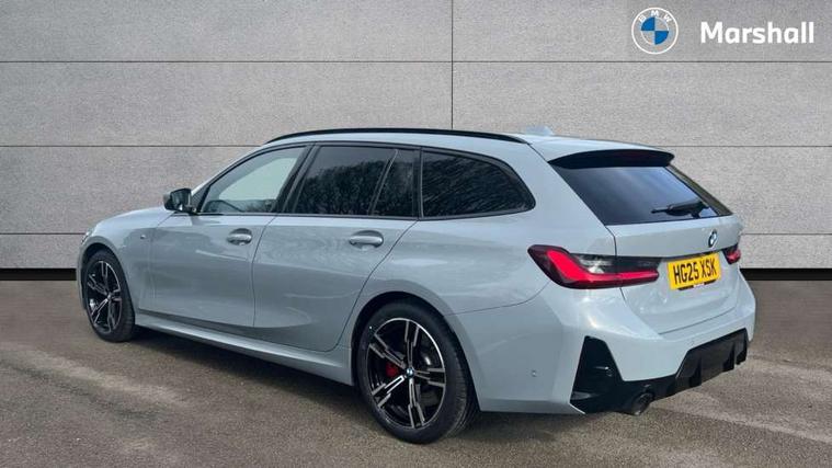Active guard plus, Attentiveness assist, Automatic Start/stop button, Bluetooth Wi-Fi interface, BMW iDrive, BMW Teleservices, ConnectedDrive Services - last state call, Electric bootlid, Live cockpit plus with Navigation + 12.3" instrument display + 14.9" display, Intelligent voice assist, 2 USB, 4G LTE connect, Oil sensor for level and grade, Personal e-SIM, Shifting point display, Variable sport steering, Double joint spring strut front axle, Electronic differential lock control (EDLC), Fuel tank breather system, Steptronic Sport automatic transmission with steering wheel mounted gearshift paddles launch control and xtreme drive lever control, DAB tuner, 3rd brake light, Auto dimming rear view mirror, Automatic headlight beam throw control with load dependent regulating reaction, dynamic compensation of braking dive and acceleration squat, Bi-LED Low and high beam headlights, BMW emblem, engine compartment lid and tailgate, Body colour roof fin, Door sill strips, Electric windows - front and rear, with open/close fingertip control, anti-trap facility and comfort closing, Fading support, Folding wing mirror with auto dimming, Follow me home headlight function, Front and rear bumper system with replaceable deformation elements, Front apron plastic in body colour, Fuel filler flap - right rear in body colour, Heat protection glazing on front windows and windscreen, Heated washer jets, High gloss chrome kidney frame with high gloss black kidney struts, High gloss shadow line roof rails, LED daytime running lights, LED rear lights, LED turn indicator, Licence plate panel integrated into front bumper and tailgate, M high gloss shadow line exterior trim, Matt black B-pillar finsher, Matt black window recess cover, Model designation on right side of tailgate, One piece front bumper cover including towing eye cover in body colour, Rain sensor with automatic headlight activation, Rear side wing doors, Rear wiper, Reversing lights, Side frame decorative moulding black matt, Trailer stabilisation logic, Visible exhaust tailpipe finisher, Welcome lights in interior and door handle area, 12V power socket in front storage compartment, 2 front cupholder in centre console with clamping elements and matt black inlay, 3 seat bench in 2nd row, 3 spoke M Sport multifunction flat bottom leather steering wheel, 3 zone automatic air conditioning, 40:20:40 split folding rear seat with loading system, Anthracite headlining, Armrest integrated in front and rear door trim + front centre console armrest, BMW ID, Cruise control operation in steering wheel, Driving experience mode switch, Folding rear centre armrest with 2 cupholders, Front and rear headrests, Front and rear velour floor mats, Front reading light, Heated front seats, Height adjustable mechanically and infinitely variable steering column, Illuminated armrest storage compartment, Illuminated glove compartment, Illuminated luggage compartment, Lashing eyelets in luggage compartment, Single front passenger seat, Sunvisors with illuminated vanity mirrors and ticket pocket, Toolkit located in luggage compartment, Connected pack professional - 3 Series Saloon/Touring, Interior and exterior mirror pack - 3 Series Touring/Saloon, M sport exterior styling pack - 3 Series Saloon/Touring, Parking assistant pack - 3 Series, 3x3 point rear seatbelts, BMW emergency call, Child locks on rear doors, Crash sensor activating of airbags, Unlocking doors, hazard warning lights, interior light, safety battery terminal, Drive-off assistant, Driver and front passenger with seat occupancy detection for driver's and passenger side, Driver and passenger side airbags, body protection at side and airbags deploy from seat backrests, Dry braking, Dynamic brake control, Dynamic stability control + (DSC+) - Anti-lock Braking System (ABS) with brake assist and cornering brake control + Automatic Stability Control (ASC), Dynamic Traction Control - DTC, Electric parking brake including automatic hold function and automatic release of the parking brake when driving off, Front airbag deactivation, Front airbags for driver and front passenger, Head airbags in 1st and 2nd row, head protection at side, curtain airbags open from headliner above 1st and 2nd row, Plastic fuel tank, Side impact protection, Tyre pressure sensors, Ventilated front and rear disc brakes, Warning triangle and first aid kit, Alarm system, Centre lock switch, Closing system with central locking, Electronic vehicle immobiliser, Locking wheel bolts, Tyre repair kit,