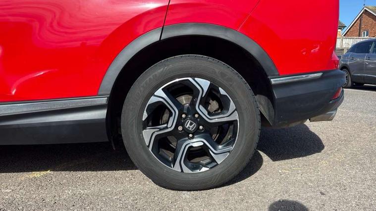 Adaptive cruise control, Agile handling assist, Bluetooth hands free telephone connection, Economy mode, Electric power steering, Emergency stop signalling system, Forward collision warning, Front and rear parking sensors, Honda CONNECT with GARMIN Navigation + 7" touchscreen, DAB radio, Apple CarPlay, Android Auto, Aha app integration and internet browsing, Intelligent multi info display, Lane departure warning system, Lane keep assist system, Low speed following, Rear view camera, Road departure mitigation, Speed limiter, Traffic sign recognition, Vehicle stability assist, 2 USB sockets in rear, 2x USB sockets in front, 8 Speakers, DAB Digital radio, Steering wheel mounted controls, Subwoofer, Aspheric door mirrors, Auto dimming rear view mirror, Automatic headlights with dusk sensor, Body colour bumpers, Body colour door handles, Door mirrors tilt when reversing, Electric front windows/one touch facility, Electric rear windows + one touch facility, Electrically adjustable and heated door mirrors, Electrically retractable door mirrors, Front fog lights, High beam assist, LED daytime running lights, LED Headlights, LED rear lights, Rain sensor, Rear wiper, Shark fin roof aerial, Trailer stability assist, Welcome home function, 60/40 split folding rear seat, Accessory sockets, AWD emblem rear, Cargo hooks, Cloth upholstery, Courtesy lights, Driver's electric adjustable lumbar support, Driver/passenger front seatback pockets, Driver/passenger sunvisors with illuminated vanity mirrors, Dual zone automatic climate control, Front centre armrest, Front map lights, Height adjustable driver's seat, Illuminated glovebox, Instrument panel with garnish wood film, Isofix child seat preparation, Leather steering wheel, Paddle shift controls, Rear air vents, Rear centre armrest, Rear headrests, Rear reading lights, Rear seat conversation mirror, Silver interior door handles, Sunglasses holder with mirror, Tilt/telescopic adjustable steering wheel, Tonneau cover, Trunk light, 5 x 3 point seatbelts, ABS/EBD, Anti-whiplash front headrests, Brake assist function, Collision mitigation braking system, Deflation detection system, Driver airbag, Electronic parking brake with auto hold, Front and rear curtain airbags, Front side airbags, Hill start assist, Passenger airbag deactivate switch, Honda super locks, Immobiliser, Remote central locking with 2 remote folding keys, Security alarm, Ultrasonic sensor and tilt sensor, Temporary spare wheel,
