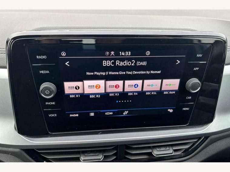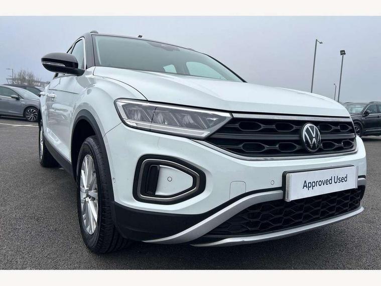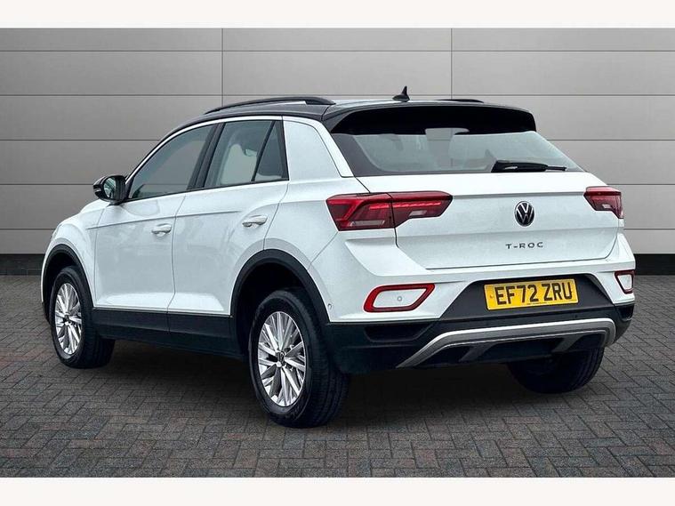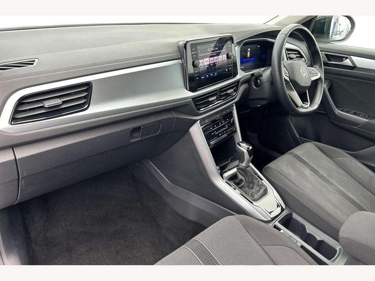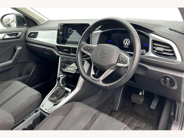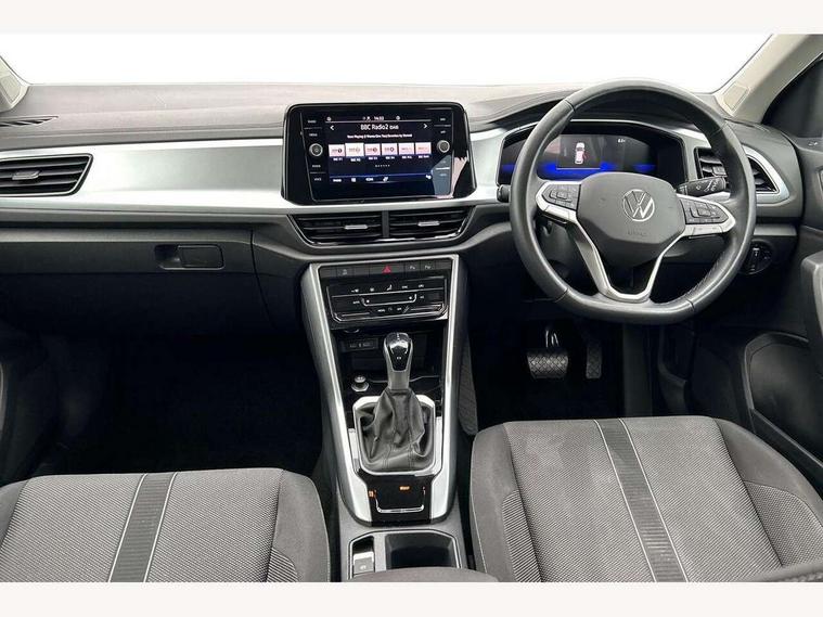 Bluetooth mobile phone interface, Driver alert system with fatigue detection, Driver tips and journey analysis, Emergency call service, Lane keeping system Lane Assist, Modified key software - reduce switch off time for key status change to Long no motion, Online services, Park assist including front and rear parking sensors, Power assisted speed sensitive steering, Service interval indicator, Tailgate/trunk lid release from outside, Think blue trainer driver tips and journey analysis, Warning sound and light for front seatbelts unfastened, Wireless app connect, Battery regeneration during braking, Front shock absorption, Rear shock absorption chassis with increased ride height, Start/stop function with battery regeneration, DAB Digital radio, Diversity antenna for FM reception, Front and rear 6 speakers, Music playback - MP3, WMA and AAC files, Premium USB cable in choice of either Apple or Android smartphone compatibility, SD card slot, Simultaneous pairing of 2 compatible mobile devices, Title and cover art display, We Connect and We Connect Plus functionality, 3rd brake light, Auto dimming interior rear view mirror, Automatic hazard lights activation under emergency braking, Automatic headlight control with LED separate daytime running lights with coming/leaving home function, Black roof rails, Body coloured bumpers and radiator grille with chrome trim and front fog lamps with chrome bezel, Body coloured exterior mirror housings and door handles, Extended roof spoiler, Exterior mirrors aspherical on driver side, convex on front passenger side, External USB type C socket and charging sockets, Front windscreen wiper with intermittent wipe and 4 position delay, Heated rear window, LED Headlights, LED rear combination lamps, LED rear number plate lights, LED tail lamp rear comination lamps, Power windows with comfort operation and circuit breaker, Rain sensor, Rear exhaust tailpipe, Rear fog light on one side and reversing lights on both sides, Rear side wing doors, Rear wash/wipe with intermittent wipe setting, Remote electrically foldable door mirrors, puddle lights and reverse activated passenger's door mirror, 12V power socket in centre console, 3 rear head restraints, 3 seat bench in 2nd row, 4 load lashing points in luggage compartment, Air care climatronic air conditoning system with active combination filter and 2-zone temperature control, Ambient lighting with mirror logo projection, Cloth upholstery, Door and side trim panel in cloth, Drawer under drivers seat, Driver/front passenger seat height adjustment, Front centre armrest, Front comfort sports seats, Front cupholders x 2, Front reading light, Instrument lighting, white adjustable panel illumination, Interior light delay, Isofix child seat preparation, Leather gearshift handle, Load-through provision with cup holder when folded down ('Unsplit rear seat bench, split folding backrest, with centre armrest), Luggage compartment lighting, Lumbar support for driver's and front passengers seat, Non-folding front passenger seat backrest, Single front passenger seat, Storage compartment in left and right luggage area, Storage compartment in rear doors, Storage compartments in driver and front passenger doors, Sunvisors with illuminated vanity mirrors, Variable boot floor, height adjustable and removable, Driver assistance pack without proactive passenger protection - T-Roc, 3 point height adj front seatbelts + pretensioners, 3 point seatbelts in outer rear with ECE label, ABS, Child locks on rear doors, Driver and front passenger airbag with front passenger airbag deactivation, Driver and front passenger safety-optimised head restraints, Drivers seatbelt reminder, Electronic parking brake, Electronic Stability Control (ESC) inc EDL (Electronic Differential Lock) and ASR (Traction Control), Front and rear passengers curtain airbag system including front side airbags, Front assist with city emergency braking and pedestrian monitoring, Front disc brakes, Front seat side impact airbags, Hill start assist, Predictive pedestrian protection, Rear disc brakes, Single tone horn, Tyre pressure loss indicator, Volkswagen roadside assistance, Alarm with interior protection, Anti-theft alarm system with interior monitoring, backup horn, and towing protection, Remote central locking with SAFELOCK, radio remote control with 2 remote control folding keys, Pewter matt decorative inserts for intrument panel, centre console and door panels at the front, Trims for alloy wheels,