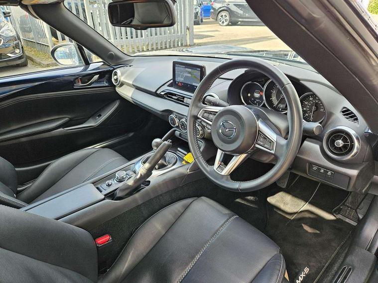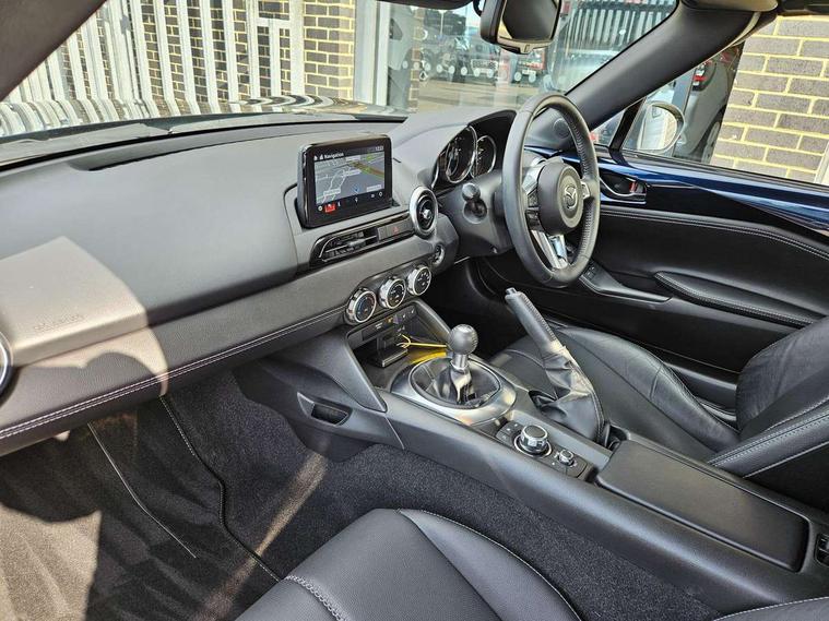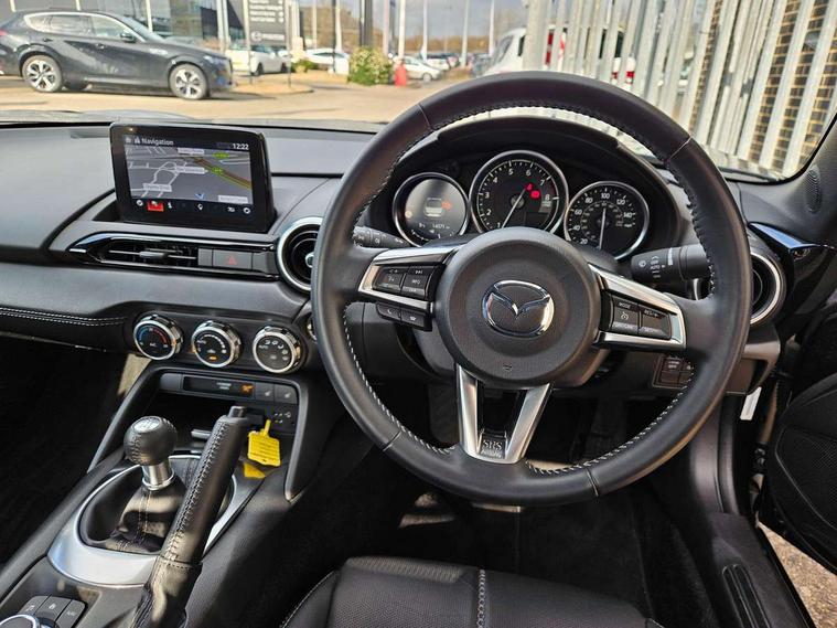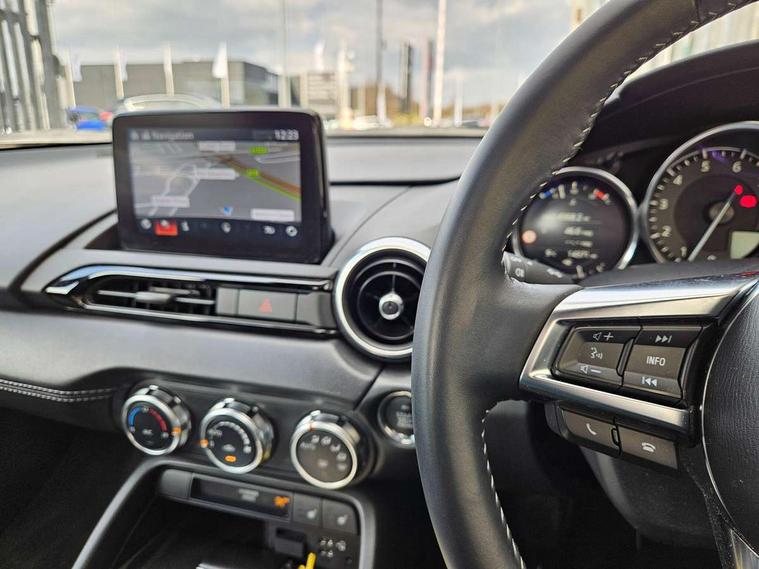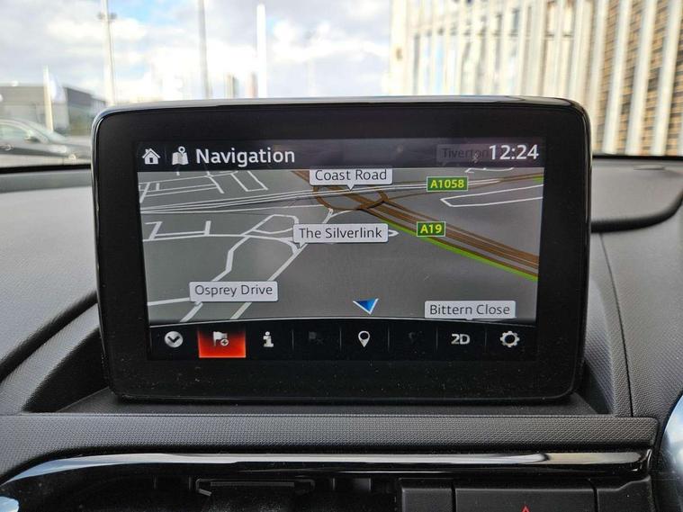7" colour touch screen with Mazda connect infotainment, Aha and stitcher app, Analogue speedometer, Apple car play/Android Auto, Cruise control + speed limiter, Driver alert system, eCall emergency call system, Emergency stop signalling system, Engine start/stop button, Hands free phone preparation, Integrated bluetooth with hands-free calling, bluetooth audio and easy access to phone contacts, Integrated navigation system, Lane departure warning system, PAS, Rear parking sensor, Service indicator, Traffic sign recognition, Trip computer, Water temperature gauge, Dynamic stability control, I-ELOOP, i-stop, 2 USB/aux input socket, Multimedia Commander including separate volume dial, Premium Bose sound system with 9 speakers with 2 in each front headrest, AM/FM/DAB radio and MP3, Steering wheel mounted audio/bluetooth controls, Adaptive front lighting system, Auto dimming rear view mirror, Automatic headlamp levelling, Body colour bumpers, Body colour co ordinated interior upper door trim, Body coloured electric/heated door mirrors, Coming/leaving home lighting function, Dual exhaust pipes, Dusk sensitive headlamps, Electric front windows/one touch facility, LED 3rd brake light, LED daytime running lights, LED Headlights, LED indicator lights, LED rear lights, Piano Black fashion bars, Rain sensing front wipers, Rear boot, 12V socket, Centre console storage box, Chrome Air conditioning dials, Climate control air conditioning, Coin Box, Driver and front passenger sunvisors with covered vanity mirror and driver ticket holder, Driver seat manual slide, recline and tilt adjustment, Front centre armrest, Front head restraints, Gear shift indicator, Heated front seats, in 3 heat levels, Interior courtesy light, ISOFIX front passenger seat child seat compliance, Leather gear knob, Leather steering wheel, Leather upholstery, Lockable rear centre box with lid, Passenger seat + manual slide/recline adjust, Single front passenger seat, Tilt/telescopic steering column, Two cupholders, 3 point ELR front seatbelts with pretensioners, ABS+Electronic Brake force Distribution, Deployable Hood System (DHS), Driver and front passenger airbags, Driver and passenger seatbelt reminder audible warning, Hill hold assist, Passenger airbag deactivate switch, SCBS - Smart City Brake Support, rear plus front with autonomous emergency braking, Side airbags, Traction control, Tyre pressure monitor, Remote central locking with deadlocking and remote boot release, Smart keyless entry, Superlocking, Thatcham category 1 alarm + immobiliser, Chrome air vent surrounds, 16" Bright Silver alloy wheels,