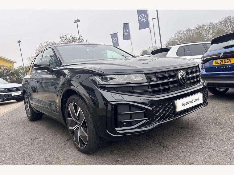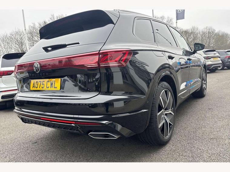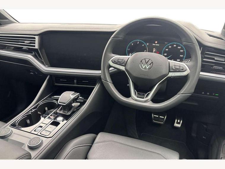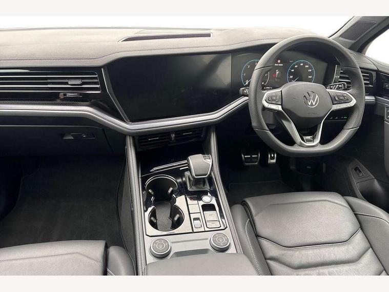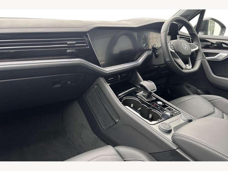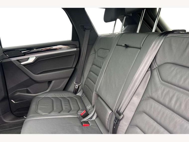15" Screen Top infotainment system Premium (MIB3), Adaptive cruise control, Advanced driver attention and drowsiness monitor, Driver profile selection, Dynamic road sign display, E-Sim card for online connectivity, eCall emergency system, Innovision cockpit, Intelligent park assist, Mobile phone interface with inductive charging, Multi-colour Active Info display, Park Assist - Sensor controlled steering aid to assist parallel or bay parking, PAS, Warning signal and warning light for front and rear seatbelts not fastened, Wireless app connect, Adaptive chassis control, DAB Digital radio, Diversity antenna for AM/ FM reception, We Connect and We Connect Plus functionality, Automatic coming/leaving home lighting function, Automatic headlights, Black door mirrors, Black style comfort bumpers, Dynamic headlight range control with dynamic cornering light, Electric front tilt/slide panoramic sunroof and fixed rear sunroof, Electrically power adjustable, heated, folding, auto dimming, front passenger exterior door mirror lowering function, External USB type C socket and charging sockets, Gloss black roof rails, HD LED Matrix beam plus digital headlight projection with variable light distribution, Headlight washers, Highway light, LED 3rd brake light, LED daytime running lights, LED rear combination lamp with variable lighting functions and special styling, Poor weather light, Rain sensor, Rear exhaust tailpipe, Rear fog light with back up light on both sides, Rear light bar and illuminated logo, Rear side wing doors, Rear wiper, Stainless steel door sill protection, 12V socket in centre console, 3 rear headrests, 3 seat bench in 2nd row, 4 zone climate control, Airbag label on sun visor and B-pillar, Brushed stainless steel pedals, Double sun visors with illuminated vanity mirrors, Front + rear carpet mats, Front centre armrest, Leather wrapped multifunction sports steering wheel, heated, with touch control and shift paddles, Mechanical rear seat release, Power adjustable lumbar support in front, Power seats in front, right side with memory features and seat cushion depth adjustment, Rear seat backrest and split folding with center armrest, Single front passenger seat, Memory pack plus - Touareg, 3 point seatbelts, outer rear with ECE lable, ABS, Child locks on rear doors, Curtain airbags, Driver and front passenger safety-optimised head restraints, Driver/Front Passenger airbags, Extended pedestrian protection measures, Front assist, Front seat side impact airbags, Generative braking with start and stop system, Height adjustable 3 point front seatbelts with pre tensioners, Passenger airbag deactivate switch, Three 3 point rear seatbelts, Two tone horn, Warning triangle and first aid kit, Alarm system with interior protection, Easy open and close sensor controlled luggage compartment opening and closing with remote unlocking, Keyless Access Keyless locking and starting system with SAFELOCK, Aluminium decorative inserts, Black decorative trims, Gloss black decorative inserts in centre console, Tool kit,