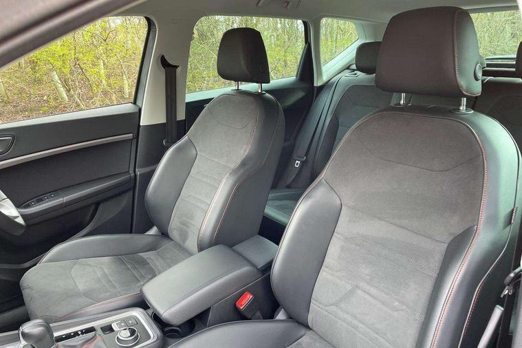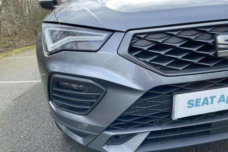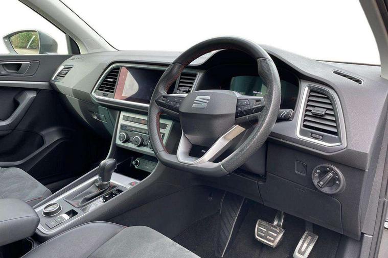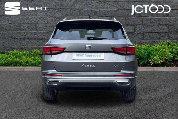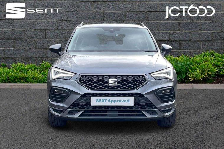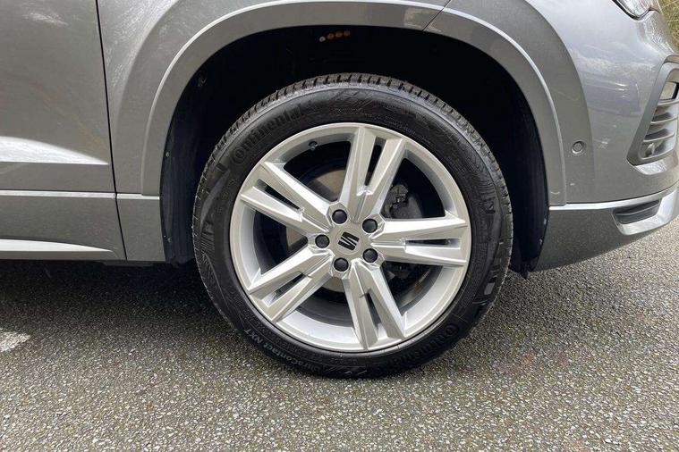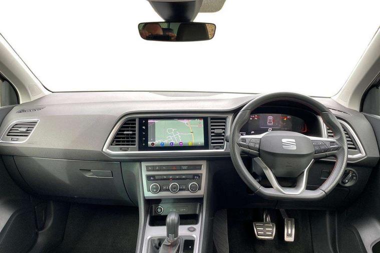 8" Digital cockpit, Colour multi-function on board computer display, Cruise control system with speed limiter, E-call, Outside temperature gauge, Progressive power assisted steering, SEAT drive profile with driving experience button - Normal, Sport, Eco and Individual mode, gearshift, steering and throttle response, Self parking functionality (includes front and rear parking sensors), Start/stop system, Tailgate, Trip computer, wired and wireless full link smartphone integration, Wireless phone charger, Steering wheel mounted audio/phone controls, Black roof rails, Black side window trim, Body colour bumpers, Body coloured wheel arch surrounds, Chrome front grille frame, Dark tinted rear windows, Daytime running lights, Door mirrors with welcome light silhouette, Dynamic headlight range control with self adjusting whilst driving, Electric adjustable/heated/folding door mirrors, Front and rear electric windows, Full LED headlamps with lens and LED front fog lamps with cornering function, Illuminated aluminium front door sill, LED 3rd brake light, LED rear tail lights with dynamic indicators, Rear exhaust tailpipe, Rear fog lights, Rear side wing doors, Rear wash/wipe, Roof spoiler, Variable front intermittent wipers, 12V socket in front, 3 seat bench in 2nd row, 60/40 split folding rear seat, Aluminium pedals, Dinamica upholstery with front comfort seats, Drawer under right front seat, Dual zone climate control, Front and rear head restraints, Front centre armrest, Front seat back storage pockets, Height adjustable driver and passenger seat with lumbar adjustment, ISOFIX points in outer rear seats with top tether anchorage points, Leather sports steering wheel and gear knob, Rear armrest and easy back seat release mechanism from boot, Single front passenger seat, Steering wheel mounted gearshift paddles, Convenience pack - Ateca, Interior lighting pack - Ateca, Navigation system pack with DAB - Ateca, Safety and driving pack with attention and drowsiness assist - Ateca, 3x3 point rear seatbelts, ABS, Traction control system (TCS), Electronic stability control (ESC) and Electronic differential lock system (XDS), Airbags - Driver and front passenger airbag with deactivation, front side, two curtain and driver's knee airbags, Electric parking brake with auto hold function, Front and rear seatbelt reminder, Front assist with autonomous emergency braking, Hill hold control, Manual rear child locks, Single tone horn, Tiredness recognition system, Tyre pressure monitoring system, Alarm, Keyless entry, Locking wheel bolts, Remote central locking, Chrome interior detailing, 18" Brillaint silver alloy wheels,