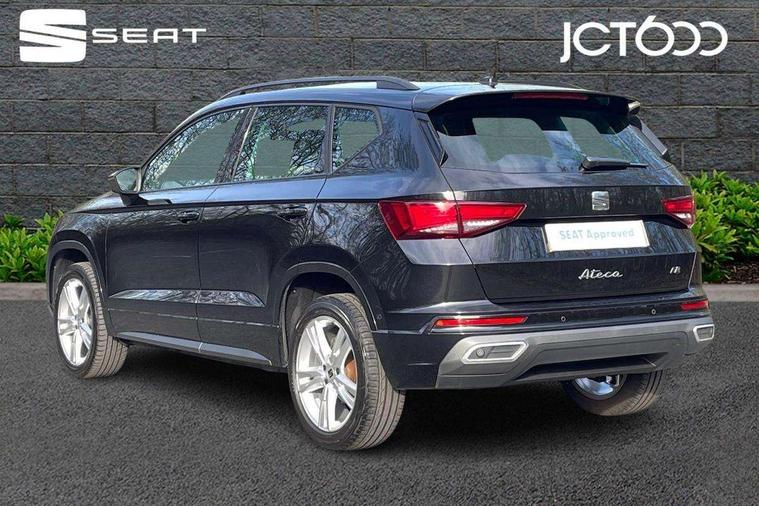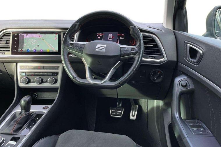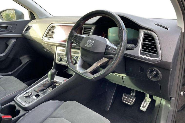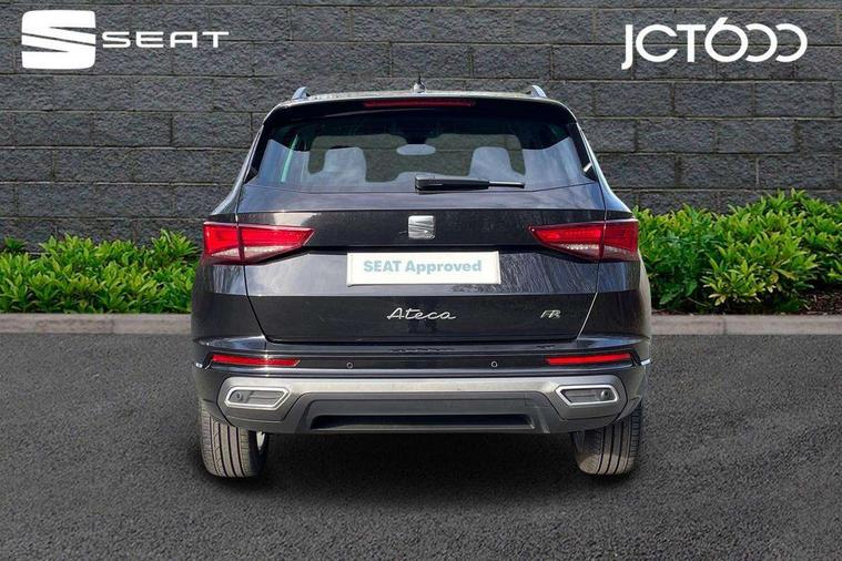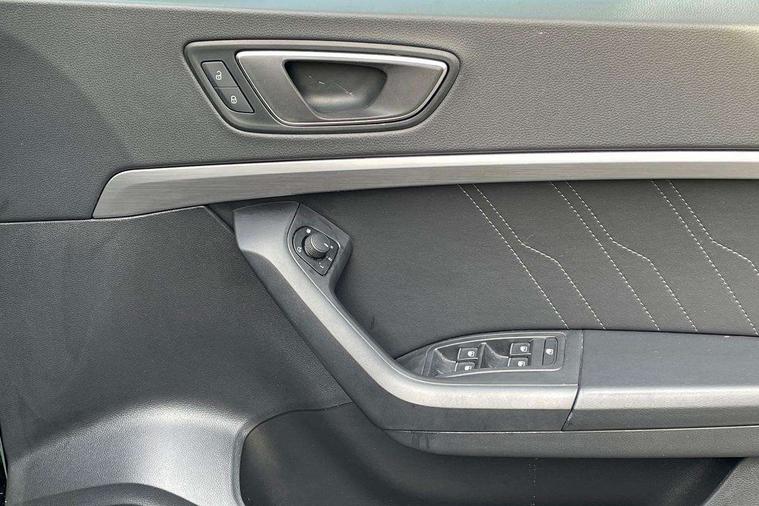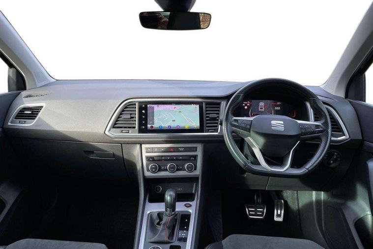 8" Digital cockpit, Colour multi-function on board computer display, Cruise control system with speed limiter, E-call, Outside temperature gauge, Progressive power assisted steering, SEAT drive profile with driving experience button - Normal, Sport, Eco and Individual mode, gearshift, steering and throttle response, Self parking functionality (includes front and rear parking sensors), Start/stop system, Tailgate, Trip computer, wired and wireless full link smartphone integration, Wireless phone charger, Steering wheel mounted audio/phone controls, Black roof rails, Black side window trim, Body colour bumpers, Body coloured wheel arch surrounds, Chrome front grille frame, Dark tinted rear windows, Daytime running lights, Door mirrors with welcome light silhouette, Dynamic headlight range control with self adjusting whilst driving, Electric adjustable/heated/folding door mirrors, Front and rear electric windows, Full LED headlamps with lens and LED front fog lamps with cornering function, Illuminated aluminium front door sill, LED 3rd brake light, LED rear tail lights with dynamic indicators, Rear exhaust tailpipe, Rear fog lights, Rear side wing doors, Rear wash/wipe, Roof spoiler, Variable front intermittent wipers, 12V socket in front, 3 seat bench in 2nd row, 60/40 split folding rear seat, Aluminium pedals, Dinamica upholstery with front comfort seats, Drawer under right front seat, Dual zone climate control, Front and rear head restraints, Front centre armrest, Front seat back storage pockets, Height adjustable driver and passenger seat with lumbar adjustment, ISOFIX points in outer rear seats with top tether anchorage points, Leather sports steering wheel and gear knob, Rear armrest and easy back seat release mechanism from boot, Single front passenger seat, Steering wheel mounted gearshift paddles, Convenience pack - Ateca, Interior lighting pack - Ateca, Navigation system pack with DAB - Ateca, Safety and driving pack with attention and drowsiness assist - Ateca, 3x3 point rear seatbelts, ABS, Traction control system (TCS), Electronic stability control (ESC) and Electronic differential lock system (XDS), Airbags - Driver and front passenger airbag with deactivation, front side, two curtain and driver's knee airbags, Electric parking brake with auto hold function, Front and rear seatbelt reminder, Front assist with autonomous emergency braking, Hill hold control, Manual rear child locks, Single tone horn, Tiredness recognition system, Tyre pressure monitoring system, Alarm, Keyless entry, Locking wheel bolts, Remote central locking, Chrome interior detailing, 18" Brillaint silver alloy wheels,