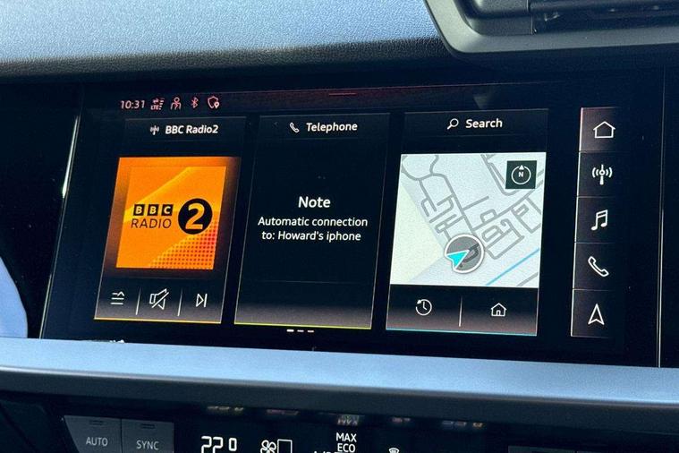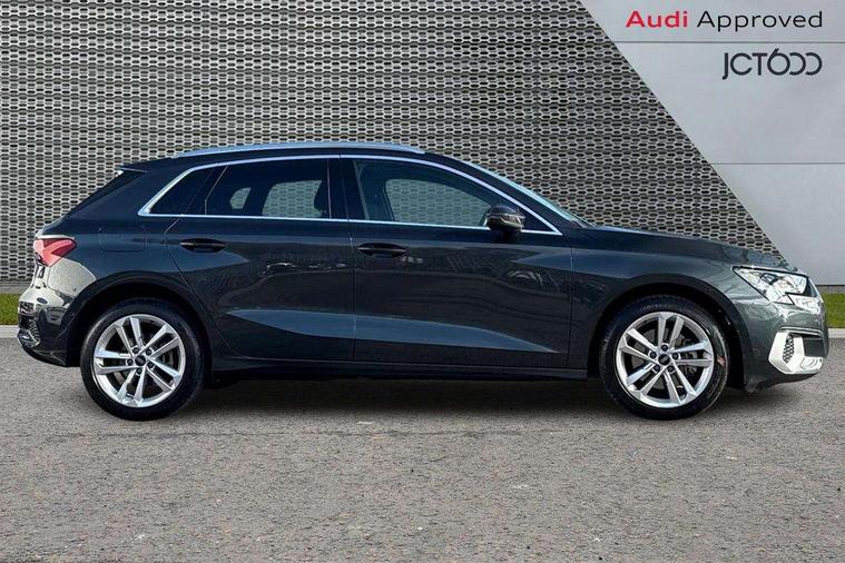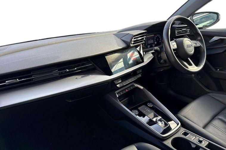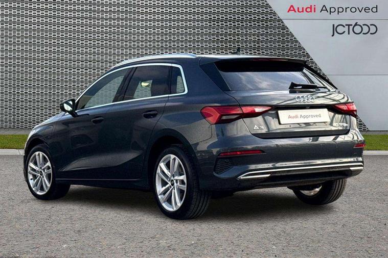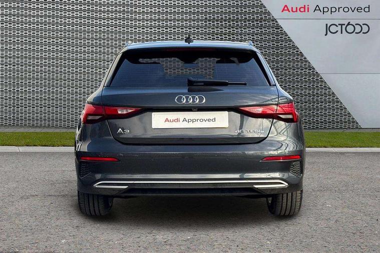 Audi drive select (Auto, Comfort, Dynamic, Efficiency and Individual), Audi smartphone interface, Audi Virtual Cockpit - 10.25" digital and colour instrument cluster, Automatic start/stop system with recuperation, Bluetooth interface, Camera based traffic sign recognition, Collision avoidance assistant, e-Call (emergency call), Electromechanical power speed sensitive steering, Lane departure warning system, MMI Navigation Plus with high resolution 10.1" colour touch screen display, Service indicator, Trip computer, Voice control system with natural language interaction, 3 pin 10 amp domestic charging cable, 3.6 kw On-board charger, Standard suspension, Type 2 mode 3 32 amp charging cable, Type 2 socket for AC charging, 2xUSB-C connection with data and charging functions, 6 passive loudspeakers, DAB Digital radio, 3rd brake light, Acoustic glass windscreen, Aluminium window trim, Auto dimming frameless rear view mirror, Body colour exterior mirrors, Body colour roof spoiler, Electrically adjustable/heated/folding/auto dimming door mirrors with integrated LED indications + kerb view function for passenger side, Front electric windows, LED daytime running lights, LED headlights and halogen rear lights, Light and rain sensors, Rear electric windows, Rear side wing doors, Rear window, rear door windows and rear side windows in clear glass, Rear wiper, 12V socket and storage compartment in front centre console, 3 seat bench in 2nd row, 3 spoke leather multifunction steering wheel with paddle shift, 4 way electrically adjustable lumbar support for driver and front passenger, 60/40 split folding rear seat bench, Dual zone electronic climate control, Front and rear headrests, Front centre armrest, Front door sill trims with aluminium inlay, Front/rear floor mats, Height and reach adjustable steering wheel, Interior lighting - Front and rear roof module including reading lights, glove compartment light and right hand side, Interior lighting - glove compartment light and right hand side, Luggage compartment floor covering, Manual boot compartment lid, Manually adjustable front seats, Routine cloth upholstery with front sports seats, Seat side bolsters, Single front passenger seat, Steel grey cloth headlining, Aluminium interior elements pack - A3 Sportback, LED interior lighting pack - A3 Sportback, Sport styling pack - A3 Sportback, 3x3 point rear seat belts, Driver and front passenger airbag with passenger airbag deactivation, Electronic Stabilisation Control (ESC) including ABS, ASR and EDL, First aid kit with warning triangle and 2 safety vests, Front side airbags with head airbags and interaction airbag, Pre-sense front with pedestrian and cyclist detection, Seatbelt monitoring, Tyre pressure loss indicator, Anti theft alarm, Anti-theft wheel bolts, Electronically operated child locks, Immobiliser, Remote control central locking, Inlays with silk effect paint in platinum grey, Tool kit, Tyre repair kit,