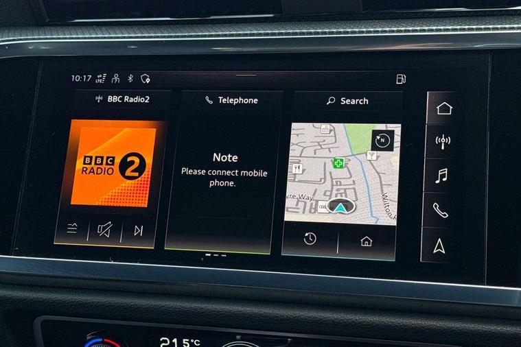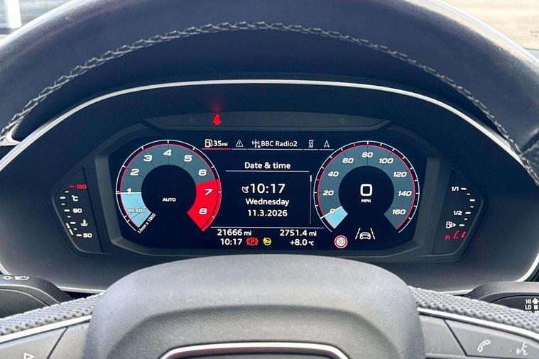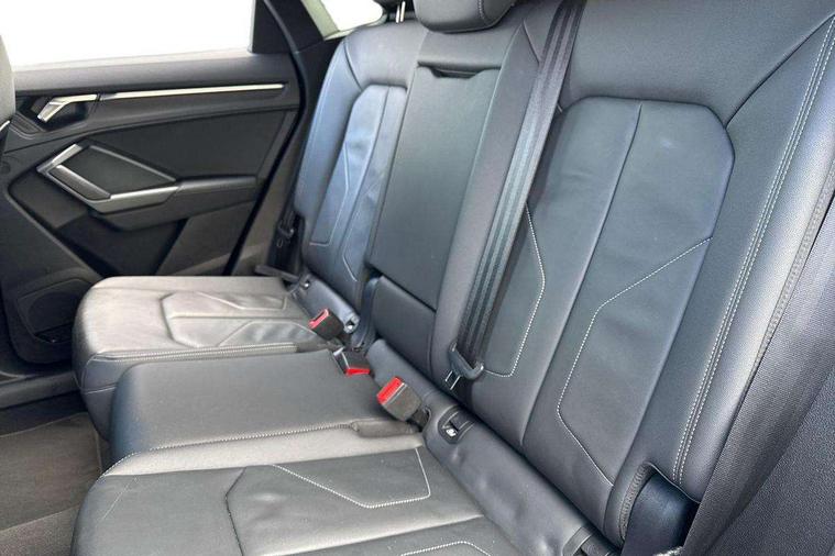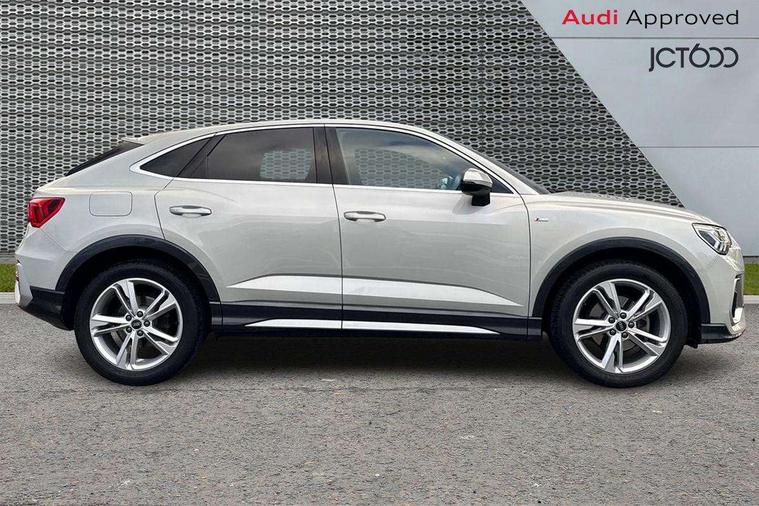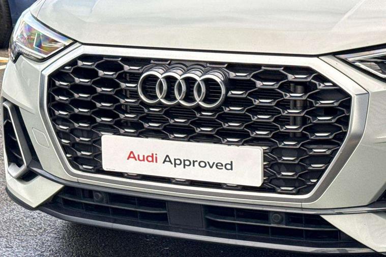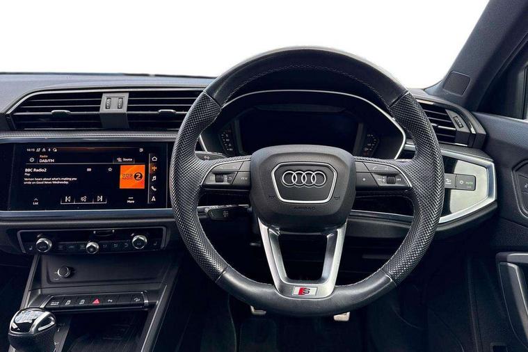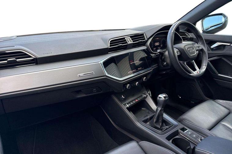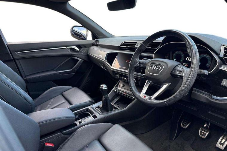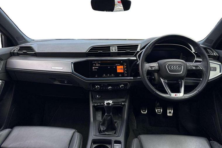 Audi drive select, Audi lane departure warning, Audi Virtual Cockpit - 10.25" display, Bluetooth interface, Camera based traffic sign recognition, Cruise control + speed limiter, Legal emergency call, MMI Navigation Plus with high resolution 10.1 inch touchscreen colour display, Power operated tailgate, Progressive steering, Rear parking sensors, Service interval indicator, Smartphone interface includes wireless Apple carplay/Android Auto, Start stop system with recuperation, Voice control system with natural language interaction, Sports suspension, 2 USB-C ports with charge and data functions, 6 passive loudspeakers, DAB digital radio module, Acoustic windscreen, Aluminium window trim, Auto dimming frameless rear view mirror, Diffuser grille in grained matt black, Diffuser trim in selenite silver, Electrically folding, adjustable and heated door mirrors with integrated LED side indicators and kerb view function for passenger side, Front and rear electric windows, Front fog lights, Front side air inlets in selenite silver, Front underbody protection in manhattan grey paint finish, Grille surround in aluminium silver matt, High gloss black finish B and C pillars, LED Dynamic rear indicators, LED headlights with LED daytime running lights, LED rear lights, LED third brake light, Privacy glass dark tinted rear and rear-side windows (from B-pillar backwards), Radiator grille in anthracite black with inlay in matt aluminium silver, Rain and light sensors, Rear side wing doors, Rear underbody protection in matt black, Rear wiper, S line badges on front wings, S line front and rear bumpers and side skirts in contrasting Manhattan grey paint finish, Side skirt insert in matt Platinium grey, Variable front intermittent wipers, 12V socket in rear centre console, 3 seat bench in 2nd row, 3 spoke leather multifunction steering wheel features S badging and grips in perforated leather with contrast stitching, 40:20:40 folding with manual adjustment for 60:40 forwards/backwards position and backrest angle, Adjustable rear seat bench/backrest with centre armrest and cupholder, Black cloth headlining, Dual zone electronic climate control, Front and rear black floor mats with contrast stitching, Front and rear headrests, Front and rear roof module including reading lights, Front centre armrest, Glove compartment lighting, Height and reach adjustable steering wheel, Illuminated door sill trims with S logo, ISOFIX child seat mounting for front passenger with airbag deactivation and outer rear seat including top tether attachment point for outer rear seats, Luggage compartment light right in white, Luggage compartment sill protection in stainless steel, Manual front seats with height adjustment, Perforated leather gearknob, Single front passenger seat, Stainless steel pedals, Ambient lighting pack - Q3, Non smoking pack - Q3, 3x3 point rear seatbelts, 6 airbags - Driver, front passenger, curtain and side windows, Audi pre-sense front with pedestrain and cyclist recognition, Electrically operated child locks on rear doors, Electromechanical parking brake, Electronic stabilisation control including ABS, ASR and EDL, Front seatbelt reminder, Hill descent control, Hill hold assist, Pre sense basic, Seatbelt monitoring, Tyre pressure warning, Warning triangle and first aid kit, Anti theft alarm, Anti theft wheel bolts, Immobiliser, Remote central locking, Aluminium look interior elements, Black dashboard, Dark matt brushed aluminium inlay, Detail dashboard around MMI touch colour display in glass look, black with surround in aluminium look, Leatherette door armrest,