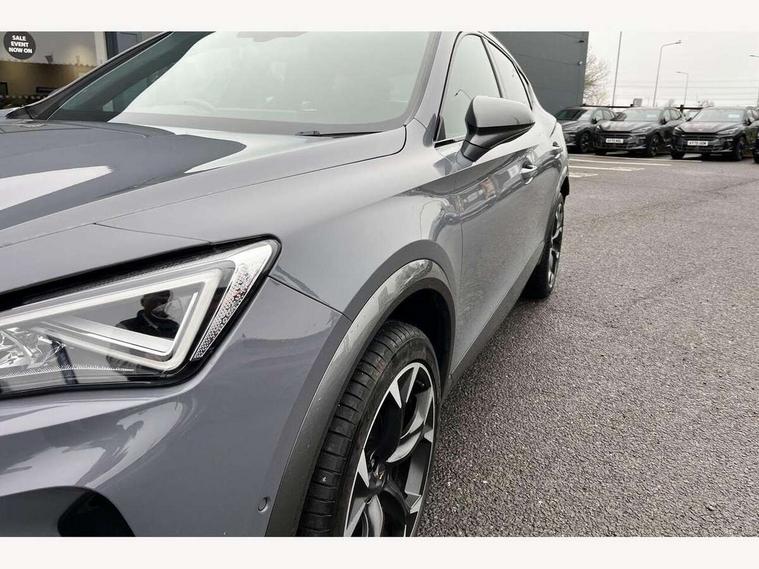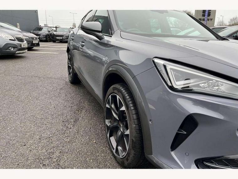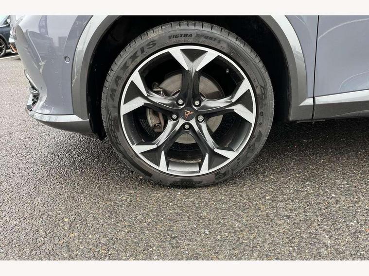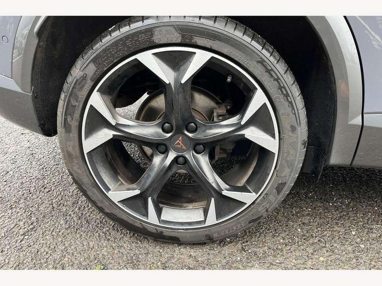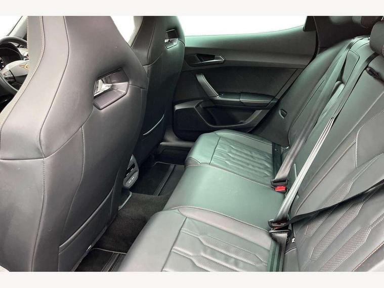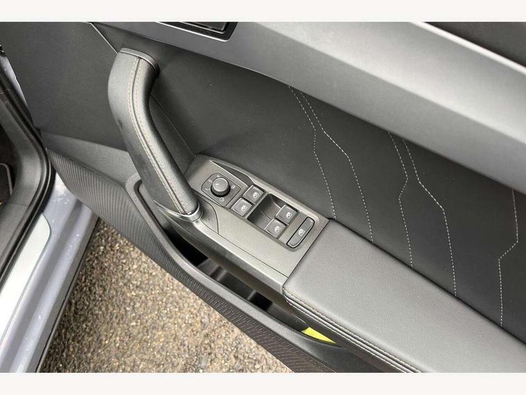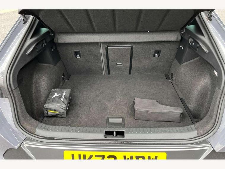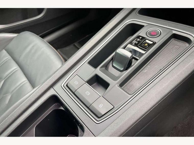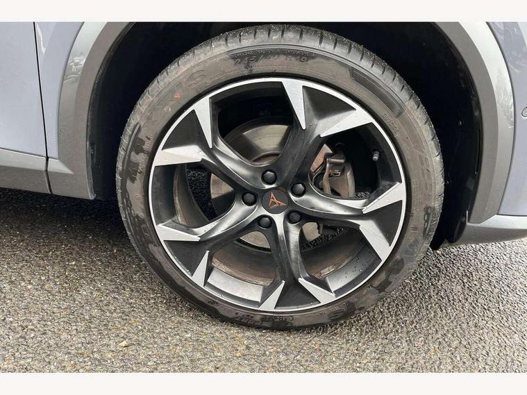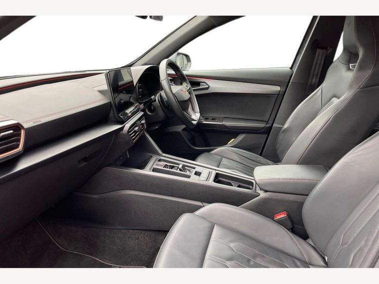 Digital cockpit and configurable dashboard, Driver alert system, Driving profile selection, Forward collision warning with automatic braking, Lane assist, Navigation system with 12'' Touchscreen Display, Park assist (inc front/rear parking sensors), PAS, Predictive adaptive cruise control with speed limiter, Rear view camera, RPM, trip computer, outside temp gauge, instrument light brightness, low fuel warning light, lights on reminder, gearshift indicator, Service interval indicator, Start/stop system with regenerative braking, Voice control system, Wireless apple carplay, Wireless phone charger, Electronic locking differential and dynamic traction support, Standard suspension, 2 front and 2 rear USB type C sockets, Auxiliary input socket, DAB radio, Auto dimming rear view mirror, Body colour door handles, Body coloured bumpers, Dark grey wing mirror, Daytime running light with automatic headlight control and coming home feature, Dynamic headlight range control, Electric front/rear windows, Electrically adjustable heated and folding door mirrors with memory function, Front fog lamps with cornering function, Gloss black roof rails and window surrounds, LED Headlights, LED Taillights with dynamic indicator, Rain sensing wipers, Rear diffuser with black simulated exhaust pipes, Rear side wing doors, Rear wash/wipe, Third brake light, Tinted rear windows, Welcome lights, 12v power supply in centre console, 12V socket, 12v socket in loadspace, 2 front and 2 rear reading lights, 230V socket, 3 seat bench in 2nd row, 60/40 split rear bench seat with armrest and mechanical seat release, Black headlining, Dust/pollen filter, Front and rear head restraints, Front centre armrest, Height/reach adjust steering wheel, Illuminated interior front door sills, Illuminated sunvisor with mirror, Isofix, Leather multi function heated steering wheel with gear shift paddles, Luggage tie-down hooks, Single front passenger seat, Three zone climate control with control panel in rear, Variable luggage/load compartment floor, Wraparound lighting, Genuine Nappa leather Pack - Cupra, 3 point seatbelts on all rear seats, ABS, Brake control system - ESC and brake booster, Child proof door locks, Driver and front passenger airbags with front passenger airbag de-activation, Electronic parking brake, Front and rear disc brakes, Front side curtain airbags, Hill hold control, Public e-call, Seat belt reminder for front and rear seats, Tyre pressure monitoring system, Anti theft alarm system, Keyless entry and start system (KESSY), Locking wheel bolts, Copper and aluminium interior detailing, 19" 'Exclusive' machined sport matte black and silver alloy wheels,
