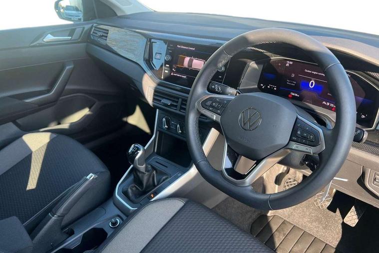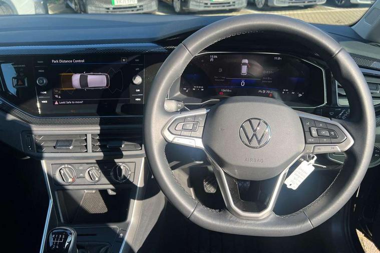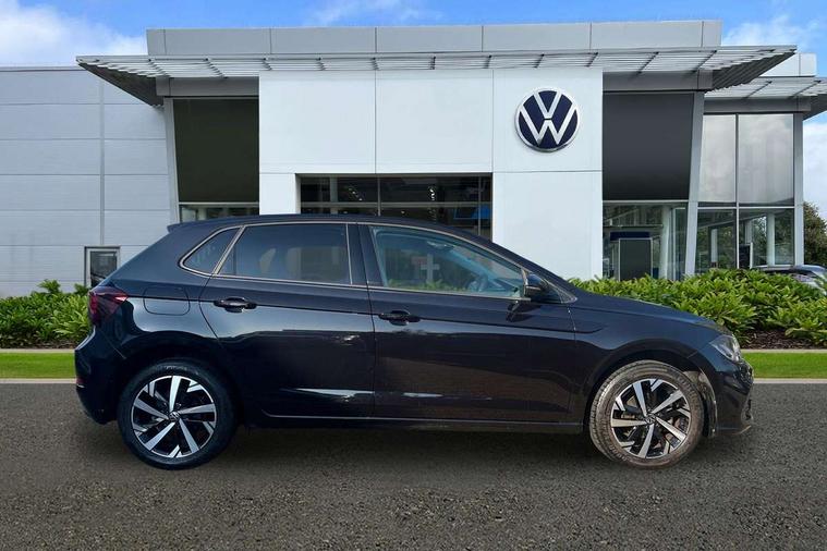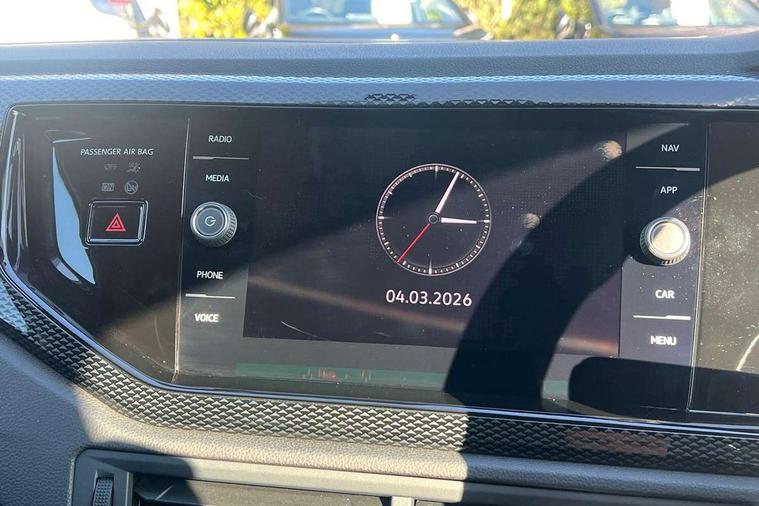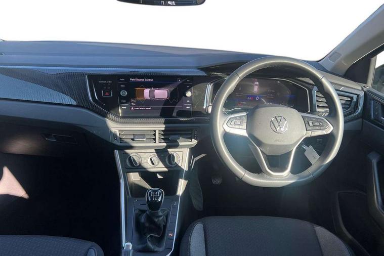 Adaptive cruise control without follow-to-stop and speed limiter, Advanced driver attention and drowsiness monitor, Bluetooth mobile phone interface, Dynamic road sign display, Emergency call service, Front assist system, Power assisted speed sensitive steering, Preparation for We connect and We connect plus, Speedo and rev counter, electronic odometer, trip, service interval display and fuel gauge, Standard rear axle, Travel Assist - Lane keeping system and traffic jam assist, Travel assist including emergency assist, Trip computer, Warning signal and warning light for front and rear seatbelts not fastened, Washer fluid level indicator, Wireless app connect, Front wheel drive, Rear shock absorpion, Start-stop system with battery regeneration (recuperation - energy recovery during braking), DAB Digital radio, Diversity antenna for FM reception, Front and rear 6 speakers, Automatic dimming interior rear view mirror, Body colour bumpers, Body colour door handles, Body colour door mirrors, Electric front windows, Heat insulating darkened glass in side and rear windows, Heat insulating glass windscreen, Power folding adjustable/heated exterior mirrors and front passenger exterior mirror lowering function, Rain sensor, Rear electric windows, Rear fog light, Rear side wing doors, Rear windscreen washer and wiper with interval delay, Third brake light, 12V power socket in centre console, 2 front and 2 rear reading lights, 2 USB-C ports in the front, 2 USB-C charging sockets on the center console in the rear, 3 rear head restraints, 60/40 split folding rear seat and rear seat bench not split, Chrome plated radiator grille inserts, air vent surrounds and light switch surrounds, Door and side trim panel, Driver and front passenger seat height adjustment, Driver/passenger sunvisors with illuminated vanity mirrors, Front centre armrest, Front seat backrest storage pockets, Front standard seats, Handbrake lever handle in leather, Hartley/Thomas cloth upholstery, Headliner in recycled material, Isofix child seat preparation easy-fit (for two outer rear seats, and front passenger seat) compatible with I-size, Leather trimmed gear knob, Luggage compartment cover, Luggage compartment floor, Luggage compartment lighting, Multifunction steering wheel, Single front passenger seat, Standard pedal cluster, Light and vision pack - Polo, 3 point height adj front seatbelts + pretensioners, 3x3 point rear seatbelts, ABS, Driver and front passenger airbag with front passenger airbag deactivation, Drivers and front passengers safety optimised head restraints, ESC (Electronic stability control) + EDL (Electronic Differntial lock) and ASR (Traction control), Extended and predictive pedestrian/ cyclist protection, Front curtain and side airbags with center airbag, Front disc brakes, Hill hold control, Manual child lock in rear doors, Rear drum brakes, Single tone horn, Tyre pressure loss indicator, Alarm with interior protection, Anti-theft alarm system with interior monitoring, backup horn, and towing protection, Anti-theft wheel bolts, Electronic engine immobiliser, Lava stone black gloss/matt decorative inserts in dash and front door panels, Low rolling resistance tyres,