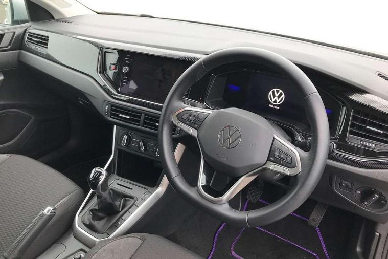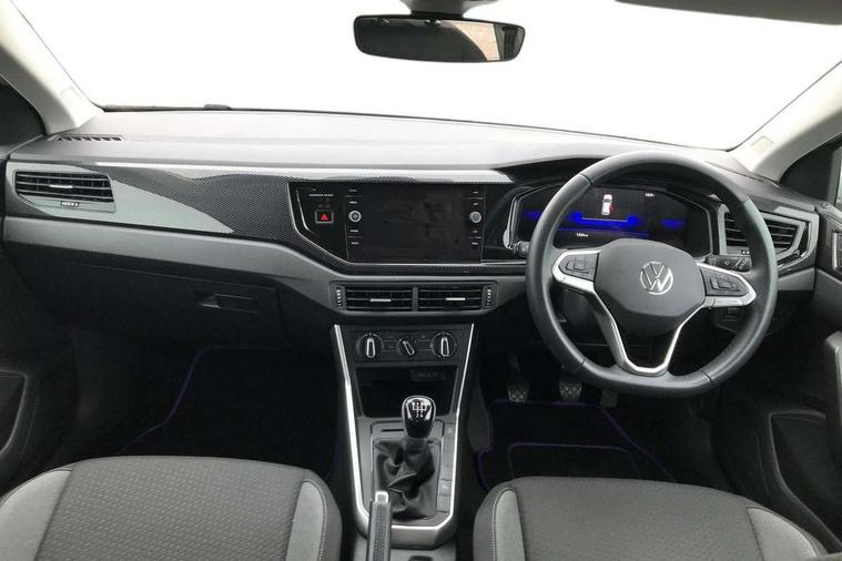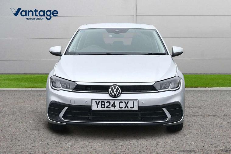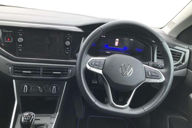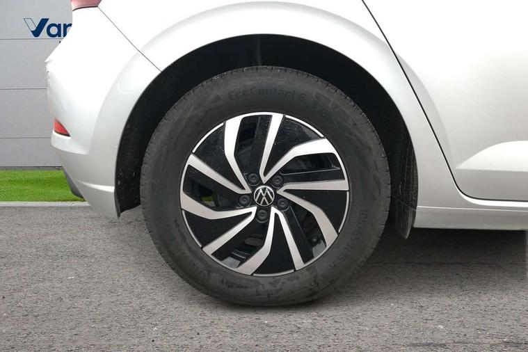 Adaptive cruise control without follow-to-stop and speed limiter, Advanced driver attention and drowsiness monitor, Bluetooth mobile phone interface, Dynamic road sign display, Emergency call service, Power assisted speed sensitive steering, Preparation for navigation system with media and internet package, Preparation for We connect and We connect plus, Speedo and rev counter, electronic odometer, trip, service interval display and exterior temperature gauge, Standard rear axle, Travel Assist - Lane keeping system and traffic jam assist, Travel assist including emergency assist, Trip computer, Warning signal and warning light for front and rear seatbelts not fastened, Washer fluid level indicator, Wireless app connect, Front wheel drive, Rear shock absorpion, Start-stop system with battery regeneration (recuperation - energy recovery during braking), DAB Digital radio, Diversity antenna for FM reception, Front and rear 6 speakers, Automatic dimming interior rear view mirror, Automatic headlight control with LED separate daytime running lights with coming/leaving home function, Body colour bumpers with chrome inserts, Body colour door handles, Body colour door mirrors, Electric front windows, Engine badge deletion, Headlight range adjustment, Heat insulating and laminated safety glass windshield, Heat insulating darkened glass in side and rear windows, Heat insulating glass windscreen, LED Headlights, LED rear combination lamps, Power folding adjustable/heated exterior mirrors and front passenger exterior mirror lowering function, Rain sensor, Rear electric windows, Rear fog light, Rear side wing doors, Rear windscreen washer and wiper with interval delay, Third brake light, 12V power socket in centre console, 2 front and 2 rear reading lights with switch off delay and dimmer, 2 USB-C ports in the front, 2 USB-C charging sockets on the center console in the rear, 3 rear head restraints, 60/40 split folding rear seat and rear seat bench not split, Ceramique roof lining, Chrome plated radiator grille inserts, air vent surrounds and light switch surrounds, Door and side trim panel, Driver and front passenger seat height adjustment, Driver/passenger sunvisors with illuminated vanity mirrors, Front centre armrest, Front seat backrest storage pockets, Front standard seats, Handbrake lever handle in leather, Hartley/Thomas cloth upholstery, Headliner in recycled material, Isofix child seat preparation easy-fit (for two outer rear seats, and front passenger seat) compatible with I-size, Leather trimmed gear knob, Luggage compartment cover, Luggage compartment lighting, Removable luggage compartment floor, Single front passenger seat, Standard climatic zones, Standard pedal cluster, Three spoke leather wrapped multifunction steering wheel, Light and vision pack - Polo, 3 point height adj front seatbelts + pretensioners, 3x3 point rear seatbelts, ABS, Driver and front passenger airbag with front passenger airbag deactivation, Drivers and front passengers safety optimised head restraints, ESC (Electronic stability control) + EDL (Electronic Differntial lock) and ASR (Traction control), Extended and predictive pedestrian/ cyclist protection, Front assist with autonomous emergency braking (for Adaptive Cruise Control ACC up to 130 mph), Front curtain and side airbags with center airbag, Front disc brakes, Hill hold control, Manual child lock in rear doors, Rear drum brakes, Single tone horn, Tyre pressure loss indicator, Alarm with interior protection, Anti-theft alarm system with interior monitoring, backup horn, and towing protection, Anti-theft wheel bolts, Electronic engine immobiliser, Lava stone black gloss/matt decorative inserts in dash and front door panels, Low rolling resistance tyres,