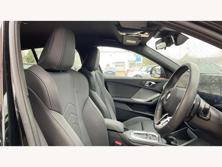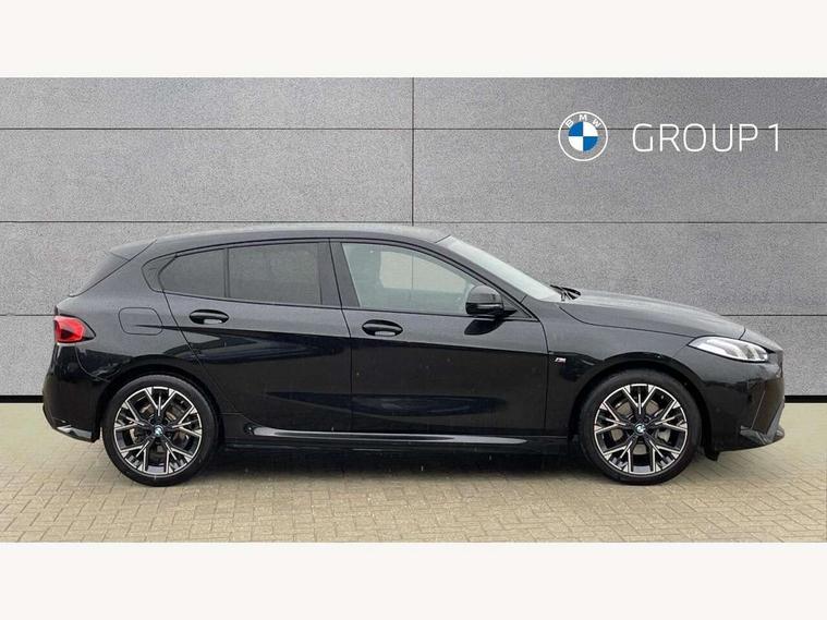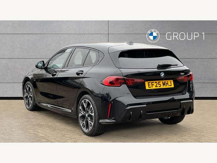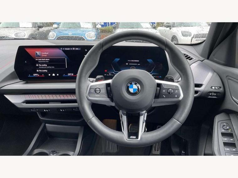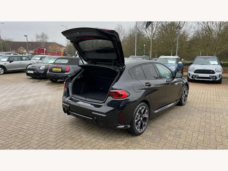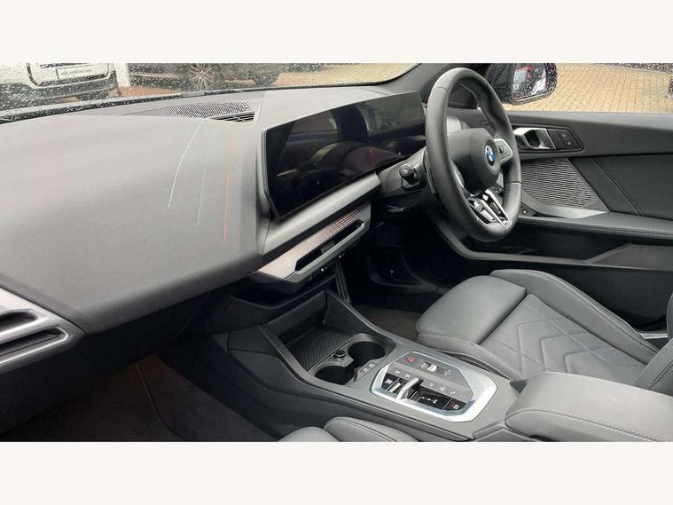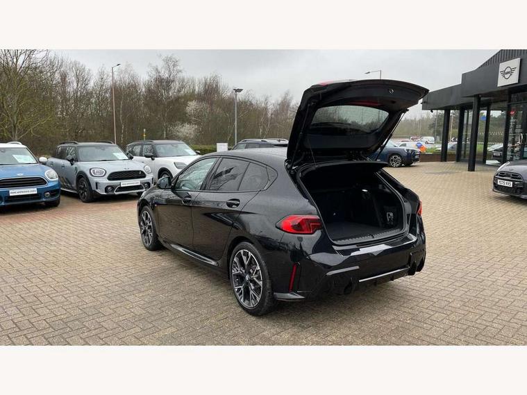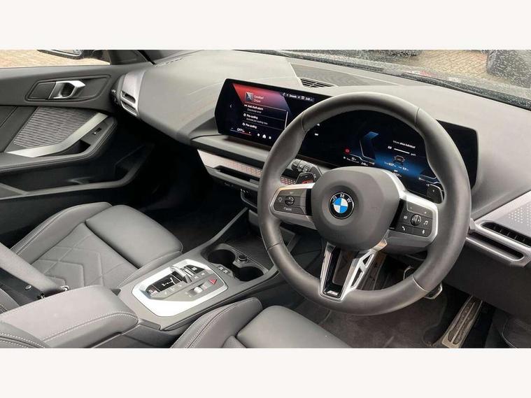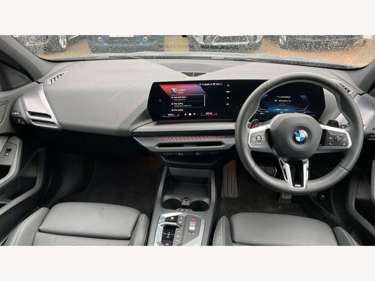 Active guard plus, Attentiveness assist, Bluetooth / WiFi interface for wireless connection of mobile terminal devices and audio streaming, BMW ConnectedDrive online services, BMW Live cockpit plus, BMW Teleservices, Check Control warning system for monitoring of lights and door/luggage compartment open warning, Eco pro mode, Electric power steering with Servotronic steering optimised at all speed ranges, Evasion assistant, Flat airvents in instrument panel with adjustable slats, Front and rear parking sensors, Front axle single joint with specific axle kinematics to minimise drive influences on steering + provide increased rigidity agile driving behaviour, Gearshift time display in manual mode, Integrated owners handbook, Left turn warning with brake function, My modes (Personal / Efficient / Sport), Oil sensor for level and grade, On board computer, Optimum shift indicator, Park assist including reversing assistant, lateral parking aid and reversing assist camera, Personal e-SIM, Personal Profile, Pull away assistant, Rigidly mounted rear subframe - Multi link construction with separate spring / damper configuration and excellent driving characteristics, Speed limit Info including no-overtaking indicator, Speed limiter, 49 litre fuel tank, Aluminium lightweight construction, Anti roll bar front and rear, Balancer shaft, Double VANOS twin scroll turbocharging system, Drive Performance Control, Electronic differential lock, Electronic selector lever, High precision injection, M Adaptive suspension, Petrol Particulate Filter, Steptronic transmission with double clutch, Twin tube gas filled shock absorbers with degressive characteristic curve, VALVETRONIC engine management, DAB Digital radio, Auto dimming rear view mirror, Automatic windscreen wipers and automatic headlight, Body colour door handles, Body colour roof trims, Chrome 'M' logo side designation, Chrome exhaust twin tailpipes round 90mm in left, Chrome kidney grille frame with Satin Aluminium struts, Direction indicator side lights in exterior mirrors, Electrically adjustable exterior mirror with mirror adjustment switch on drivers armrest and aspheric on driver side, convex on passenger side, Exterior M sport design elements, Fading support, Folding side mirrors with auto dimming/folding wing mirrors with auto dimming, Follow me home headlights, Front and rear bumper system with replaceable deformation elements, Front and rear electric windows with open and close fingertip control, anti trap facility and comfort closing, Front bumper panel with M specific design in vehicle colour with inserts in black high gloss, Front door sill finishers in black plastic with M designation in metallic look, Green tinted heat protection glazing, Heated rear window, High gloss black exterior mirrors, High gloss shadowline window frame, Recess cover mirror frames and B/C pillar embelisher trim, High level third brake light, Integrated front windscreen with washer jets, LED daytime running lights, LED eyebrow turn indicators, LED front fog lights, LED Headlights, Lightweight engineering, Matt black air guide grilles, Matt black wheel arch trim, Model badge on tailgate right, Nearside reverse light in rear light cluster, Preparation for high beam assistant, Rain sensor, Rear bumper panel with M-specific design in vehicle colour with inserts in black high gloss, Rear fog lights, Rear side wing doors, Rear window wiper, Shark fin antenna, Side sill covers with M specific design in body colour, Trailer stabilisation logic, Visible VIN plate, Welcome lighting, 12V power socket in front centre console with blanking plug, 3 rear seat head restraints, 3 seat bench in 2nd row, 3 spoke sports leather steering wheel with black leather and stitching, pearl chrome decorative finish, specific M Badge, Anthracite front and rear floor mats, Anthracite headlining, Black boot net with lashing eyes, Cargo function on 2nd seat row, Child seat ISOFIX attachment for two outer rear seats and front passenger seat with anchorage points, Conditioned based service, Driver and front passenger backrest net on rear, Driver and front passenger seat heating, Driver side folding compartment in instrument panel, Folding rear clothes hook, Footrest and pedals in black plastic, Four grab handles integrated in roof lining, Front and rear door pockets with bottle holders, Front and rear side armrest integrated into door trim, Front armrest with storage compartment, Gearshift paddles on steering wheel, Glove compartment, Height adjustable front head restraints, Luggage compartment for bag hooks on left and right, foldable luggage compartment liner and four lashing eyelets, Manual adjust steering wheel, Multi-function controls for steering wheel, Rear seat backrest with manual 60:40 split folding with 3 top tether clips integrated on rear of seat panels, Single front passenger seat, Storage compartment in centre console, Storage compartment in luggage compartment, Stowage of the parcel shelf in luggage compartment trim, Sun visors with vanity mirrors and insert tab, Two front centre console cupholders, Type C two USB ports in rear centre console, Upper retaining strap integrated into backrest rear panels, Connected pack professional - 1 Series, Interior lights pack - 1 Series, M Sport exterior styling aerodynamics pack - 1 Series, 2 tone horn, 3 point seatbelts on all seats, front pyrotechnic belt tensioners, stopper and belt force limiters, rear coded belt buckles, Airbags - Front driver/passenger, front and rear curtain head protection, front side, manual deactivation of front passenger airbag, Anti lock braking system (ABS) with brake assist, BMW emergency call, Brake drying, Braking readiness, Child proof locking system in rear door, Comfort modes, Cornering brake control, Crash sensor activating of airbags, Unlocking doors, hazard warning lights, fuel cut off, interior lighting+activation of safety battery terminal clamp, Driver and front passenger seat belt security check, Dynamic