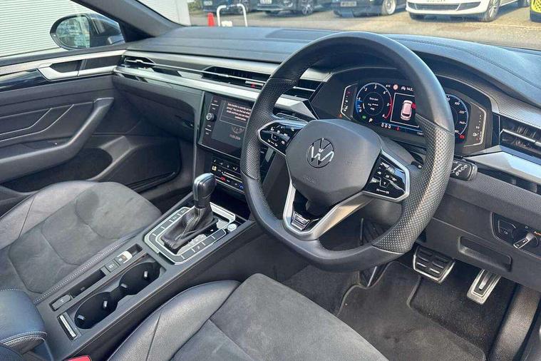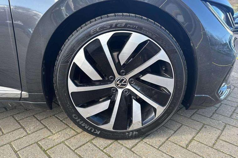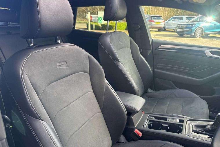 Aluminium decorative inserts, Chrome trim on lower doors in front and rear, Leatherette insert on door and side trim panel in foam film, Piano black decorative inserts in centre console, Alarm with interior protection with deactivation via infotainment system, Electronic engine immobiliser, Keyless entry system including start/stop button on centre console, Premium USB cable in choice of either Apple or Android smartphone compatibility, 3 rear three point seatbelts, ABS+EBD+Brake assist, Driver airbag and front passenger airbags with deactivation switch including driver knee airbags, Electronic parking brake, Electronic stability control (ESC) and Electromechanical brake booster, Front disc brakes, Front side airbags with curtain airbags, Hill start assist, Pro active occupant protection to detect critical situations with elevated accident potential from the front, Rear disc brakes, Three point height adjust front seatbelts + pretensioners, Two tone horn, Tyre pressure loss indicator, Warning buzzer for seatbelts if unfastened, Warning triangle, Auto dimming interior rear view mirror, Body colour door handles, Body colour side skirt, Body coloured top and matt black lower door mirrors with integrated indicators, Chrome plated radiator grille inserts and light switch surrounds, Chrome side window surrounds, Dynamic headlight range control, Electric folding door mirror, adjustable, heated with front passenger exterior mirror lowering function, Front and rear electric windows, Front and rear stainless steel door sill protection, Front windscreen washers and wipers with 4x interval delay, Heat insulating side and rear windows, Heated rear windscreen, Heated windscreen washer jets, High level 3rd brake light, LED rear combination lamp with dynamic indicators, LED rear number plate lights, Panoramic sunroof with tilting and sliding including integrated roller blind, R Line design body coloured bumpers, Rain sensor, Rear fog lamp on one side and reversing lamp on both sides, Rear windscreen washer and wiper with interval delay, Tailpipes behind rear bumper, 12V socket in front centre console, 12V socket on rear of front centre armrest, 3 rear head restraints, 30 colours interior ambient light, 60:40 split folding rear seat backrests with centre armrest, Air care climatronic 3 Zone electronic air conditioning with automatic air recirculation, Black roof lining, Chrome trim on upper and lower air vents extending across cockpit, Driver and front passenger sunvisor with vanity mirror, Front + rear carpet mats, Front cupholders x 2, Front footwell illumination, Front sports comfort seats, Glovebox, Heated front seats, Height/reach adjust steering wheel, Isofix child seat preparation easy fit for two outer rear seats, Luggage compartment lighting, Removable luggage compartment cover, Split folding front seat backrest with front centre armrest, Stainless steel pedals, Two LED front reading light, Adaptive cruise control (ACC) with speed limiter, front assist (reacting vehicles pedestrian and cyclists) and follow to stop, App connect including wireless CarPlay, Camera for warning system, Digital cockpit with 10.25" high resolution TFT display screen with customisable menus and information, Driver alert system with fatigue detection, Driver profile selection including ECO function, Dynamic road sign display, eCall - Emergency call service for SOS calls to emergency response, Emergency assist, Hands free boot opening, Press and drive key, Progressive steering, Speedo and rev counter, electronic odometer, trip, service interval display and exterior temperature gauge, Travel assist - Lane keeping assist and traffic jam assist, Voice activation for telephone and navigation, Start/stop function with battery regeneration,