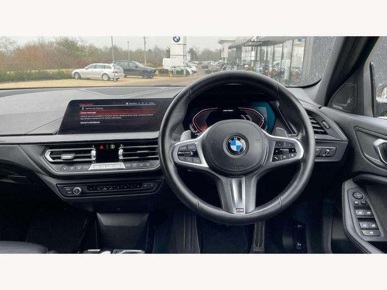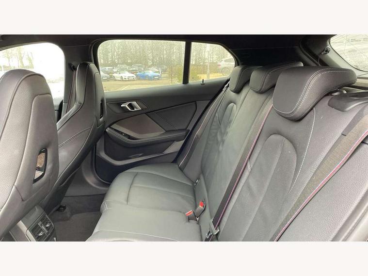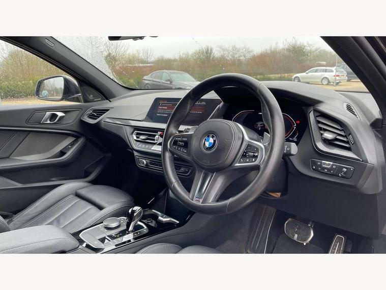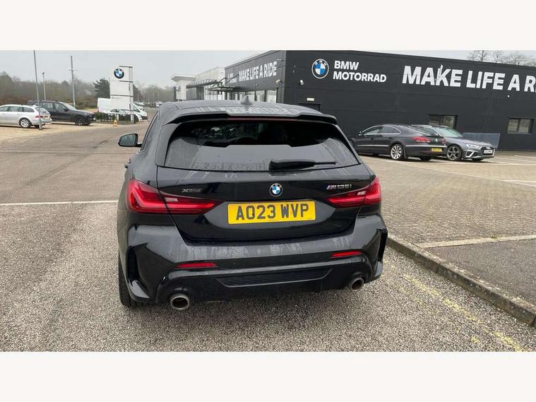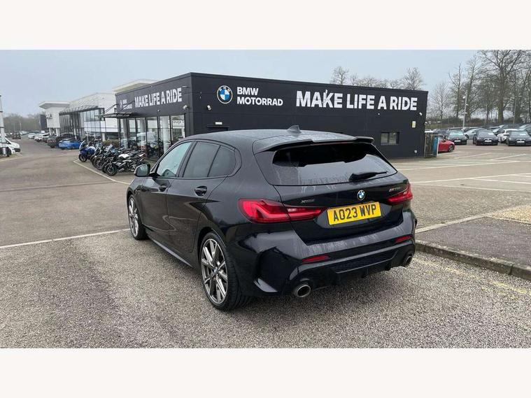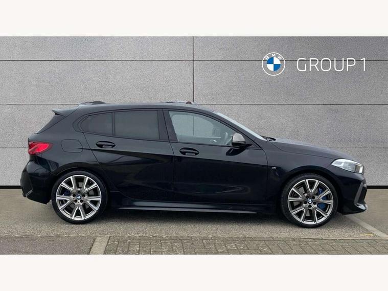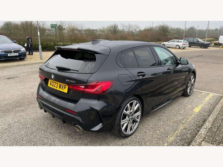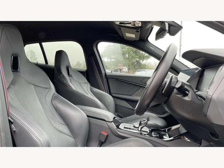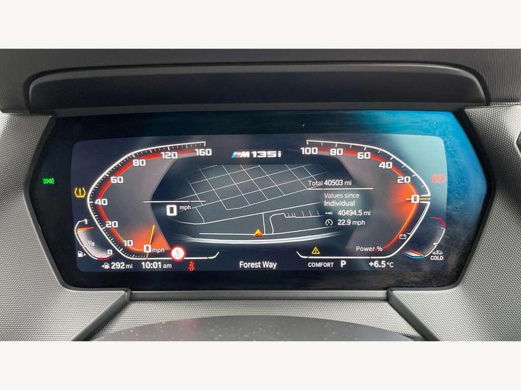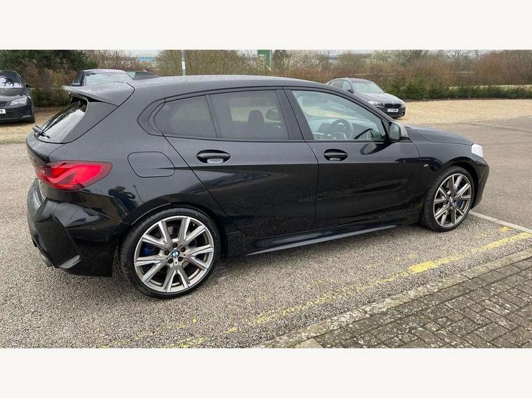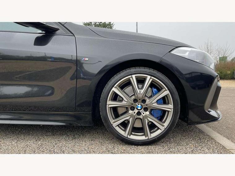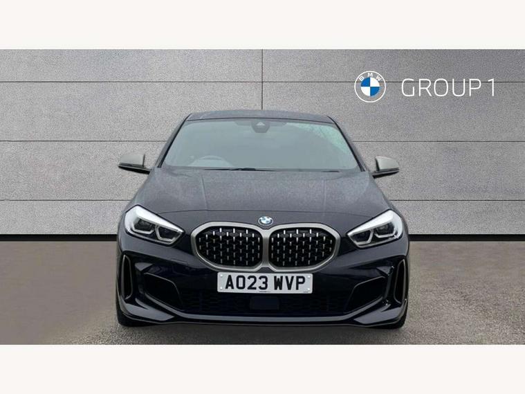 Active guard plus, Attentiveness assist, BMW ConnectedDrive online services, BMW Teleservices, Check Control warning system for monitoring of lights and door/luggage compartment open warning, Cruise control with speed limiter, Eco pro mode, Electric power steering, Electro hydraulically controlled multi-plate clutch transfers drive to rear axle and with power take-off device located on the front differential., Energy efficient operating strategy, Front axle single joint with specific axle kinematics to minimise drive influences on steering + provide increased rigidity agile driving behaviour, Gearshift time display in manual mode, Integrated owners handbook, Lane departure warning system, M Sports steering with M135i xDrive specific settings, Oil sensor for level and grade, On board computer, Optimum shift indicator, Personal Profile, Pull away assistant, Rigidly mounted rear subframe - Multi link construction with separate spring / damper configuration and excellent driving characteristics, Speed limit Info including no-overtaking indicator, Sporty fast gear shifting in sport mode, Aluminium lightweight construction, Anti roll bar front and rear, Balancer shaft, Double VANOS, Drive Performance Control, Eight speed sport automatic transmission with gearshift paddle switches, Electronic differential lock, Electronic selector lever, Engine cover with M performance designation, High precision injection, Larger fuel tank capacity (50 litres), Launch control, M135i specific heavily de-throttled engine intake air guide, M135i specific high-performance cooling package, M135i specific larger turbocharger with integrated divert-air valve, Petrol Particulate Filter, Twin tube gas filled shock absorbers with degressive characteristic curve, VALVETRONIC engine management, Variable, stepless and infinitely adjustable distribution of drive torque between the front and rear axles, xDrive intelligent all wheel drive with M135i specific reinforced components, DAB Digital radio, Auto dimming rear view mirror, Automatic headlight beam throw control, Automatic windscreen wipers and automatic headlight, Body colour door handles, Body colour roof trims, Cerium grey exterior mirror caps, Direction indicator side lights in exterior mirrors, Electrically adjustable exterior mirror with mirror adjustment switch on drivers armrest and aspheric on driver side, convex on passenger side, Exhaust tailpipe, Cerium Grey with bevelled finish - twin, round 100mm, left and right split, Fading support, Folding side mirrors with auto dimming/folding wing mirrors with auto dimming, Follow me home headlights, Front and rear bumper system with replaceable deformation elements, Front and rear electric windows with open and close fingertip control, anti trap facility and comfort closing, Front door sill finishers with M135i designation, Green tinted heat protection glazing, High gloss shadowline window frame, Recess cover mirror frames and B/C pillar embelisher trim, High level third brake light, Integrated front windscreen with washer jets, Kidney grille frame in Cerium Grey with Mesh design, LED daytime running lights, LED eyebrow turn indicators, Lightweight engineering, M logo designation side in cerium grey, M Performance exhaust system with valve control and minimised exhaust back pressure, M Performance specific setup, M Sport spoiler, Matt black air guide grilles, Matt black wheel arch trim, Model designation on electric bootlid includes xDrive designation for M135i xDrive, Nearside reverse light in rear light cluster, Preparation for high beam assistant, Rear fog lights, Rear side wing doors, Rear window wiper, Reinforced crank drive, new pistons and adapted con rods, Shark fin antenna, Trailer stabilisation logic, Visible VIN plate, Welcome lighting, 12V power socket in front centre console with blanking plug, 3 rear seat head restraints, 3 seat bench in 2nd row, 3 spoke sports leather steering wheel with black leather and stitching, pearl chrome decorative finish, specific M Badge, Anthracite headlining, Black boot net with lashing eyes, Cargo function on 2nd seat row, Child seat ISOFIX attachment for two outer rear seats and front passenger seat with anchorage points, Conditioned based service, Driver and front passenger backrest net on rear, Driver and front passenger seat heating, Driver side folding compartment in instrument panel, Folding rear clothes hook, Four grab handles integrated in roof lining, Front and rear door pockets with bottle holders, Front and rear side armrest integrated into door trim, Front armrest, Front M sports seats, Glove compartment, Height adjustable front head restraints, Luggage compartment for bag hooks on left and right, foldable luggage compartment liner and four lashing eyelets, Manual adjust steering wheel, Multi-function controls for steering wheel, Single front passenger seat, Storage compartment in centre console, Storage compartment in luggage compartment, Stowage of the parcel shelf in luggage compartment trim, Sun visors with vanity mirrors and insert tab, Two front centre console cupholders, Two zone automatic air conditioning, Type C two USB ports in rear centre console, Velour floor mats, Additional interior lighting pack - 1 Series M135i, BMW live cockpit professional pack- 1 Series, Connected pack professional - 1 Series, Interior lights pack - 1 Series, M Sport exterior styling aerodynamics pack - 1 Series 135i, 2 tone horn, 3 point seatbelts on all seats, front pyrotechnic belt tensioners, stopper and belt force limiters, rear coded belt buckles, Airbags - Front driver/passenger, front and rear curtain head protection, front side, manual deactivation of front passenger airbag, Anti lock braking system (ABS) with brake assist, BMW emergency call, Brake drying, Braking readiness, Child proof locking system in rear door, City braking function, Comfort modes, Cornering brake control, Crash sensor activating of airbags, Unlocking doors, hazard warning lights, interior light