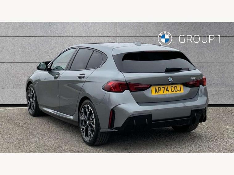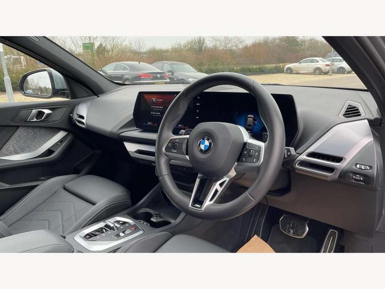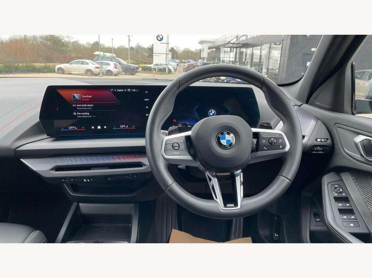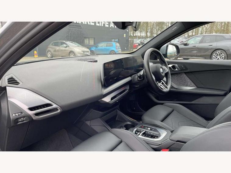 Active guard plus, Attentiveness assist, Bluetooth / WiFi interface for wireless connection of mobile terminal devices and audio streaming, BMW ConnectedDrive online services, BMW Live cockpit plus, BMW Teleservices, Check Control warning system for monitoring of lights and door/luggage compartment open warning, Cruise control with speed limiter, Eco pro mode, Electric power steering with Servotronic steering optimised at all speed ranges, Front and rear parking sensors, Front axle single joint with specific axle kinematics to minimise drive influences on steering + provide increased rigidity agile driving behaviour, Integrated owners handbook, Lane departure warning system, Oil sensor for level and grade, On board computer, Optimum shift indicator, Park assist including reversing assistant, lateral parking aid and reversing assist camera, Personal Profile, Pull away assistant, Rigidly mounted rear subframe - Multi link construction with separate spring / damper configuration and excellent driving characteristics, Speed limit Info including no-overtaking indicator, Speedometer, 49 litre fuel tank, Aluminium lightweight construction, Anti roll bar front and rear, Balancer shaft, Double VANOS twin scroll turbocharging system, Drive Performance Control, Electronic differential lock, High precision injection, M Adaptive suspension, Petrol Particulate Filter, Twin tube gas filled shock absorbers with degressive characteristic curve, VALVETRONIC engine management, DAB Digital radio, Auto dimming rear view mirror, Automatic headlight beam throw control, Automatic windscreen wipers and automatic headlight, Body colour door handles, Body colour mirror caps, Body colour roof trims, Chrome 'M' logo side designation, Chrome exhaust twin tailpipes round 90mm in left, Chrome kidney grille frame with Satin Aluminium struts, Direction indicator side lights in exterior mirrors, Electrically adjustable exterior mirror with mirror adjustment switch on drivers armrest and aspheric on driver side, convex on passenger side, Fading support, Folding side mirrors with auto dimming/folding wing mirrors with auto dimming, Follow me home headlights, Front and rear bumper system with replaceable deformation elements, Front and rear electric windows with open and close fingertip control, anti trap facility and comfort closing, Front door sill finishers in black plastic with M designation in metallic look, Green tinted heat protection glazing, High gloss shadowline window frame, Recess cover mirror frames and B/C pillar embelisher trim, High level third brake light, Integrated front windscreen with washer jets, LED daytime running lights, LED eyebrow turn indicators, LED front fog lights, LED Headlights, Lightweight engineering, Matt black air guide grilles, Matt black wheel arch trim, Nearside reverse light in rear light cluster, Preparation for high beam assistant, Rear fog lights, Rear side wing doors, Rear window wiper, Shark fin antenna, Trailer stabilisation logic, Visible VIN plate, Welcome lighting, 12V power socket in front centre console with blanking plug, 3 rear seat head restraints, 3 seat bench in 2nd row, 3 spoke sports leather steering wheel with black leather and stitching, pearl chrome decorative finish, specific M Badge, Anthracite headlining, Black boot net with lashing eyes, Cargo function on 2nd seat row, Child seat ISOFIX attachment for two outer rear seats and front passenger seat with anchorage points, Conditioned based service, Driver and front passenger backrest net on rear, Driver and front passenger seat heating, Driver side folding compartment in instrument panel, Folding rear clothes hook, Four grab handles integrated in roof lining, Front and rear door pockets with bottle holders, Front and rear side armrest integrated into door trim, Front armrest, Glove compartment, Height adjustable front head restraints, Luggage compartment for bag hooks on left and right, foldable luggage compartment liner and four lashing eyelets, Manual adjust steering wheel, Multi-function controls for steering wheel, Rear seat backrest with manual 60:40 split folding with 3 top tether clips integrated on rear of seat panels, Single front passenger seat, Storage compartment in centre console, Storage compartment in luggage compartment, Stowage of the parcel shelf in luggage compartment trim, Sun visors with vanity mirrors and insert tab, Two front centre console cupholders, Type C two USB ports in rear centre console, Velour floor mats, Connected pack professional - 1 Series, Interior lights pack - 1 Series, M Sport exterior styling aerodynamics pack - 1 Series, 2 tone horn, 3 point seatbelts on all seats, front pyrotechnic belt tensioners, stopper and belt force limiters, rear coded belt buckles, Airbags - Front driver/passenger, front and rear curtain head protection, front side, manual deactivation of front passenger airbag, Anti lock braking system (ABS) with brake assist, BMW emergency call, Brake drying, Braking readiness, Child proof locking system in rear door, Comfort modes, Cornering brake control, Crash sensor activating of airbags, Unlocking doors, hazard warning lights, interior light, safety battery terminal, Driver and front passenger seat belt security check, Dynamic stability control + (DSC+), Dynamic Traction Control - DTC, Electrically operated hand brake including automatic hold function, Front and rear disc brakes, Seatbelt warning, Side impact protection, Tyre pressure monitoring system, Warning triangle and first aid kit, Central locking switch for all doors, fuel filler cap and luggage compartment, Deadlocking function system to all doors, Drive away locking system on all doors and luggage compartment with de-activated in iDrive settings, Locking wheel bolts, Remote control with integrated key with High-gloss Black inlay and M designation and 1 button for open/ close lock, window, open luggage compartment, Start/stop button illuminated in centre console with keyless engine start and auto 