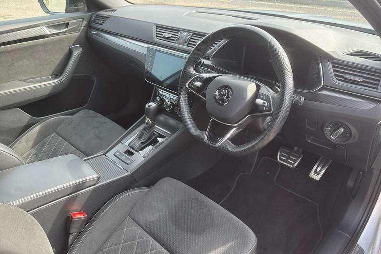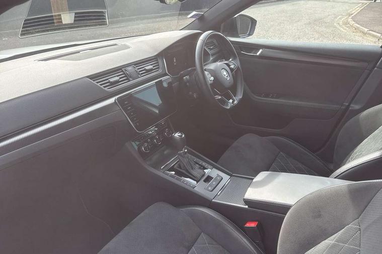Bluetooth system, CareConnect and Emergency Call, Columbus HDD satellite 3D map navigation with 9.2" colour touch screen, web radio, integrated Wi-Fi, Driver fatigue sensor, Front assist with pedestrian protection, Progressive dynamic steering, Stop/start engine system and energy recovery, Virtual cockpit, Voice control system, Wireless smartlink apple carplay, SmartLink+ android auto, XDS+, 2 USB ports, Bolero radio with 8" touchscreen display, DAB Digital radio, 3rd brake light, Aero front windscreen wipers with intermittent function, Auto dimming rear view mirror, Black rear badge, Body colour door handles, Cornering front fog lights, Electrically adjustable heated and folding door mirrors with memory function, Front and rear electric windows, Full matrix LED headlights with AFS LED DRL integrated with headlight washer LED rear lights(High function), dynamic indicators and lighting animation, Gloss black exterior door mirrors with sports styling including front grill, side strip and window surrounds, Gloss black grille surround with gloss black rib elements, Gloss black rear spoiler (roof), Gloss black strip between rear lights, Light assistant (coming/leaving home/tunnel light), Privacy glass, Rain sensor, Rear exhaust diffuser styling elements, Rear side wing doors, Sportline badging, 12v power point in centre console, 3 seat bench in 2nd row, Black roof headlining, Black textile floor mats, Carbon optic interior elements, Electric auxiliary air heater, Front and rear footwell illumination, Front armrest with storage box, Height adjustable front and rear head restraints, Ice scraper, Illuminated and cooled glovebox, Interior lights with control switches, Isofix child seat fittings on outer rear seats, LED front and rear reading lights, Microsuede/leather upholstery with silver diamond stitching sports seats, One umbrella compartments in driver door with one umbrella in drivers door, Overhead glasses storage compartment, Rear centre armrest with cupholders, Removable parcel shelf, Single front passenger seat, Split folding rear seats, Storage compartment with cover in luggage compartment side panels, Ticket holder on A Pillar, LED package plus - Superb, 3 rear seatbelts, 7 airbags - Front, front side, curtain, driver's knee airbag with front passenger deactivation switch, Driver and passenger seatbelts with warning light, Electronic parking brake, ESC including ABS, EBV, MSR, ASR, EDS, HBA, DSR, RBS, CBC, multi-collision brake (MKB) and Auto hold, Hill start assist, Power operated child lock in rear doors, Tyre pressure monitor, Alarm with interior monitoring tilt sensor and back up horn, Electronic engine immobiliser, Keyless entry and start/stop, Remote central locking with SAFE system, Third remote key,