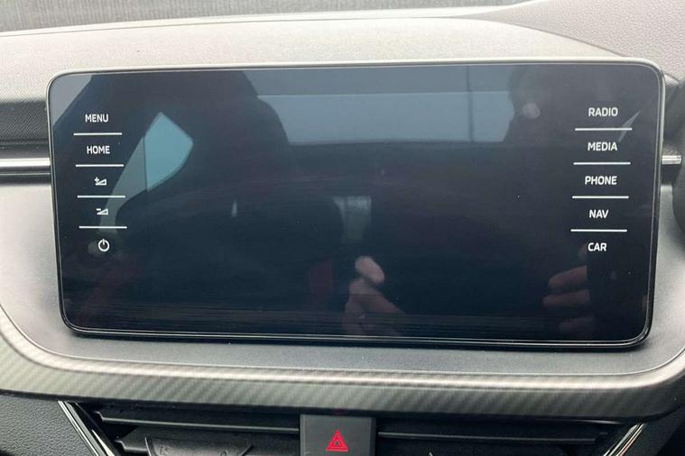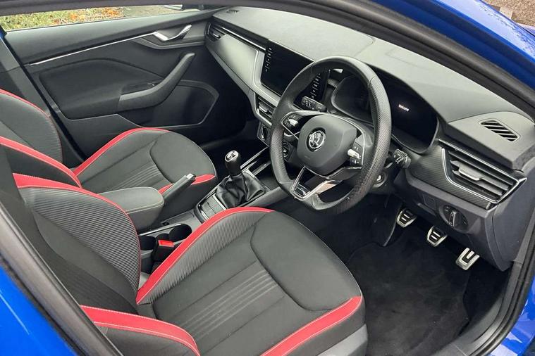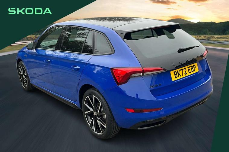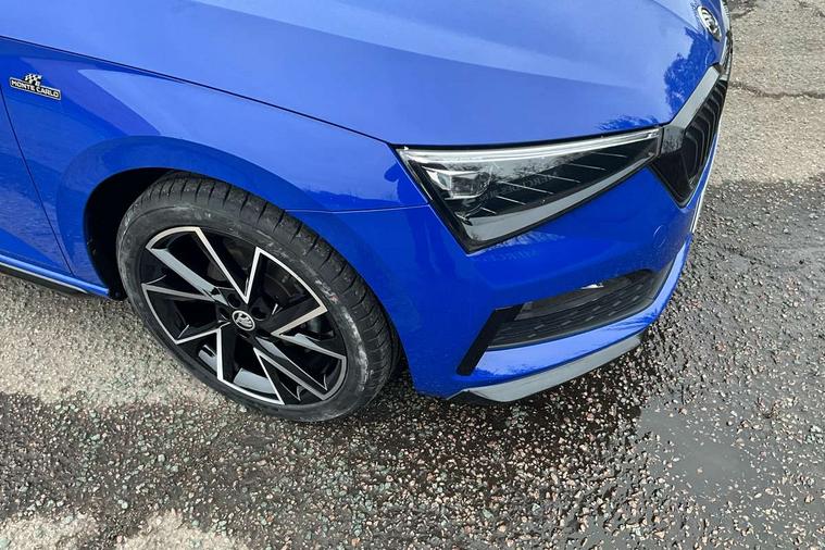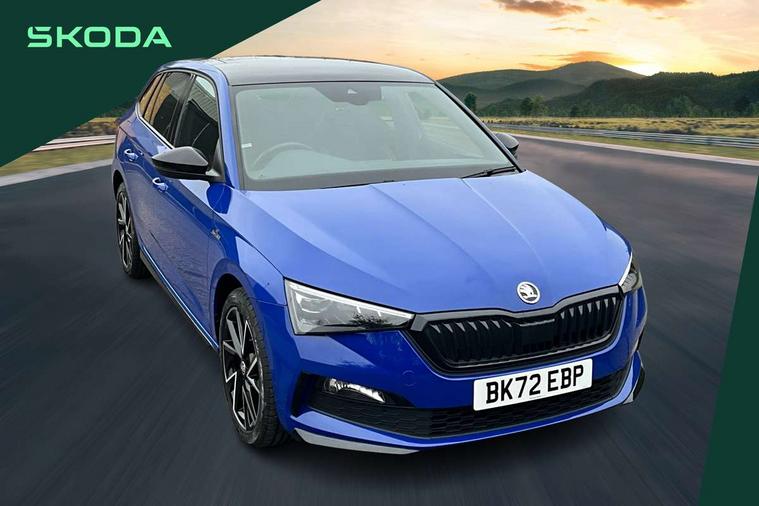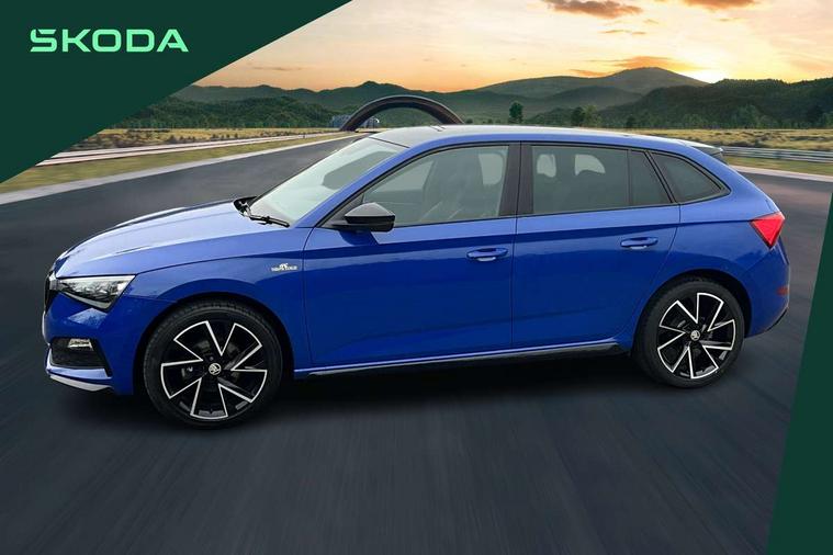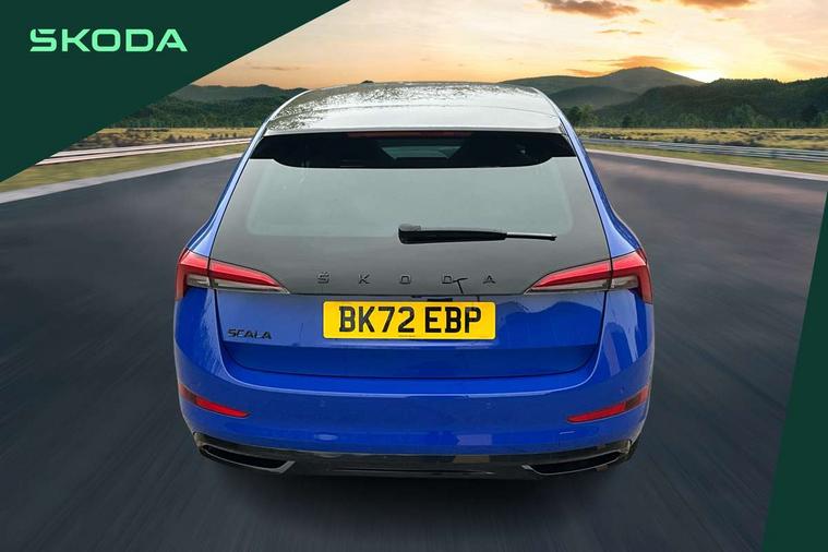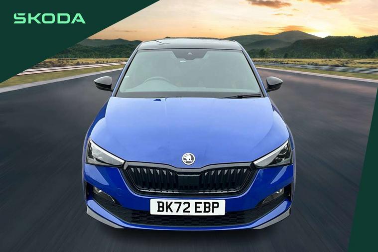 Amundsen satellite navigation with 9.2" glass colour touchscreen with virtual cockpit, web radio, Bluetooth system, eCall emergency system, Monte carlo instrument cluster, PAS, Rain and light assist with auto dimming rear view mirror, Rear view camera, Speed limiter, Traffic sign recognition, Virtual cockpit, Voice control system, 2 USB - C ports, 8 loudspeakers, DAB Digital radio, 3rd brake light, Adaptive front light system, Automatic headlamp activation with Coming home and Leaving home feature, Black door mirrors, Black radiator grille, Black rear diffuser, Black roof spoiler, Body colour door handles, Dimming rear view mirror with black frame, Electric folding door mirrors, Electrically adjustable and heated door mirrors, Front and rear electric windows, Front fog lights, LED daytime running lights, LED rear tail lights with dynamic indicators, Privacy glass, Rear side wing doors, Rear wiper, Skoda across tailgate in black, Tinted windows, 12V Accessory socket in centre console, 3 seat bench in 2nd row, Aluminium pedals, Chrome inner door handles, Cloth upholstery, Front head restraints, Glasses storage in roof liner, Height adjustable passenger seat, ISOFIX for rear passenger seat, Leather gearknob and handbrake lever, Manual lumbar support for front seats, Reading lights for driver and front passenger, Single front passenger seat, Sun visor with make up mirror for front passenger, Textile floor mats, Third rear headrest, Umbrella, Exterior design pack - Scala, 3x3 point rear seatbelts, Curtain airbags, Emergency call and proactive services, Front head and side airbags, Hill hold control, Manual rear child locks, One tone horn, Passenger airbag switch off function, Seat belt reminder for all seats, Alarm, Anti-theft wheel bolts, Remote central locking with 2 remote folding keys, SAFE function for remote central locking, 18" Vega alloy wheels in black, Temporary space saver wheel,