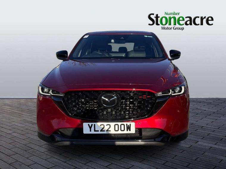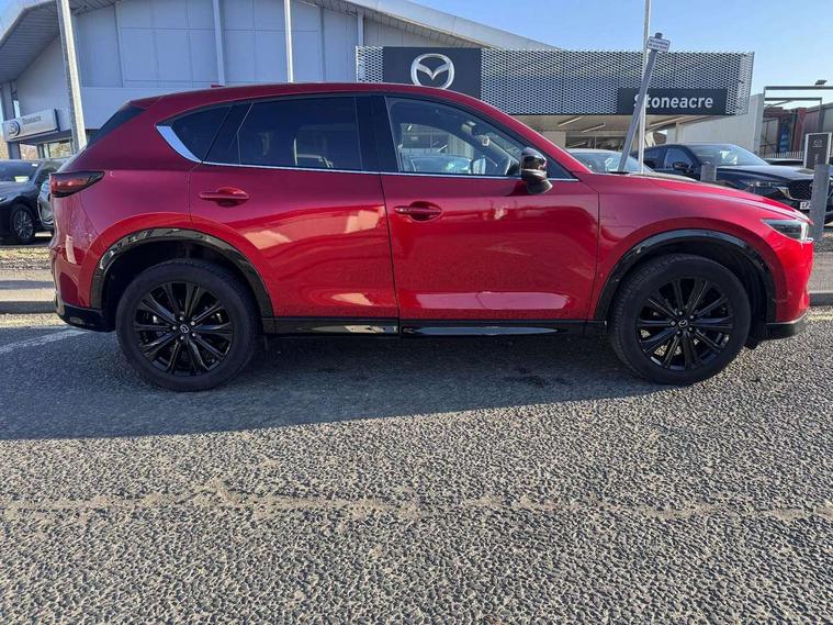 10.25" display with Mazda Connect infotainment, 7" colour TFT display, Apple car play/Android Auto, Blind spot monitoring with rear cross traffic alert, Bluetooth connectivity with voice control, Collision prevention assist, Connected services, Cruising Traffic Support, Drive mode selector, Electric power steering, Emergency stop signalling system, Engine start/stop button, Forward collision warning, Front and rear parking sensors, Integrated navigation system, Intelligent speed assist, Lane departure warning system, Lane keep assist, Power liftgate, Radar cruise control with Stop and Go, Reversing camera, Service indicator, Traffic sign recognition (TSR), Trip computer, Windscreen projected colour active driving display (HUD) with memory, i-stop, 2 USB sockets in rear, 2x USB sockets in front, 6 speakers, AM/FM radio, Bluetooth audio streaming, DAB Digital radio, Multimedia Commander including separate volume dial, Steering wheel mounted audio controls, Adaptive front lighting system, Auto dimming rear view mirror, Automatic headlights, Black honeycomb door trim decoration panel, Black honeycomb interior decoration panel, Body colour roof spoiler, Coming/leaving home lighting function, Door mirror integrated indicators, Dual large chrome tailpipes, Dusk sensitive headlamps, Electric front/rear windows with one touch auto up/down, Front grille in gloss black finish, Gloss black B and C pillars garnish, Gloss black door mirrors, Gloss black front and rear lower bumper mouldings, Gloss black signature wing, Gloss black tire arch and side mouldings, High beam assist, Intermittent rear wash/wipe, LED auto levelling, LED daytime running lights, LED front fog lights, LED Headlights, LED third brake light, Power folding and heated door mirrors, Power tilt/slide sunroof, Privacy glass (rear side windows only), Rain sensing front wipers, Rear side wing doors, Red front grille accent, Red stitching and accents on door trim, knee pad, console lid, steering wheel, shift boots, Scuff plates, Shark fin antenna, Signature LED rear combination lights, Windscreen wiper de-icer, 12v electrical power outlet, 3 seat bench in 2nd row, 3 stage heated front seats, 40:20:40 Karakuri fold-flat seat system, 6 way electric adjustable passenger seat, 8 way electric driver seat with lumbar support + memory, Black roof lining, Cargo room flat floor board with waterproof undertray, Driver seat power slide, recline and height adjustment, Driver, Front passenger and two rear grab handles with coat hooks, Driver/passenger front seatback pockets, Driver/passenger sunvisors + illuminated vanity mirrors (drivers with ticket holder), Dual zone climate control, Folding centre armrest with 2 cup holders, Front and rear door pockets, Front centre storage with two cupholders, Front passenger seat power slide, recline and height adjustment, Heated steering wheel, Humidity sensor, Illuminated glovebox, Interior dome light with integral spotlight, ISOFIX child seat anchorage points attached on outer rear seats, Karakuri tonneau cover, Leather upholstery, Leather wrapped steering wheel and gear knob, Luggage compartment LED lighting, Luggage compartment power outlet, Paddle shifts, Rear air vents, Rear headrests, Rear seat recline, Roof mounted sunglasses holder, Single front passenger seat, Three height adjustable head restraints, Tilt/height adjustable steering wheel, White interior LED illumination lighting, 3 point front seatbelts with pre-tensioners, 3 rear 3 point seatbelts, ABS, Advanced Smart City Brake Support - SCBS, Child locks on rear doors, Driver and front passenger side airbags, DSTC-Dynamic Stability and Traction Control, Dual front airbags, Electronic brake force distribution, Electronic parking brake with auto hold, ESP, Front and rear curtain airbags, Front passenger airbag deactivation, G-Vectoring control, Hill hold assist, Seatbelt reminder front and rear, Single stage passenger airbags, Smart brake support with forward obstruction warning, Tyre pressure monitoring system, Automatic door locking when moving off, Deadlock, Immobiliser, Power door locks, Remote central locking, Smart keyless entry, Thatcham Cat.1 alarm, 19" Black alloy wheels, Tyre repair kit,