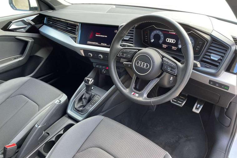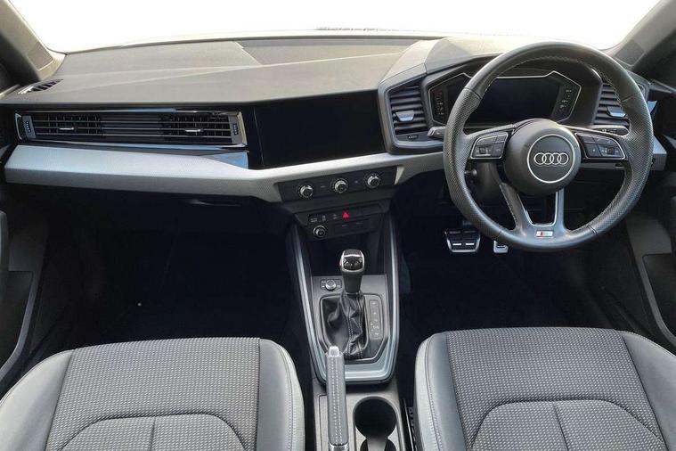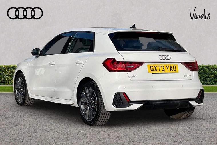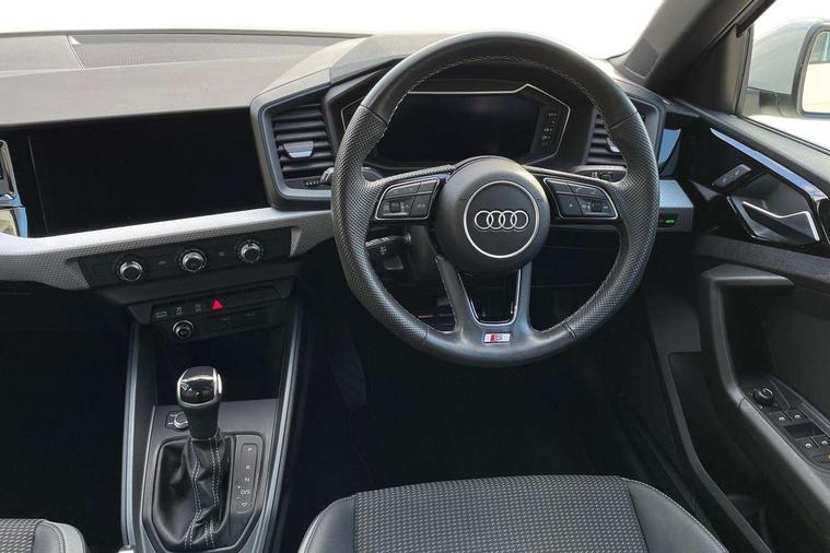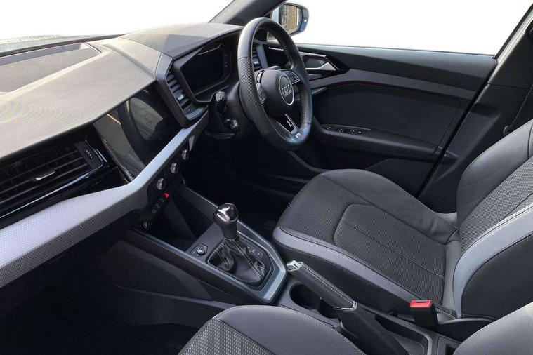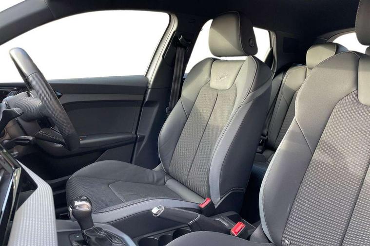 10.25" Digital instrument cluster display classis style instrument dials + speed, odometer, time, outside temperature, telephone menu + fuel level warning, Audi drive select - power steering assistance + engine + gear shift 3 preset modes (auto, dynamic, efficiency and an Individual mode), Audi smartphone interface with connect compatible smartphone via USB directly MMI display + Nav, music, third party apps controlled via MMI controller, Automatic start/stop system, Bluetooth interface, Cruise control, Driver's information system, Electromechanical power steering, Emergency e-call, Lane departure warning system, Rear parking sensor, Service interval indicator, Speed limiter, Voice control system, Washer fluid level indicator, Sports suspension, 2 x USB type C connection points, 6 passive loudspeakers, DAB Digital radio, MMI radio plus with 10.1" colour MMI display screen and MMI touch, Auto dimming rear view mirror, Body coloured door mirrors, Door sills with aluminium inlays and S Line logo, Electric front and rear windows, Electrically adjustable, heated, folding door mirrors with integrated LED side indicator, Front side air inlets in grained matt black and C frame in anthracite black, Heat insulating glass windscreen and side windows, Heated rear windscreen, High level LED brake light, LED headlights with LED rear lights + dynamic rear indicators + headlight adjustment and high beam, turning light + LED daytime running lights, Privacy glass, Radiator grille and rear diffuser in matt anthracite black, Radiator protective grille frame in matt aluminium silver, Rain and light sensors, Rear fog lights, Rear side wing doors, Rear wiper, S line badges on front wings, Side front spoiler lips in grained matt black, 12V socket in centre console with two cup holders, 3 rear seats with headrests, 3 seat bench in 2nd row, 3 spoke leather multi-function plus steering wheel features S badging and grips in perforated leather with contrast stitching, 40:60 Split folding rear seat or folded fully, Black cloth headlining, Driver and passenger seat with manual height adjust with forward and backwards adjustment, Front and rear black floor mats with contrast stitching in fine silver, Front head restraints, Front passenger seat, Height and reach adjustable steering wheel, ISOFIX child seat mounting for front passenger and outer rear seats including top tether attachment point of outer rear seats, Leather gear knob with aluminium trim, Leather handbrake grip, Luggage compartment light with front and rear reading lights, Manual air conditioning, Manually adjustable lumbar support in front seats, Stainless steel pedals, LED interior lighting pack - A1, Luggage compartment pack - A1, S line exterior styling pack - A1 Sportback, 3x3 point rear seatbelts, Audi pre-sense front with pedestrain and cyclist recognition, Brake assist function, Driver and front passenger airbag with front side and head airbags, Electronic Stability Control including ABS, EBD, ASR and EDL, Front passenger airbag deactivation switch, Hill hold assist, Manual rear child locks, Seatbelt height adjustment for front seats, Seatbelt monitoring, Tyre pressure warning light, Warning triangle and first aid kit, Anti theft alarm, Anti theft wheel bolts and loose wheel warning, Immobiliser, Remote central locking with 2 foldaway keys, Aluminium trim for control switches, air vents and digital instrument cluster, Black dashboard, Silver grey inlays polygon structure in diamond paint finish, Structured grey accent areas including air vents, door handle recesses and centre console in quartz paint finish,