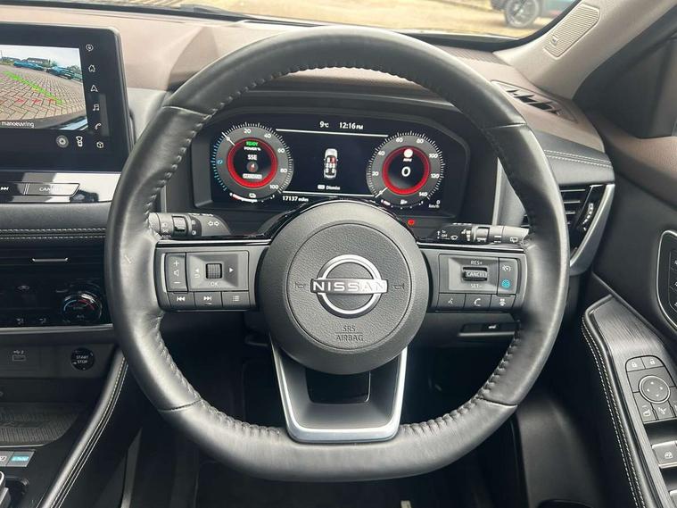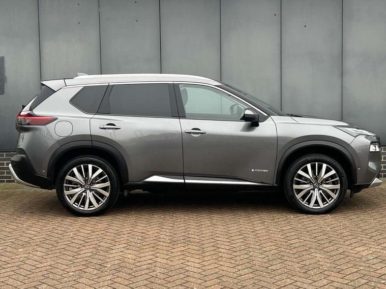 Advanced 10.8" head up display, Android auto/Apple CarPlay (Wired), Blind spot warning, Drive modes (sport, normal, eco, snow, off-road), e-Pedal step, Electric speed sensitive power steering, Emergency and breakdown call, Front and rear parking sensors, Full Digital 12.3" TFT Digital Combimeter, Google maps services - search, weather, 3D maps and Google street view, Hands free power tailgate, Idle stop/start system, Intelligent around view monitor, Intelligent driver alert system, Intelligent forward collision warning, Intelligent lane departure warning, Intelligent lane intervention, Intelligent lane keep assist, Lane departure prevention, Maximum speed limiter, Moving object detection, Nissan connect 12.3 inch touchscreen infotainment system, Nissan connect nav with TomTom traffic, Pro pilot and head up display, ProPilot park, Push button starter, Rear cross traffic alert, Rear view camera, Remote control services - door locks, lights, horn and car locator, Telematics - notifications and connectivity services, TomTom live traffic services, Traffic jam pilot, Traffic sign recognition with legal speed adjustment, Trip computer, Virtual personal assistant and firmware over the air capability, Wireless apple carplay, Wireless charging pad, AM/FM audio system with DAB, Bluetooth audio streaming, Bose premium acoustimass bass box with digital amplifier, Bose premium sound system with 10 speakers, Digital amplifier, Front USB connections (Type-A and Type-C), Rear USB charging only ports (Type-A and Type-C), 3rd brake light, Auto dimming rear view mirror, Auto rear wiper when reversing, Body colour mirror caps, Body coloured door handles, Bodyside mouldings, Chrome side window finisher, e-4ORCE badging, e-POWER badging, Electric auto folding door mirrors, Electrically adjustable and heated door mirrors, Follow me home headlights, Headlights auto levelling system, High beam assist, Intelligent auto headlights, LED daytime running lights, LED front fog lights, LED headlights with adaptive driving beam, LED rear lights, Memory function for door mirrors, One touch front and rear electric windows with remote opening and closing, Partially body coloured bumpers, Rain sensing wipers, Rear privacy glass, Rear reversing light (bulb lighting), Rear roof spoiler, Rear side wing doors, Rear styling plate, Reverse tilting door mirrors, Shark fin antenna, Splash free wipers, Super UV and infrared cut glass, Thermaclear heated windscreen, Three blink turn signal, 12v power socket in dashboard and luggage, 2 seat bench in 3rd row, 3 bench rear seats in 2nd row, 3 rear headrests, Butteryfly console, Chrome interior door handles, Dark headlining, Driver and front passenger sunvisors with illuminated vanity mirrors, Driver seat back pocket, Electric adjustable 2 way lumbar support for driver, Electrically adjustable driver seat with massage and memory functions, Electrically adjustable passenger seat with massage and memory functions, Front and rear heated seats, Front centre console and armrest, Front cupholders, Front door with bottle holders, Heated steering wheel, Height adjustable driver's seat, Height adjustable front headrests, Height adjustable passenger seat, Leather shift knob, Leather steering wheel, Luggage board system, Luggage space lighting, Multifunction steering wheel, Passenger seat back pocket, Quilted premium leather upholstery, Rear armrest with 2 cupholders, Rear door bottle holders, Single front passenger seat, Sliding second row seats, Split folding 2nd row - 40/20/40, Steering column mounted gear shift paddles, Tilt/telescopic adjustable steering wheel, Tri zone automatic climate control with pollen filter, Two rear isofix child seat anchorage points with top tether, Sky pack - X-Trail, 3x3 point rear seatbelt pretensioners + load limiters, ABS with EBD and brake assist, Active brake limited slip, Auto hold function, Child locks on rear doors, Curtain and front side, far side airbags, Driver and passenger airbags, Driver, passenger and 2nd row rear seat belt reminder, Electronic parking brake, Front seatbelt pretensioners + load limiters, Height adjustable front seatbelts, Hill start assist, Intelligent blind spot intervention, Intelligent front emergency braking with pedestrian, cyclist recognition and junction assist, Intelligent rear automatic braking, Tyre pressure monitoring system, Vehicle dynamic control, Advance intelligent key with driver memory storage (seats, mirrors, audio), Engine immobiliser, Remote central door locking with deadlocking, Thatcham Cat.1 alarm, 20" Diamond cut alloy wheels, Tyre puncture repair kit,