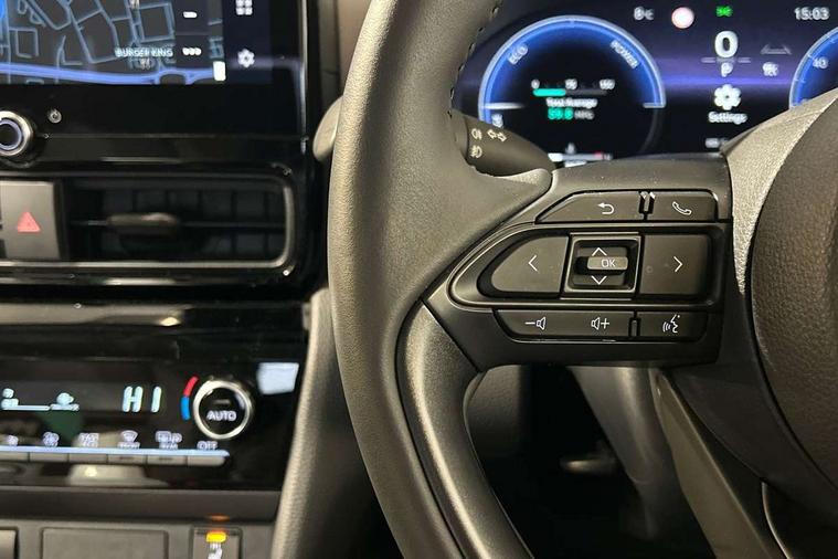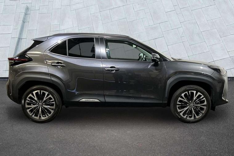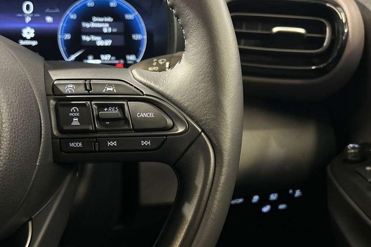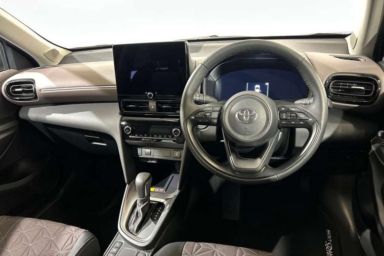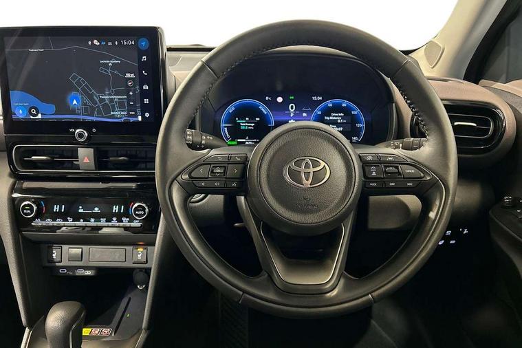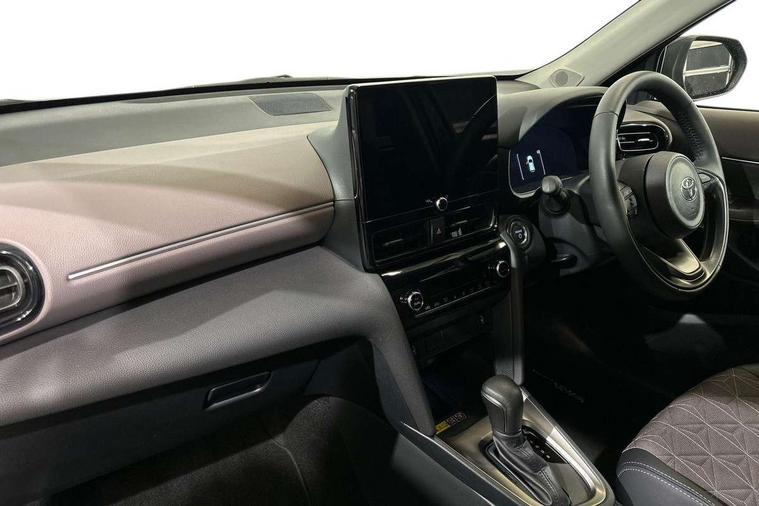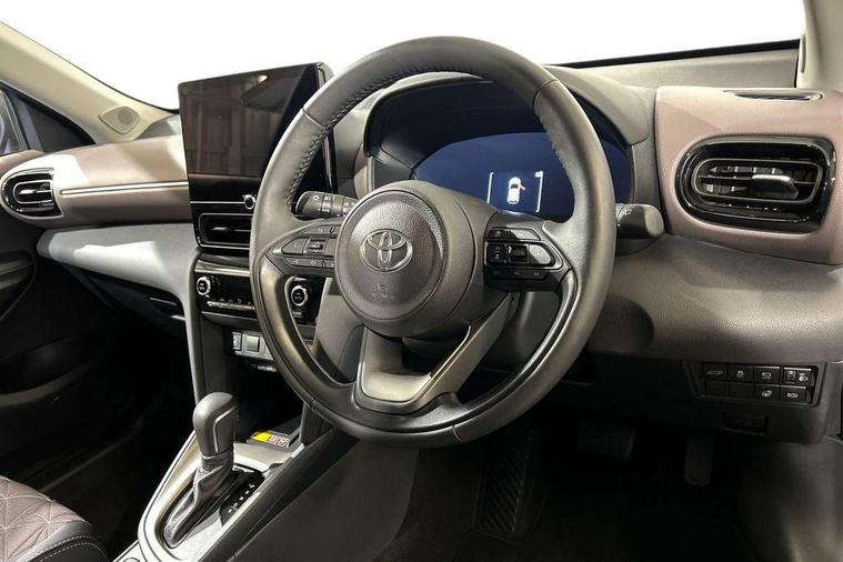 10.5" Multimedia display screen, 10.5" Toyota smart connect+ with navi multimedia system with wireless Smartphone integration incl Apple CarPlay, 360 degree panoramic view monitor, 7" Multi information display screen, Adaptive cruise control, multi info switches on steering wheel, Adjustable speed limiter, Advanced parking assist, Blind spot monitoring, Bluetooth connectivity, Color multi-information display, Digital speedometer, Digital tachometer, Drive mode selector, Driver attention alert system, Dynamic guide lines on reversing camera, eCall emergency system, Electric power steering, Emergency driving stop system, Full range intelligent adaptive cruise control, Hybrid system indicator, Intelligent front and rear parking sensors with clearance sonar and automatic braking, Intersection turn assist, Key reminder warning, Lane change assist, Lane trace assist, My T Connected services, Power tailgate, Pre-collision system enhanced with emergency steering assist, Rear cross traffic alert, Remote boot door release in cabin, Road sign assist - RSA, Safe exit assist, Tailgate, Telephone switch on steering wheel, Wireless Mobile Phone Charger, Steering assisted vehicle stability control, 6 speakers, DAB Digital radio, Front USB Type-C connector, Front USB-C device charger, Acoustic windscreen glass, Anti-jam protection on power windows, Auto dimming rear view mirror, Auto high beam [AHB] with on/off switch, Auto intermittent windscreen wipers, Automatic headlights, Automatic headlights cut-off, Black door moulding, Black lower front grille, Black protection moulding on side doors, Black roof rails, Black wheel arch mouldings, Body colour door handles, Body colour front bumper, Body colour rear bumper, Electric adjustable heated door mirrors, Follow me home headlights, Front and rear electric windows with auto up/down function, Gloss black upper front grille, Headlight cut off reminder, Indicators integrated on door mirrors, Intermittent rear wiper, Kick activated power back door, LED 3rd brake light, LED daytime running lights guide, LED front fog lights, LED front light guide, LED Indicators, LED projector headlights, LED rear lights with sequential indicators, Manual headlight levelling, Meshed shape upper front grille, Noise reduction layer on windscreen, Pre wiring for towing hook, Privacy glass, Rain sensor, Rear roof spoiler, Rear side wing doors, Rear window defogger, Shark fin antenna, 12v power outlet - front, 12V power point in boot, 2x Rear coat hooks, 3 seat bench in 2nd row, 3 spoke leather steering wheel, 40/60 split deckboard, 40:20:40 split folding rear bench seat, Adjustable rear headrests, Adjustable speed limiter switch on steering wheel, Boot light, Central armrest, Driver and front passenger personal lights, Driver and front passenger Whiplash injury Lesseing seats, Driver and passenger seatback pockets, Dual zone automatic air conditioning, Fabric door trim, Front console box, Front cup holders, Front door pockets, Front head restraints, Front sport seats, Front/rear assist grips, Gear shift indicator, Grey roof lining, Heated driver and passenger seats, Heated steering wheel, Height adjustable driver's seat, Height adjustable front passenger seat, Hooks for luggage holding belts, ISOFIX child restraint system, Lane departure alert switch on steering control, Leather gearshift, LED centre room light, Light on driver and passenger sun visor, Manual telescopic and tilting steering wheel, Mirror on driver and passenger sun visor, Nanoe-X air purifier, Partial synthetic leather upholstery, Pollen air filter, Power adjustable lumbar support on driver seat, Rear cup holders, Rear door pockets, Rear head restraints, Remote air-conditioning system, Single compartment glovebox, Single front passenger seat, Soft tonneau cover, Storage box under boot floor, Voice recognition switch on steering wheel, White ambient lighting in centre console, White ambient lighting in footwell, White ambient lighting on front doors, Yaris cross floor mats, Tech pack - Yaris Cross, 3x3 point rear seat belts, ABS+EBD+Brake assist, Downhill Assist Control (DAC), Driver and passenger central airbags, Driver and passenger front airbags, Driver and passenger side airbags, Electronic parking brake, Emergency brake light system (EBS), Front seat belt reminder, Hill start assist control (HAC), Passenger airbag on/off switch, Pre-collision system with pedestrian and cyclist detection, Rear door child safety locks, Rear passenger side airbags, Rear seat belt reminder, Traction control, Tyre pressure warning system, Immobiliser, Intrusion alarm, Keyless smart entry with push button start, Power door locks, Power passenger window lock, Remote door lock, Gloss black side air vent surrounds, Tyre repair kit,