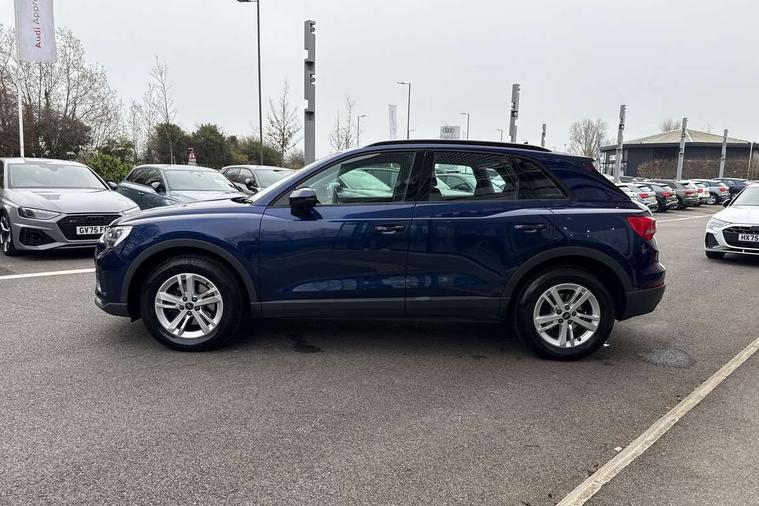 Amazon alexa Integration, Audi drive select, Audi lane departure warning, Audi Virtual Cockpit - 10.25" display, Bluetooth interface, Camera based traffic sign recognition, Legal emergency call, MMI Navigation Plus with high resolution 10.1 inch touchscreen colour display, Power operated tailgate, Progressive steering, Service interval indicator, Smartphone interface includes wireless Apple carplay/Android Auto, Start stop system with recuperation, Voice control system with natural language interaction, Standard suspension, 2 USB-C ports with charge and data functions, 6 passive loudspeakers, DAB digital radio module, Acoustic windscreen, Auto dimming frameless rear view mirror, Black roof rails, Body colour door mirrors, Diffuser in grained anthracite, Electrically folding, adjustable and heated door mirrors with integrated LED side indicators and kerb view function for passenger side, Exterior bumper with wheel arch trims and side sill trims in grained black matt, Front and rear electric windows, Grained radiator protective grille, Halogen rear lights, LED headlights with LED daytime running lights, Rain and light sensors, Rear side wing doors, Rear wiper, Third brake light, Variable front intermittent wipers, 12V socket in rear centre console, 3 seat bench in 2nd row, 3 spoke multi-function leather steering wheel, 40:20:40 folding with manual adjustment for 60:40 forwards/backwards position and backrest angle, Dual zone electronic climate control, Front and rear floor mats, Front and rear headrests, Front and rear roof module including reading lights, Front centre armrest, Glove compartment lighting, Height and reach adjustable steering wheel, ISOFIX child seat mounting for front passenger with airbag deactivation and outer rear seat including top tether attachment point for outer rear seats, Luggage compartment light, Lunar silver cloth headlining, Manual front seats with height adjustment, Single front passenger seat, Stainless steel luggage compartment sill finisher, Non smoking pack - Q3, 3x3 point rear seatbelts, 6 airbags - Driver, front passenger, curtain and side windows, Audi pre-sense front with pedestrain and cyclist recognition, Electrically operated child locks on rear doors, Electromechanical parking brake, Electronic stabilisation control including ABS, ASR and EDL, Front seatbelt reminder, Hill descent control, Hill hold assist, Pre sense basic, Seatbelt monitoring, Tyre pressure warning, Warning triangle and first aid kit, Anti theft alarm, Anti theft wheel bolts, Immobiliser, Remote central locking, Detail dashboard around MMI touch colour display in glass look, black with surround in aluminium look, Micrometallic silver inlay, 17" 5 twin spoke design alloy wheels,