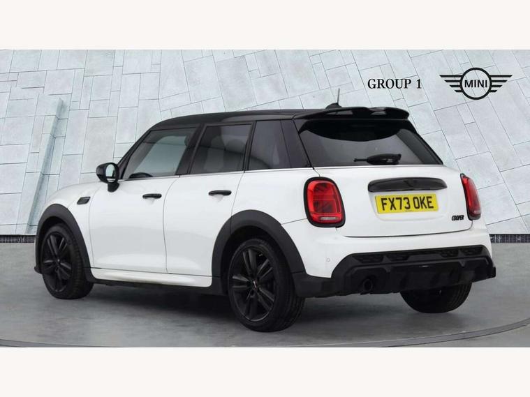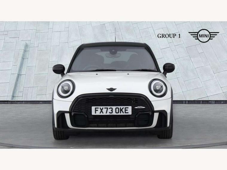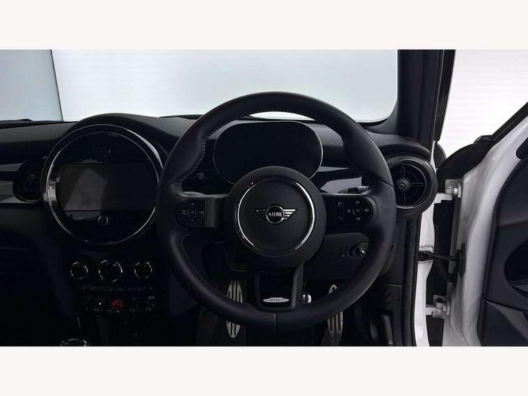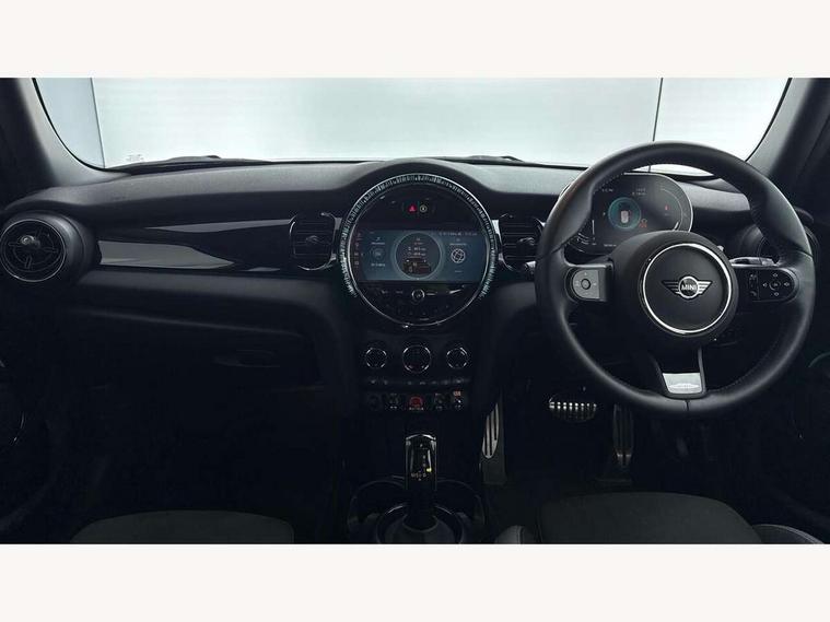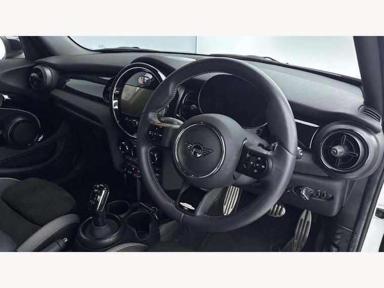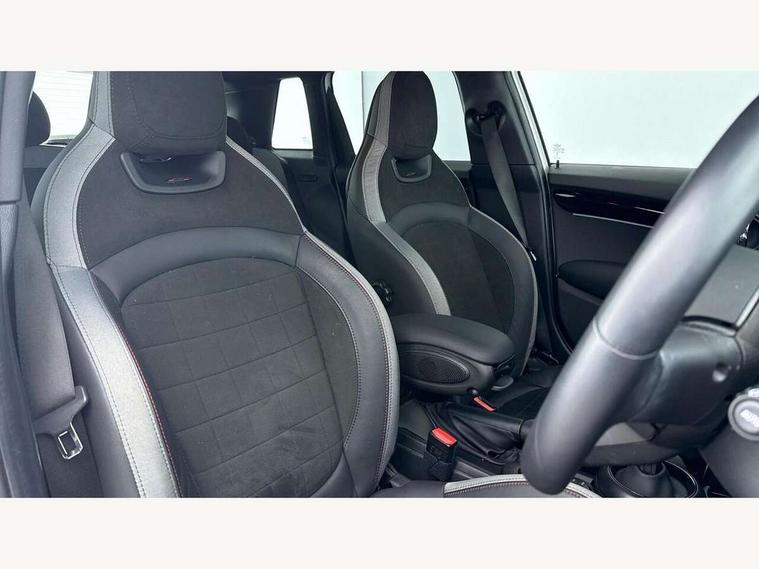 Apple CarPlay, Automatic start/stop function with brake energy recuperation, Compatible mobile phone bluetooth with audio streaming, Electro-mechanical speed dependant steering assistance, Flexible car sharing preparation, MINI Driving Modes - centre toggle switch to control driving setting (sport, mid and green), Mini E-call, MINI TeleServices, On board computer, Rear park distance control, Service interval indicator, Adaptive suspension, Double Vanos system, Fully variable valve control, Gear change indicator display, High precision injection, Performance Control, Steptronic transmission with double clutch, 8.8" touchscreen with LED ring, FM tuner and DAB digital radio, 3rd brake light, Automatic headlight activation switch, Body colour fuel filler cap, Chrome border high gloss black slats radiator grille, Dynamic brake lights, Electric front+rear windows, Exhaust tailpipe on left with chrome finisher, Heated rear window, Heated windscreen washer jets, JCW Aerodynamic kit - Front and rear bumpers with sporty JCW styling and part-painted side sills with MINI John Cooper Works door sill finishers, John Cooper Works rear spoiler, Metal door sill strips with MINI imprint, Model logo Cooper on right of tailgate, Rain sensor window wipers, Rear fog lights, Rear LED lights with union jack design, Rear side wing doors, Rear window wiper, Side scuttle panel with integrated indicator, Sun/heat protection glass, White indicator lenses, 12V Accessory socket in centre console, 3 seat bench in 2nd row, 4 lashing eyes in luggage compartment, 60/40 split folding rear seat, Anthracite headliner including grab handles and clothes hooks, Carbon black colour line - Knee roll and door armrest, Chrome interior highlights, Cupholders, Front and rear isofix with front passenger airbag deactivation, Front and rear velour floor mats, Glove compartment, Height and length steering column adjustment, Interior lighting with 12 different colours across the dashboard, underneath door bezel with illuminated laser-engraved design on central display, JCW Sport seats with integrated headrests, adjustable thigh support and John Cooper Works logo, Leatherette gearshift lever and handbrake gaiters, LED reading lights, vanity mirror lights, front foot well light and spotlight on front seats, Mechanical seat adjustment - forward/back & backrest for front seats and driver seat height adjust, Multifunction steering wheel, Single front passenger seat, Storage compartments in doors, Sunvisors with vanity mirrors, Walknappa leather steering wheel with grey seam and John Cooper Works badge on Piano Black lower steering wheel spoke, Piano black exterior pack - Mini Hatchback Cooper, 3 point seatbelts on all five seats, 6 Airbags - front, side, head and seat belt tensioners, Anti-lock braking system (ABS), Child locks on rear doors, DSC - Dynamic Stability Control, Front and rear disc brakes, Hill start assist, Single tone fanfare horn, Tyre pressure monitoring system, Alarm system with tilt sensor, monitoring doors, bonnet interior and tailgate, Electronic vehicle immobiliser, Start/stop toggle with keyless go, Piano black interior trim, Tool kit,