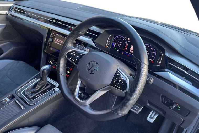 Adaptive cruise control (ACC) with speed limiter, front assist (reacting vehicles pedestrian and cyclists) and follow to stop, App connect including wireless Apple CarPlay, Camera for warning system, Digital cockpit with 10.25" high resolution TFT display screen with customisable menus and information, Driver alert system with fatigue detection, Driver profile selection including ECO function, Dynamic road sign display, eCall - Emergency call service for SOS calls to emergency response, Emergency assist, Hands free boot opening, Press and drive key, Progressive steering, Speedo and rev counter, electronic odometer, trip, service interval display and exterior temperature gauge, Tailgate, Travel assist - Lane keeping assist and traffic jam assist, Voice activation for telephone and navigation, Start/stop function with battery regeneration, External, USB type C data sockets with increased charging performance front (45 Watt), Premium USB cable in choice of either Apple or Android smartphone compatibility, Auto dimming interior rear view mirror, Automatic headlights, Body colour door handles, Body colour side skirt, Body coloured top and matt black lower door mirrors with integrated indicators, Chrome plated radiator grille inserts and light switch surrounds, Chrome side window surrounds, Dynamic headlight range control, Electric folding door mirror, adjustable, heated with front passenger exterior mirror lowering function, Front and rear electric windows, Front and rear stainless steel door sill protection, Front windscreen washers and wipers with 4x interval delay, Heat insulating side and rear windows, Heated rear windscreen, Heated windscreen washer jets, LED 3rd brake light, LED rear combination lamp with dynamic indicators, LED rear number plate lights, Panoramic sunroof with tilting and sliding including integrated roller blind, R Line design body coloured bumpers, Rain sensor, Rear fog lamp on one side and reversing lamp on both sides, Rear side wing doors, Rear tinted glass from B pillar backwards, approx 65% tinted, Rear windscreen washer and wiper with interval delay, Roof spoiler, Tailpipes behind rear bumper, 12V socket in front centre console, 12V socket on rear of front centre armrest, 3 rear head restraints, 3 seat bench in 2nd row, 30 colours options interior ambient lighting, 60:40 split folding rear seat backrests with centre armrest, Air care climatronic 3 Zone electronic air conditioning with automatic air recirculation, Black roof lining, Chrome trim on upper and lower air vents extending across cockpit, Driver and front passenger sunvisor with vanity mirror, Front + rear carpet mats, Front cupholders x 2, Front footwell illumination, Front sports comfort seats, Glovebox, Heated front seats, Height/reach adjust steering wheel, Isofix child seat preparation easy fit for two outer rear seats, Luggage compartment lighting, Removable luggage compartment cover, Single front passenger seat, Split folding front seat backrest with front centre armrest, Stainless steel pedals, Two LED front reading light, 3 rear three point seatbelts, ABS+EBD+Brake assist, Child locks on rear doors, Driver airbag and front passenger airbags with deactivation switch including driver knee airbags, Electronic parking brake, Electronic stability control (ESC) and Electromechanical brake booster, Front disc brakes, Front side airbags with curtain airbags, Hill start assist, Pro active occupant protection to detect critical situations with elevated accident potential from the front, Rear disc brakes, Three point height adjust front seatbelts + pretensioners, Two tone horn, Tyre pressure loss indicator, Warning buzzer for seatbelts if unfastened, Warning triangle, Alarm with interior protection with deactivation via infotainment system, Electronic engine immobiliser, Keyless entry system including start/stop button on centre console, Remote central locking, Aluminium decorative inserts, Chrome trim on lower doors in front and rear, Leatherette insert on door and side trim panel in foam film, Piano black decorative inserts in centre console,
