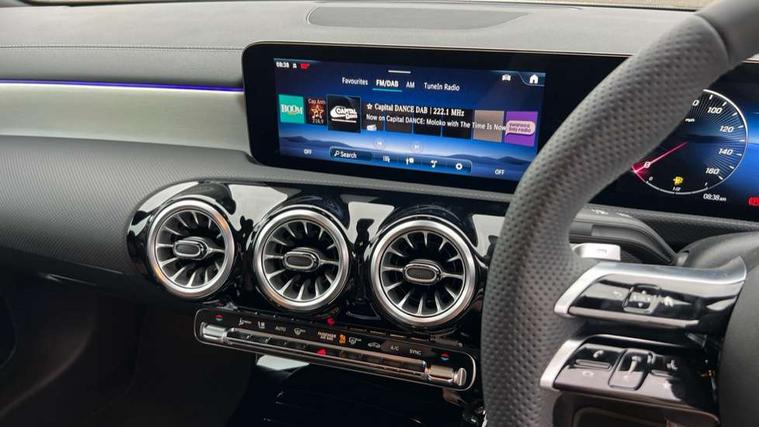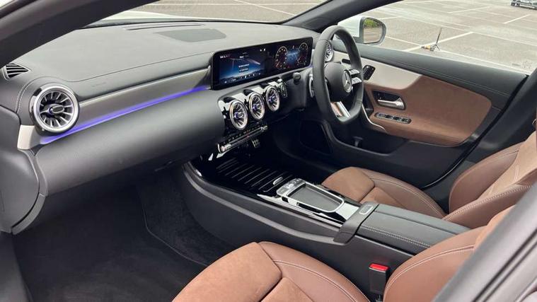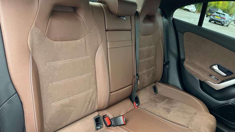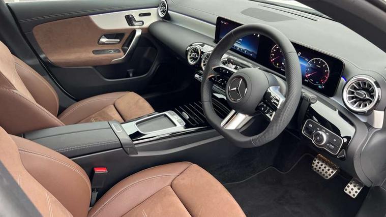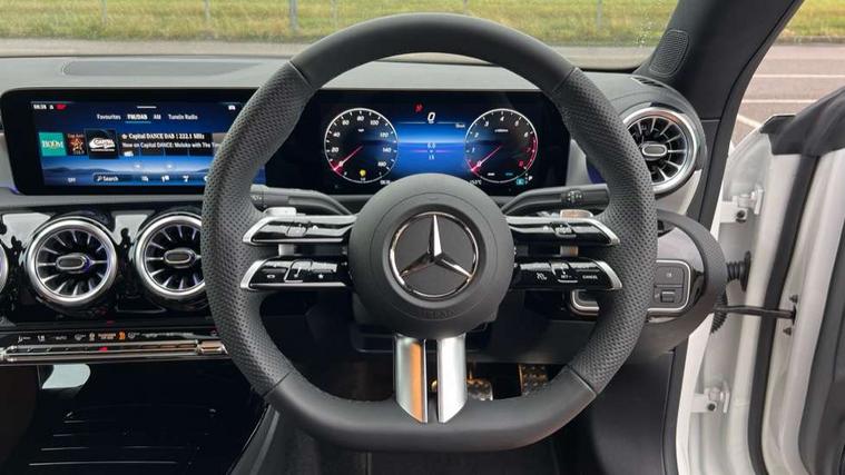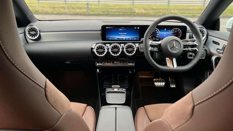 10.25 inch Instrument display with digital cockpit, 10.25 inch touchscreen central media display, Active lane keeping assist, Attention assist - Monitors steering behaviour and long journey fatigue, Blind spot assist, Bluetooth connection, Car wash mode, Cruise control with limiter, Direct steer system, DYNAMIC SELECT with a choice of driving modes (ECO, Comfort, Sport and Individual), ECO start/stop function, Fluid level warning indicator for fuel, oil, coolant and washer fluid, Hard-disk navigation, Hey Mercedes Voice activation, Lamp failure indicator, Mercedes me connect including emergency call system, accident recovery, breakdown and maintenance management, Mercedes me remote services, Outside temperature gauge, Owners manual in English, Pre-installation of private car share, Radio aerial integrated into front and rear windshields, Service indicator (ASSYST), Smartphone integration with Apple CarPlay and Android auto, Speed limit assist, Trip computer in multifunction display with current consumption indicator, Wireless charging in the front centre console, Comfort suspension with ride height lowering, Rear axle multi-link, DAB digital radio tuner, MBUX multimedia system, Mercedes Benz advanced sound system (225 W) with 10 speakers, 1 central speaker, speakers on doors, a tweeter on door, one sub woofer + boost amplifier, Pre installation for Mercedes Benz Link, Adaptive brake lights, AMG body styling with AMG front apron and rear apron and visible exhaust tailpipe in chrome trim elements, Body colour door handles, Electric windows, Electrically adjustable and heated door mirrors with integrated LED indicators, Exhaust system with 2 Visible tailpipe trim elements and rear apron with trim in chrome, Hand free access, Headlamp assist automatic headlamp activation, Heated glass rear windscreen + timer control, High level LED third brake light, Interior mirror with black reading lamps and frameless, LED high performance headlamps with integrated LED daytime running lights and adaptive highbeam assist, LED tail lamp, Privacy glass with dark tinting on rear side windows and rear window, Radiator grille with Mercedes-Benz pattern in chrome and central Mercedes star, single louvre in high-gloss black with chrome inserts, Rain sensing windscreen wipers with two sensitivity settings, Rear boot, Rear fog lamp, Rear side wing doors, Variable front intermittent wipers, 3 seat bench in 2nd row, 3 twin spoke flattened multifunction steering wheel in nappa leather - horizontal twin spoke in high gloss black, vertical twin spoke in silver chrome, 40:20:40 split folding rear seat backrests, Air conditioning - Two zone thermotronic luxury automatic climate control with display, Air vents with surround in silver chrome, Artico man-made leather/Microcut microfibre upholstery, Automatic child seat recognition sensor, Black roof lining, Brushed stainless steel sports pedals with rubber studs, Electrically adjustable front memory seats including 4 way lumbar support, Floor mats with stitched AMG lettering, Fluorescent jacket, Front centre armrest with stowage, Galvanished gear shift paddles in silver chrome, Interior lighting - 64 colour Ambient lighting, Luggage net on driver/front passenger seat backrest, Manually height and reach adjustable steering column, Rear armrest with two integral cup holders for drinks, Rear head restraints, Single front passenger seat, Sport seats with fixed head restraints, Stowage compartment in centre console with retractable cover, Sunvisors with illuminated vanity mirrors, Twin front cupholders, Two outer rear seat isofix and top tether child seat fixing points, Keyless go comfort pack - CLA, Light and sight pack - CLA, Mirror pack - CLA, Night package - CLA, Parking pack with reversing camera - CLA, Seat comfort pack - CLA, USB package plus - CLA, Winter pack - CLA, Active bonnet pedestrain safety measure which detects an impact and raises bonnet by 65mm, Active brake assist includes forward collision warning system with autonomous braking, Adaptive brake assist with hold function and hill start assist, Anti lock braking system (ABS) with brake assist, Bonnet with power domes, Brake calipers with Mercedes-Benz lettering, Brake pad wear warning indicator, Childproof locks manually operated for rear doors and electrically operated for rear power windows, Crash responsive emergency lighting, Crystal grey seat belts, Driver and front passenger head and sidebags, Driver and front passenger windowbags, Drivers knee airbag, Dual stage driver and front passenger airbags, Electric parking brake, Electronic stability programme with acceleration skid control, ESP curve dynamic assist, Exit warning, Front and rear seatbelt reminder, Front passenger seat occupancy sensor, Perforated front brake discs, Sports braking system, Three point rear seat belts, Tyre pressure monitoring system, Warning triangle and first aid kit, Alarm system with immobiliser and interior protection -Thatcham category 1, Guard 360 deg vehicle protection - tow away protection with visual, acoustic warning, interior monitoring, preinstallation for parking damage, Remote central locking and crash sensor with emergency opening function, Light aluminium with longitudinal grain interior trim, 19" AMG 5 twin spoke light alloy wheels painted in high gloss black with high sheen finish, Summer tyres, Tirefit tyre sealant kit,