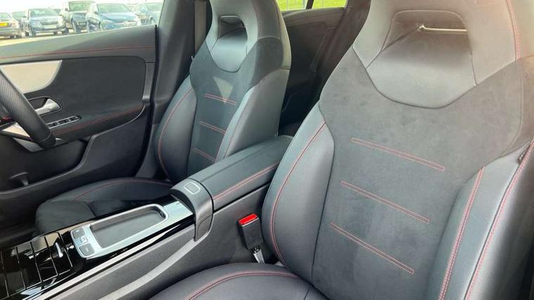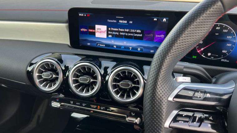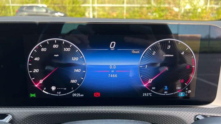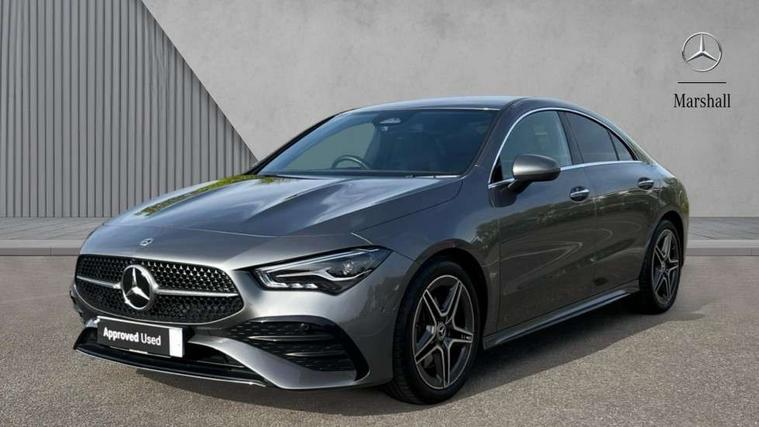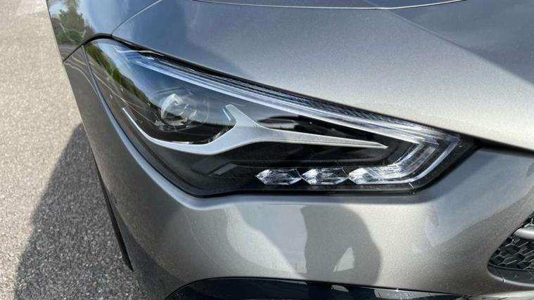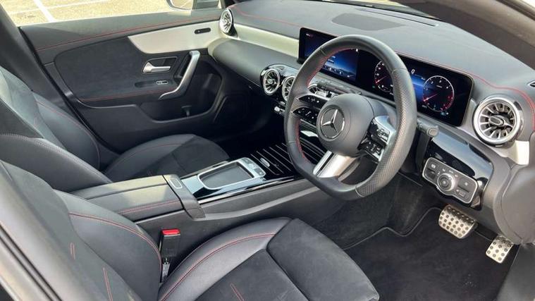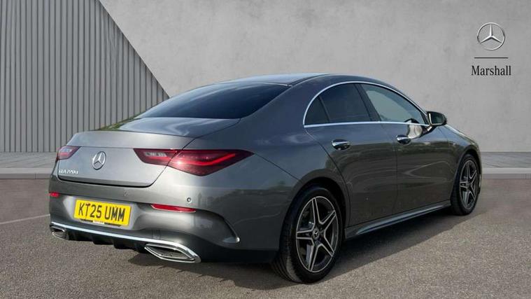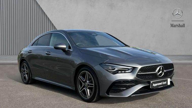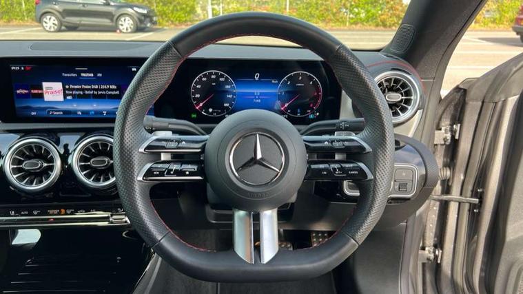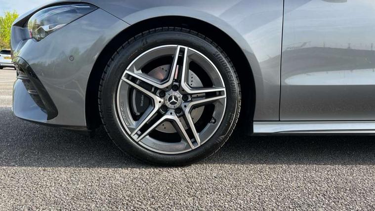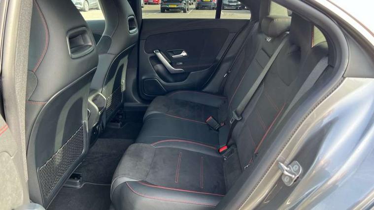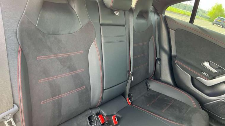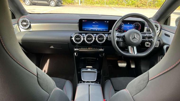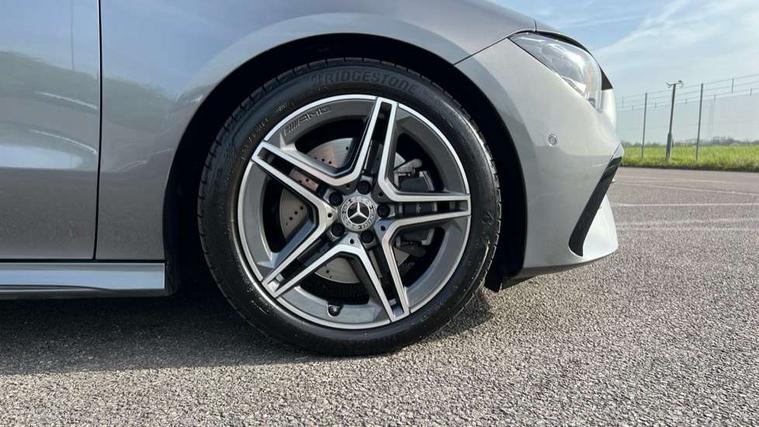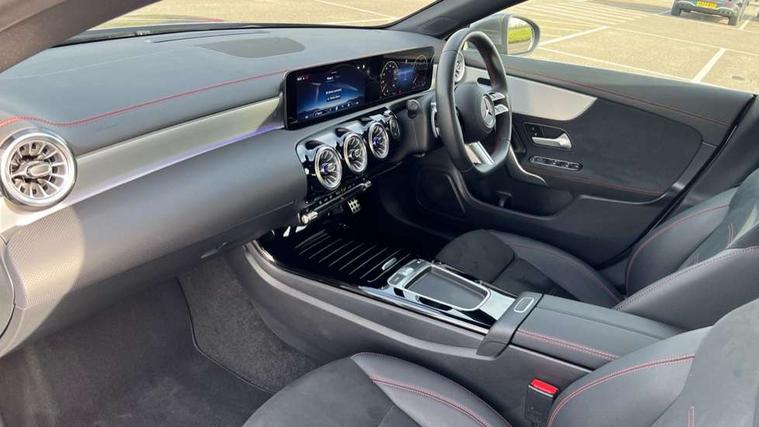 10.25 inch Instrument display with digital cockpit, 10.25 inch touchscreen central media display, Active lane keeping assist, Attention assist - Monitors steering behaviour and long journey fatigue, Blind spot assist, Bluetooth connection, Car wash mode, Cruise control with limiter, Direct steer system, DYNAMIC SELECT with a choice of driving modes (ECO, Comfort, Sport and Individual), ECO start/stop function, Fingerprint sensor, Fluid level warning indicator for fuel, oil, coolant and washer fluid, Hard-disk navigation, Hey Mercedes Voice activation, Lamp failure indicator, Mercedes me connect including emergency call system, accident recovery, breakdown and maintenance management, Mercedes me remote services, Outside temperature gauge, Owners manual in English, Pre-installation of private car share, Radio aerial integrated into front and rear windshields, Service indicator (ASSYST), Smartphone integration with Apple CarPlay and Android auto, Speed limit assist, Trip computer in multifunction display with current consumption indicator, Wireless charging in the front centre console, Comfort suspension with ride height lowering, Rear axle multi-link, DAB digital radio tuner, MBUX multimedia system, Mercedes Benz sound system (100 W) with 6 speakers, Pre installation for Mercedes Benz Link, Adaptive brake lights, AMG body styling with AMG front apron and rear apron and visible exhaust tailpipe in chrome trim elements, Body colour door handles, Electric windows, Electrically adjustable and heated door mirrors with integrated LED indicators, Exhaust system with 2 Visible tailpipe trim elements and rear apron with trim in chrome, Hand free access, Headlamp assist automatic headlamp activation, Heated glass rear windscreen + timer control, High gloss aluminium beltline strips, High level LED third brake light, Interior mirror with black reading lamps and frameless, LED high performance headlamps with integrated LED daytime running lights and adaptive highbeam assist, LED tail lamp, Privacy glass with dark tinting on rear side windows and rear window, Radiator grille with Mercedes-Benz pattern in chrome and central Mercedes star, single louvre in high-gloss black with chrome inserts, Rain sensing windscreen wipers with two sensitivity settings, Rear boot, Rear fog lamp, Rear side wing doors, Variable front intermittent wipers, Window line trim strip in high gloss aluminium, 3 seat bench in 2nd row, 3 twin spoke flattened multifunction steering wheel in nappa leather - horizontal twin spoke in high gloss black, vertical twin spoke in silver chrome, 4 way lumbar support, 40:20:40 split folding rear seat backrests, Air conditioning - One zone THERMATIC automatic climate control with automatically controlled air distribution, Air vents with surround in silver chrome, Artico man-made leather/Microcut microfibre upholstery, Automatic child seat recognition sensor, Black roof lining, Brushed stainless steel sports pedals with rubber studs, Floor mats with stitched AMG lettering, Fluorescent jacket, Front centre armrest with stowage, Galvanished gear shift paddles in silver chrome, Heated front seats, Interior lighting - 64 colour Ambient lighting, Luggage net on driver/front passenger seat backrest, Manually height and reach adjustable steering column, Rear head restraints, Single front passenger seat, Sport seats with fixed head restraints, Stowage compartment in centre console with retractable cover, Sunvisors with illuminated vanity mirrors, Twin front cupholders, Two outer rear seat isofix and top tether child seat fixing points, Keyless go comfort pack - CLA, Light and sight pack - CLA, Mirror pack - CLA, Parking pack with reversing camera - CLA, Seat comfort pack - CLA, USB package plus - CLA, Active bonnet pedestrain safety measure which detects an impact and raises bonnet by 65mm, Active brake assist includes forward collision warning system with autonomous braking, Adaptive brake assist with hold function and hill start assist, Anti lock braking system (ABS) with brake assist, Black seat belts, Bonnet with power domes, Brake calipers with Mercedes-Benz lettering, Brake pad wear warning indicator, Childproof locks manually operated for rear doors and electrically operated for rear power windows, Crash responsive emergency lighting, Driver and front passenger head and sidebags, Driver and front passenger windowbags, Drivers knee airbag, Dual stage driver and front passenger airbags, Electric parking brake, Electronic stability programme with acceleration skid control, ESP curve dynamic assist, Front and rear seatbelt reminder, Front passenger seat occupancy sensor, Perforated front brake discs, Sports braking system, Three point rear seat belts, Tyre pressure monitoring system, Warning triangle and first aid kit, Alarm system with immobiliser and interior protection -Thatcham category 1, Guard 360 deg vehicle protection - tow away protection with visual, acoustic warning, interior monitoring, preinstallation for parking damage, Remote central locking and crash sensor with emergency opening function, Light aluminium with longitudinal grain interior trim, 18" AMG 5 twin spoke light alloy wheels painted in termolite grey with high sheen finish, Summer tyres, Tirefit tyre sealant kit,