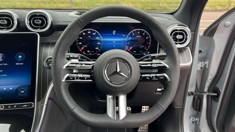 11.9" high resolution multimedia colour display, 12.3" Digital individually configurable instrument display, Acoustic presence indicator, Active lane keeping assist, Attention assist, Blind spot assist, Bluetooth interface for hands free telephone, Collision prevention assist plus, Direct steer speed sensitive steering, DYNAMIC SELECT with a choice of driving modes (ECO, Comfort, Sport and Individual), eCall emergency call system, ECO start/stop function, Fingerprint scanner, Fluorescent jacket for driver, Hard disc navigation, Head up Display, Instrument display in miles with English lettering, MBUX augmented reality for navigation, MBUX navigation premium, MBUX voice control activated by keywords "Hey Mercedes", Mercedes me connect, Multi function trip computer, Outside temperature display, Remote boot release, Remote services plus, Road sign recognition system, Service indicator (ASSYST), Smartphone integration, Status display for rear seat belts in instrument cluster, Tailgate, Traffic sign assist, Wireless charging system for mobile devices in the front, 48V Mild hybrid technology, 4MATIC permanent four wheel drive, 62 litre fuel tank, 9G TRONIC plus automatic transmission, Petrol Particulate Filter (PPF), Residual engine heat utilisation, Burmester 3D surround sound system, DAB digital radio tuner, MBUX extended functions, Pre installation for Mercedes Benz Link, Sound personalisation, Adaptive brake lights, Adaptive high beam assist plus, Aluminium look running boards with rubber studs, AMG bodystyling front apron, rear apron and side skirts, AMG Line exterior, Auto headlights, Black roof rails, Body colour bumpers, Body colour door mirrors, Digital light LED headlights, Electric panoramic glass sunroof, Electrically adjustable door mirrors, Front and rear electric windows, Headlight washers, Heat and noise insulating acoustic glass, Heat insulating dark tinted glass, Heated rear window, High level LED brake light, Integrated LED daytime running lights, LED indicator lights, LED rear fog lights, LED tail lamp, Motor way mode function and locator lighting, Radiator grille with Mercedes Benz pattern and integreated Mercedes star and louvre in dark grey matt with chrome inlay and black frame, Rain sensor windscreen wipers, Range adjustable headlights, Rear side wing doors, Rear wiper, Transparent Bonnet, Two chrome plated tailpipe trim elements, Variable front intermittent wipers, Welcome and follow-me home light functionality, Wheel arch liners in the vehicle colour, 3 seat bench in 2nd row, 40:20:40 split folding rear seats, Ambient lighting premium with projection of brand logo, AMG floor mats, AMG line interior, Artico man-made leather upholstery, Audio and onboard settings control on multifunction steering wheel, Automatic child seat recognition sensor, Black fabric roof lining, Comfort seats, Double cup holder in centre console, Easy-pack removable load compartment cover, Electrically height/reach adjustable steering column, Front centre armrest with stowage compartment, Front head restraints, Galvanised steering wheel gearshift paddles, Heated front seats, Heated steering wheel, Illuminated door sill panels with Mercedes Benz lettering, Illuminated glove compartment, Instrument panel and beltlines in ARTICO manmade leather in nappa look, Multicontour and climatised front seats, Multifunction sports steering wheel in nappa leather, Partition net, Rear centre headrest, Rear head restraints, Rear top tether child seat ISOFIX attachment, Single front passenger seat, Sports pedals with stainless steel surfaces and rubber studs, Sun visors, THERMATIC automatic climate control, Anti theft protection package - GLC, Boot comfort package - GLC, Easy tailgate pack - GLC, Exterior chrome package - GLC, Interior chrome package - GLC, Interior lighting pack - GLC, Keyless-Go comfort package - GLC, Memory pack - GLC, Mirror pack - GLC, Night package - GLC Urban Edition, Parking package with 360 degree camera - GLC, Stowage space package - GLC, USB Plus Pack - GLC, 3 rear 3 point seatbelts, Anti-lock braking system (ABS), ASR traction control, Automatic front passenger airbag deactivation, Black seat belts, Brake calipers with Mercedes-Benz lettering + perforated brake discs, Braking system with larger brake discs on the front axle, Child proof door locks, Dual-stage airbags - driver and front passenger, driver knee bag and window bags for driver, front passenger and rear passengers, Electronic parking brake, Electronic stability programme (ESP) with curve dynamic assist and cross wind assist, Front and rear seatbelt reminder, Front passenger seat occupancy sensor, Front seatbelt pretensioners, Hill start assist, Tyre pressure monitoring system, Warning triangle and first aid kit, Automatic door locking, Guard 360 degree vehicle protection plus, Interior protection/immobiliser, Remote central locking, Black open pore aluminium lines wood trim with centre console in black fine structure, 20" AMG multi spoke light alloy wheels in painted black with high sheen finish, Summer tyres, TIREFIT with tyre inflation compressor,