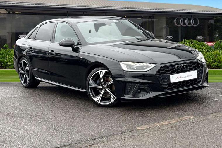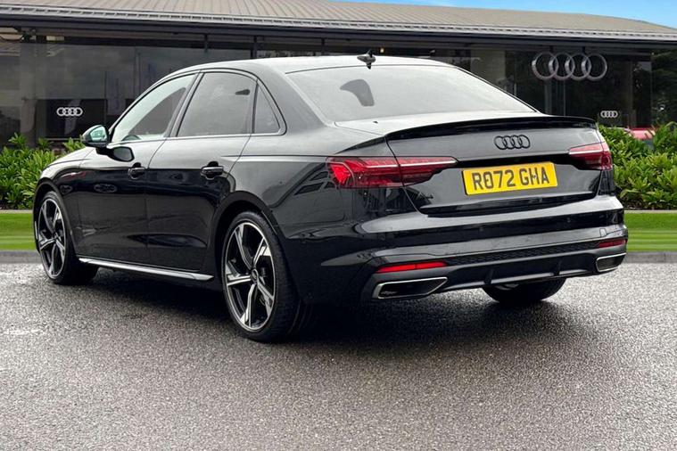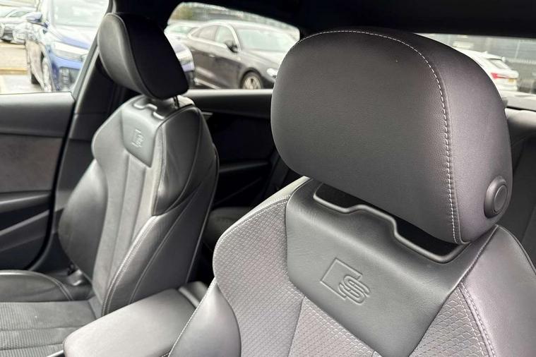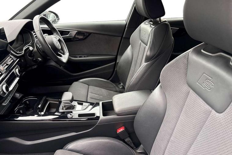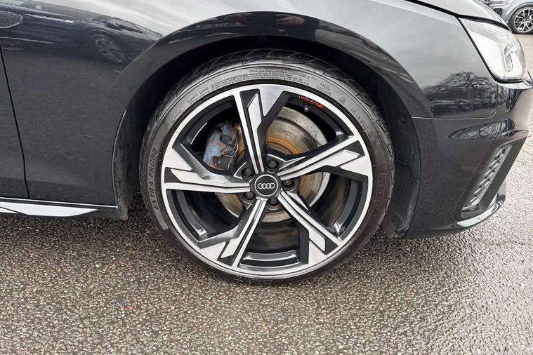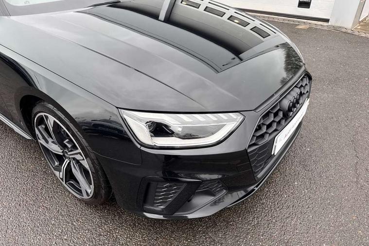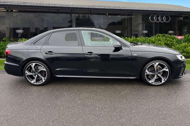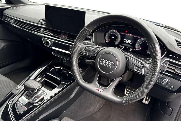 Audi connect safety and service (e-call), Audi connect with Amazon Alexa Integration, Audi drive select, Audi smartphone interface, Audi virtual cockpit, Automatic start-stop system with coasting functionality and efficiency programme, Bluetooth interface, Electric boot lid release, Electromechanical power steering, Email, calendar and text messages displayed via MMI, MMI Navigation plus with MMI touch includes 10.1" high resolution colour MMI display, 3D map, Voice control system, Sports suspension lowered by 23mm, 2 USB charging ports, 8 passive loudspeakers, DAB digital radio reception, Auto dimming rear view mirror, Black Audi rings and black badging (model name in black badging, no engine badging), Body colour door handles, Body colour front spoiler lip, Body colour side sill trim, Electrically folding auto dimming/adjustable/heated door mirrors with LED side indicators and kerb view function for passenger side, Front and rear bumpers with side skirts, Front wing badges, Grained matt black side air inlets with matt aluminium silver inlay, High beam assistant, High gloss black B pillar trims and triangular rear door trim, LED headlights with LED rear lights + dynamic rear indicators + headlight adjustment and high beam, turning light + LED daytime running lights, LED third brake light, Matt aluminium silver tailpipe trim, Privacy glass, Rain and light sensors, Rear boot, Rear diffuser in matt titanium black with trim strip in matt aluminium silver, Rear side wing doors, Variable intermittent front wash/wipe, Windscreen with acoustic glazing, 4 way electric lumbar support for driver and front passenger, 40/20/40 split folding 3 rear seat bench in 3 parts with rear centre armrest, Black cloth headlining, Black perforated leather gearknob, Contrast stitching on seats, steering wheel and gear lever gaiter, Deluxe 3 zone electronic climate control, Door sill trims with aluminium inlay, Front and rear head restraints, Front centre armrest, Heated front seats, Illuminated door sill trims with S logo, ISOFIX child seat mounting and top tether, Manual seat adjustment, Single front passenger seat, Stainless steel pedals and foot rest, Black styling pack - A4 Saloon, LED Interior light pack - A4/S4, 3 rear seatbelts, 6 airbags - Driver, front passenger, curtain and side windows, Electronic Stabilisation Control (ESC) including ABS, ASR and EDL, Hill hold assist, Multi collision brake assist, Pop-up bonnet for pedestrian protection, Pre sense city, Rear door child safety locks, Seatbelt monitoring, Warning triangle and first aid kit, Anti theft alarm, Anti theft wheel bolts, Central locking, Keyless Go, Piano black finish inlay, Tool kit, Tyre repair kit,