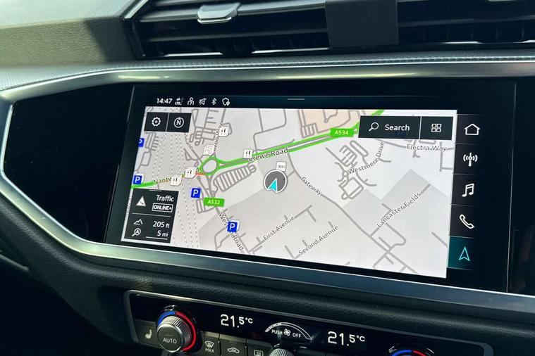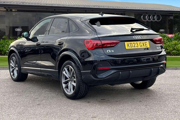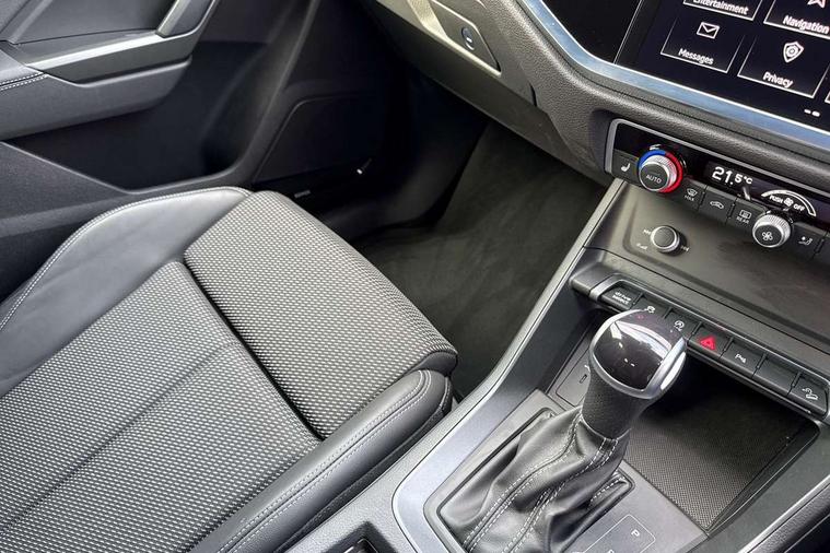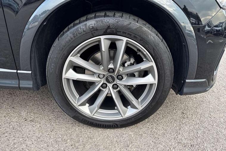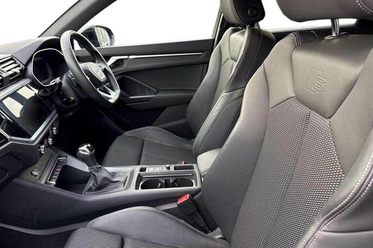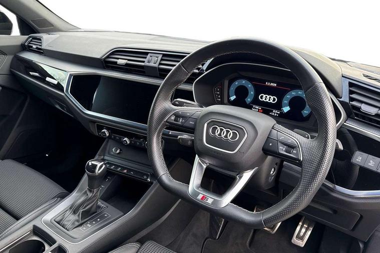 Audi drive select, Audi lane departure warning, Audi Virtual Cockpit - 10.25" display, Bluetooth interface, Camera based traffic sign recognition, Legal emergency call, MMI Navigation Plus with high resolution 10.1 inch touchscreen colour display, Power operated tailgate, Progressive steering, Service interval indicator, Smartphone interface includes wireless Apple carplay/Android Auto, Start stop system with recuperation, Voice control system with natural language interaction, Diesel particulate filter, Sports suspension, 2 USB-C ports with charge and data functions, 6 passive loudspeakers, DAB digital radio module, Acoustic windscreen, Auto dimming frameless rear view mirror, Diffuser grille in grained matt black, Diffuser trim in selenite silver, Electrically folding, adjustable and heated door mirrors with integrated LED side indicators and kerb view function for passenger side, Front and rear electric windows, Front fog lights, Front underbody protection in manhattan grey paint finish, High gloss black finish B and C pillars, LED Dynamic rear indicators, LED headlights with LED daytime running lights, LED rear lights, LED third brake light, Privacy glass dark tinted rear and rear-side windows (from B-pillar backwards), Rain and light sensors, Rear side wing doors, Rear underbody protection in matt black, Rear wiper, Variable front intermittent wipers, 12V socket in rear centre console, 3 seat bench in 2nd row, 40:20:40 folding with manual adjustment for 60:40 forwards/backwards position and backrest angle, Adjustable rear seat bench/backrest with centre armrest and cupholder, Black cloth headlining, Dual zone electronic climate control, Front and rear black floor mats with contrast stitching, Front and rear headrests, Front and rear roof module including reading lights, Front centre armrest, Glove compartment lighting, Height and reach adjustable steering wheel, Illuminated door sill trims with S logo, ISOFIX child seat mounting for front passenger with airbag deactivation and outer rear seat including top tether attachment point for outer rear seats, Luggage compartment light right in white, Luggage compartment sill protection in stainless steel, Manual front seats with height adjustment, Perforated leather gearknob, Single front passenger seat, Stainless steel pedals, Ambient lighting pack - Q3, Black styling pack - Q3, Non smoking pack - Q3, 3x3 point rear seatbelts, 6 airbags - Driver, front passenger, curtain and side windows, Audi pre-sense front with pedestrain and cyclist recognition, Electrically operated child locks on rear doors, Electromechanical parking brake, Electronic stabilisation control including ABS, ASR and EDL, Front seatbelt reminder, Hill descent control, Hill hold assist, Pre sense basic, Seatbelt monitoring, Tyre pressure warning, Warning triangle and first aid kit, Anti theft alarm, Anti theft wheel bolts, Immobiliser, Remote central locking, Aluminium look interior elements, Black dashboard, Detail dashboard around MMI touch colour display in glass look, black with surround in aluminium look, Leatherette door armrest, Piano black inlay, 19" 5 twin arm design diamond cut audi sport alloy wheels in matt grey look,