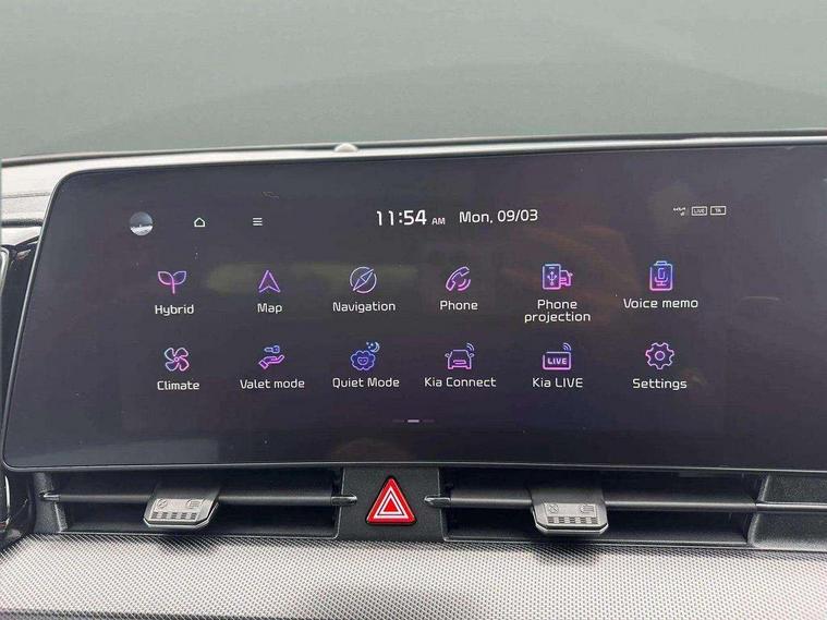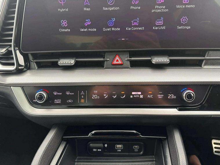 12.3" Display with navigation, 12.3" supervision colour cluster display, 360 degree around view monitor, Apple car play/Android Auto with voice control, Blind spot collision avoidance assist, Blind spot view monitor, Drive mode selector, E-call, Forward collision avoidance assist (FCA) - city/pedestrian/cyclist/junction covering, Front and rear parking sensors, Highway Driving Assist (HDA), Intelligent speed limit assist, Kia Connect (UVO), Lane Following Assist (LFA), Lane keep assist, Low washer fluid warning, Parking collision avoidance assist (PCA), Remote smart parking assist, Reversing camera system integrated into centre fascia screen, Smart cruise control with stop and go functionality, Smart power tailgate, Speed sensitive power steering, Trip computer, Windscreen washer level indicator, Wireless Smartphone charger, Intelligent Stop and Go, Terrain mode select (Mud, Snow, Sand), Bluetooth audio streaming, DAB Radio with MP3, Harman Kardon premium sound system, Rear USB port, Steering wheel mounted audio controls, USB C type charging ports on centre console, USB C type charging ports on side of front seats, USB port for connection of a media device, All round electric windows with drivers and front passenger auto up/down function, Automatic headlight control system, Automatic window defogger, Backlite glass heated with timer, Body colour and black bumper with silver accents, Body colour exterior door handles, Body colour radiator upper garnish and door garnish, Dual LED adaptive headlamps, Electric panoramic glass sunroof (Electric one touch with safety function), Electrically adjustable/heated/folding door mirrors with LED indicators, Front and rear chrome skid plates, Gloss black door mirrors, Gloss black radiator grille, Gloss black side sill and wheel arch body mouldings, Glossy black roof rack, High beam assist, Interior electrochromic mirror, LED daytime running lights, LED front fog lamps, LED High mounted stop light, LED rear combination lamp, Rain sensing wipers with aero blades, Rear fog lamp, Rear privacy glass, Rear side wing doors, Rear spoiler, Rear wiper, Satin finished beltline, Silver coloured inserts to bumpers, Tinted rear glass, Trailer stability assist, 10 way driver/8 way passenger electrically power adjustable seats, 12V power socket in front centre fascia and luggage compartment, 3 seat bench in 2nd row, 3 x passenger assist grips, 40/20/40 split folding rear seat, All-round height adjustable headrests, Ambient lighting, Black headlining, Centre console storage box, Cupholders in rear armrest, D-Shaped sports leather steering wheel and perforated inserts with GT-Line logo, Door courtesy lamps, Drink holder at centre armrest, Driver and front passenger side sunvisors with illuminated vanity mirrors, Driver seat memory function, Drivers seat power lumbar support, Front and rear door storage, Front seat and rear pockets, Front/rear centre armrests, Gear shift indicator, Glovebox illumination, Heated front and outer rear seats, Heated steering wheel, Interior door lock/unlock function, ISOFIX Child seat top tethers and anchor fixings outer rear seats, LED interior personal lamp, LED lighting in overhead console, Luggage area LED light, Luggage area load cover, Luggage net with hooks, Metal paint interior door handles, Paddle shift controls, Rear cabin light, Rear coat hooks, Single front passenger seat, Sports pedals, Suede leather upholstery, Three zone climate control, Tilt/telescopic adjustable steering wheel, Ventilated front seats, Ventilation ducts to rear compartment, Active front headrests, All round 3-point seatbelts, Anti-lock braking system (ABS), Dual front side airbags, Dual horn, Electronic parking brake, Electronic stability control with downhill brake control, Front passenger airbag cut-off switch, Front seatbelt pretensioners + load limiters, Height adjustable front seatbelts, Hill start assist control (HAC), Impact sensing auto door unlocking, Multi collision brake assist, Rear door child safety locks, Rear seat alert system, Traction control, Twin curtain airbags, Twin front airbags, Tyre pressure monitoring system, Advanced anti-theft system including immobiliser and alarm, Door deadlocks, Engine Start/Stop Button with Smart Entry System, Locking wheel nuts, Speed sensitive auto door locking, Visible vehicle identification number, Aluminium pattern finish centre fascia and door garnish, 18" GT-Line alloy wheels, Michelin tyres, Tyre mobility kit,