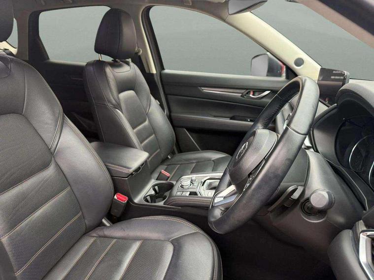 10.25" display with Mazda Connect infotainment, 7" colour TFT display, Apple car play/Android Auto, Blind spot monitoring with rear cross traffic alert, Bluetooth connectivity with voice control, Collision prevention assist, Connected services, Cruising Traffic Support, Drive mode selector, Electric power steering, Emergency stop signalling system, Engine start/stop button, Forward collision warning, Front and rear parking sensors, Integrated navigation system, Intelligent speed assist, Lane departure warning system, Lane keep assist, Qi wireless phone charging, Radar cruise control with Stop and Go, Reversing camera, Service indicator, Traffic sign recognition (TSR), Trip computer, Windscreen projected colour active driving display (HUD) with memory, i-stop, 2 USB sockets in rear, 2x USB sockets in front, AM/FM radio, Bluetooth audio streaming, Bose premium sound system with 10 speakers, DAB Digital radio, Multimedia Commander including separate volume dial, Steering wheel mounted audio controls, Adaptive front lighting system, Auto dimming rear view mirror, Automatic headlights, Black inlay dashboard panel, Body colour door mirrors, Body colour roof spoiler, Body coloured front and rear black lower bumper mouldings, Bright finish signature wing, Coming/leaving home lighting function, Door mirror integrated indicators, Dual chrome tailpipes, Dusk sensitive headlamps, Electric front/rear windows with one touch auto up/down, Front grille in gloss black finish, Gloss black B and C pillars garnish, High beam assist, Intermittent rear wash/wipe, LED auto levelling, LED daytime running lights, LED front fog lights, LED Headlights, LED third brake light, Power folding and heated door mirrors, Power tilt/slide sunroof, Privacy glass (rear side windows only), Rain sensing front wipers, Rear side wing doors, Satin black side mouldings, Scuff plates, Shark fin antenna, Signature LED rear combination lights, Vinyl with wood grain metal inlay door trim panel, Windscreen wiper de-icer, 12v electrical power outlet, 3 seat bench in 2nd row, 3 stage heated front seats, 40:20:40 Karakuri fold-flat seat system, 6 way electric adjustable passenger seat, 8 way electric driver seat with lumbar support + memory, Cargo room flat floor board with waterproof undertray, Driver seat power slide, recline and height adjustment, Driver, Front passenger and two rear grab handles with coat hooks, Driver/passenger front seatback pockets, Driver/passenger sunvisors + illuminated vanity mirrors (drivers with ticket holder), Dual zone climate control, Folding centre armrest with 2 cup holders, Front and rear door pockets, Front centre storage with two cupholders, Front passenger seat power slide, recline and height adjustment, Heated steering wheel, Humidity sensor, Illuminated glovebox, Interior dome light with integral spotlight, ISOFIX child seat anchorage points attached on outer rear seats, Karakuri tonneau cover, Leather upholstery, Leather wrapped steering wheel and gear knob, Light roof lining, Luggage compartment LED lighting, Luggage compartment power outlet, Paddle shifts, Rear air vents, Rear headrests, Rear seat recline, Roof mounted sunglasses holder, Single front passenger seat, Three height adjustable head restraints, Tilt/height adjustable steering wheel, White interior LED illumination lighting, 3 point front seatbelts with pre-tensioners, 3 rear 3 point seatbelts, ABS, Advanced Smart City Brake Support - SCBS, Child locks on rear doors, Driver and front passenger side airbags, DSTC-Dynamic Stability and Traction Control, Dual front airbags, Electronic brake force distribution, Electronic parking brake with auto hold, ESP, Front and rear curtain airbags, Front passenger airbag deactivation, G-Vectoring control, Hill hold assist, Seatbelt reminder front and rear, Single stage passenger airbags, Smart brake support with forward obstruction warning, Tyre pressure monitoring system, Automatic door locking when moving off, Deadlock, Immobiliser, Power door locks, Remote central locking, Smart keyless entry, Thatcham Cat.1 alarm, 19" diamond cut black alloy wheels, Tyre repair kit,