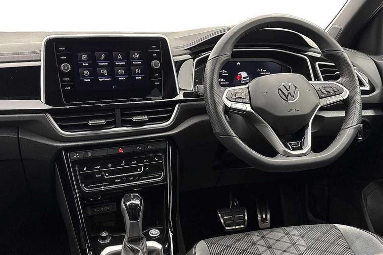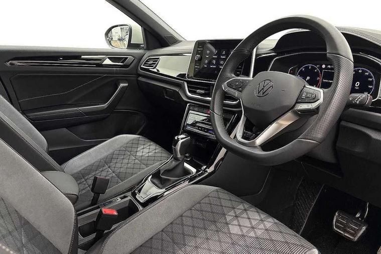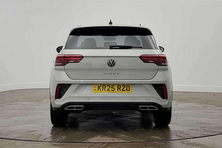 10.25" Digital cockpit pro, Advanced driver attention and drowsiness monitor, Dynamic road sign display, Emergency call service, Lane keeping system Lane Assist, Mobile phone interface, Modified key software - reduce switch off time for key status change to Long no motion, Online services, Park assist including front and rear parking sensors, Service interval indicator, Tailgate/trunk lid release from outside, Think blue trainer driver tips and journey analysis, Warning sound and light for front seatbelts unfastened, Wireless app connect, Battery regeneration during braking, Start/stop function with battery regeneration, DAB Digital radio, Diversity antenna for FM reception, Front and rear 6 speakers, Music playback - MP3, WMA and AAC files, Premium USB cable in choice of either Apple or Android smartphone compatibility, SD card slot, Simultaneous pairing of 2 compatible mobile devices, Title and cover art display, We Connect and We Connect Plus functionality, Auto dimming interior rear view mirror, Automatic hazard lights activation under emergency braking, Automatic headlight control with LED separate daytime running lights with coming/leaving home function, Body coloured exterior mirror housings and door handles, Electrically adjustable and heated door mirrors, Extended roof spoiler, Exterior mirrors aspherical on driver side, convex on front passenger side, External USB type C socket and charging sockets, Front windscreen wiper with intermittent wipe and 4 position delay, Heated rear window, LED 3rd brake light, LED rear combination lamps, LED rear number plate lights, Power windows with comfort operation and circuit breaker, Privacy glass for rear side windows and rear window, R-Line design body coloured bumpers, Rain sensor, Rear exhaust tailpipe, Rear fog light on one side and reversing lights on both sides, Rear side wing doors, Rear wash/wipe with intermittent wipe setting, Remote electrically foldable door mirrors, puddle lights and reverse activated passenger's door mirror, 12V power socket in centre console, 3 rear head restraints, 3 seat bench in 2nd row, 4 load lashing points in luggage compartment, Air care climatronic air conditoning system with active combination filter and 2-zone temperature control, Black roof lining, Chrome plated decorative trims, Chrome plated radiator grille inserts, air vent surrounds and light switch surrounds, Door and side trim panel with leatherette insert, Front + rear carpet mats, Front centre armrest, Front cupholders x 2, Front footwell illumination, Front reading light, Front scuff plates with R Line logo, Front seat back storage pockets, Glove compartment door with light, Instrument lighting, white adjustable panel illumination, Interior ambient lighting and surround lighting, Interior light delay, Isofix child seat preparation, Leather gearshift handle, Load-through provision with cup holder when folded down ('Unsplit rear seat bench, split folding backrest, with centre armrest), Luggage compartment lighting, Single front passenger seat, Stainless steel pedals, Storage compartment in left and right luggage area, Storage compartment in rear doors, Storage compartments in driver and front passenger doors, Sunvisors with illuminated vanity mirrors, Variable boot floor, height adjustable and removable, Driver assistance pack without proactive passenger protection - T-Roc, 3 point height adj front seatbelts + pretensioners, 3 point seatbelts in outer rear with ECE label, ABS, Child locks on rear doors, City emergency braking and pedestrian monitoring, Driver and front passenger airbag with front passenger airbag deactivation, Driver and front passenger safety-optimised head restraints, Drivers seatbelt reminder, Electronic parking brake, Electronic Stability Control (ESC) inc EDL (Electronic Differential Lock) and ASR (Traction Control), Front and rear passengers curtain airbag system including front side airbags, Hill start assist, Predictive pedestrian protection, Rear disc brakes, Two tone horn, Tyre pressure loss indicator, Volkswagen roadside assistance, Piano black decorative inserts in dashboard and front door trim panels, Trims for alloy wheels,