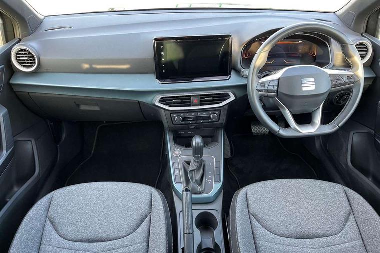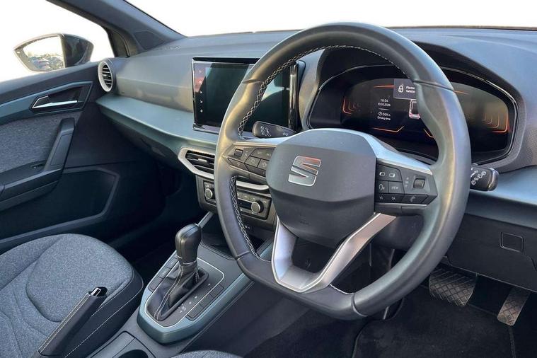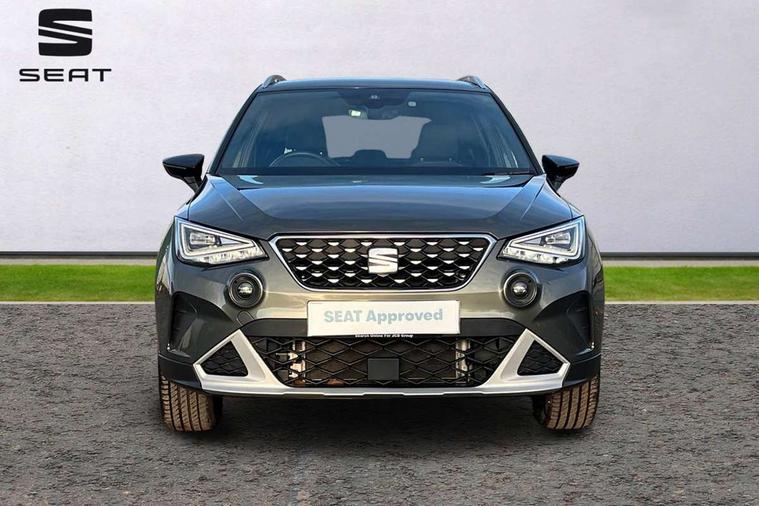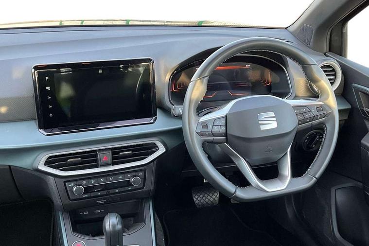 'Lights On' Reminder warning buzzer, 8" Digital cockpit, Digital clock, E-call, Electric speed sensitive power steering, Full Link Smartphone Integration with Mirror Link, Apple Car Play, Google Android Auto with USB Type C cable for Apple and Android compatibility, Lane keeping system, Low fuel warning light, Outside temperature display, Rear parking sensor, RPM counter, Seat connect with safety, service, remote and online, Trip computer, Wireless phone charger, 9.2" colour touchscreen with navigation system, voice control and USB port (type c), Bluetooth interface for hands free and audio streaming, DAB digital radio and AM/FM radio, Steering wheel mounted audio controls, Anti theft roof antenna, Auto dimming interior rear view mirror, Automatic activation of hazard warning lights, Body coloured bumpers, Body coloured door handle inserts, Chrome roof rails and window surrounds, Electric front/rear windows, Electrically adjustable, heated and folding door mirrors, Front fog lights with cornering function and rear fog light, FULL LED automatic headlights with dynamic headlight range control, coming and leaving home, LED daytime running lights, Hidden exhaust pipe, LED rear tail lights and licence plate lights, Protective side mouldings, Rain sensing wipers, Rear side wing doors, Rear spoiler, Rear window wash/wipe, Roof colour door mirrors, Third brake light, Visible VIN plate, Windshield wiper with intermittent control and potentiometer, 2 cupholders, 3 seat bench in 2nd row, 60/40 split folding rear seat, Aircare filter, Black interior roof, Cloth upholstery, Double boot floor, Driver sunvisor with covered mirror + card holder, Dual zone climate control, Flat bottomed leather steering wheel/gear knob/handbrake, Front courtesy light with front reading lights, Front seat back storage pockets, Gear shift indicator, Height adjustable front seats, Height/reach adjustable steering column, Illuminated boot, Instrument lighting with brightness control, Interior ambient lighting, Interior light in footwell, central console and door panel, ISOFIX points in outer rear seats with top tether anchorage points, Leather steering wheel/gear knob/handbrake, Passenger sunvisor with vanity mirror, Single front passenger seat, Storage net on centre console, Two front and three rear height adjustable headrests, Interior chrome pack - Arona, Safety and driving pack (M) - Arona, Storage pack - Arona, 3 point seatbelts on all rear seats, ABS, Active front headrests, Child locks on rear doors, Driver and front passenger airbags with front passenger airbag de activation, front side and curtain airbags, Electronic stability control, Emergency Brake Assist (EBA) and front assist, Front and rear seatbelt reminder, Hill hold control, Multi-Collision braking, Tiredness recognition system, Traction control, Tyre pressure monitoring system, Alarm with back-up horn, Electronic engine immobiliser, KESSY Keyless entry and go, Locking wheel bolts, Remote central locking + deadlocks, Tow away protection, Titan black dashboard, 17" Dynamic alloy wheels,