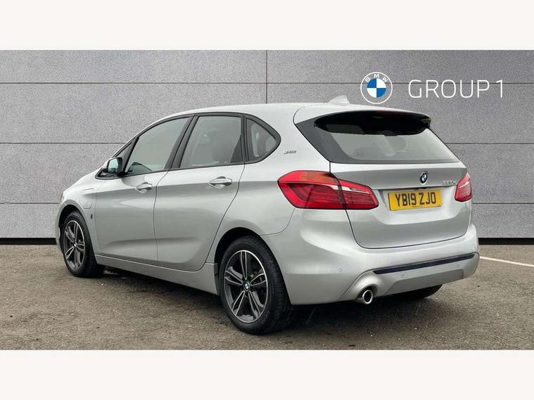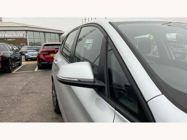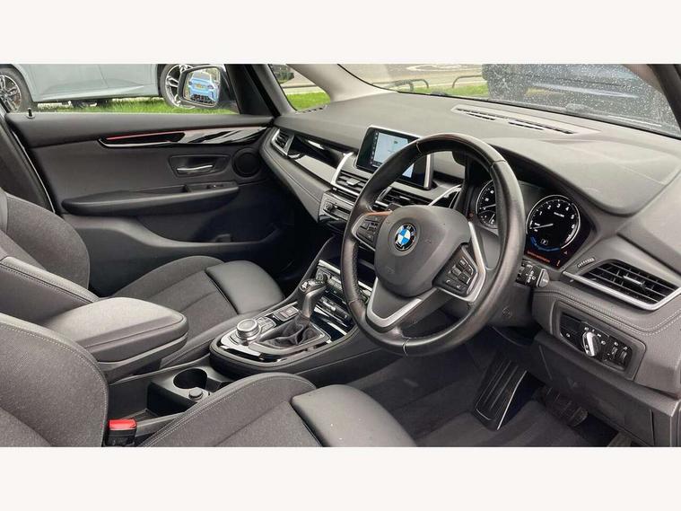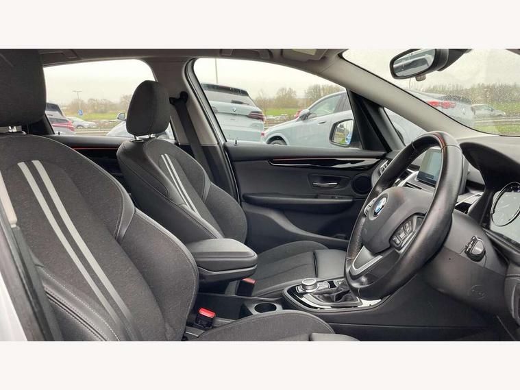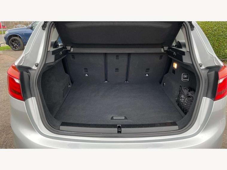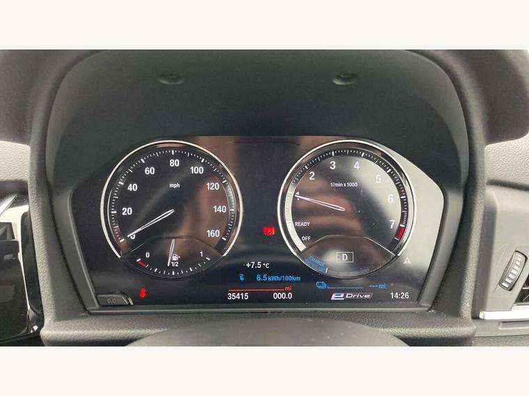 Active Guard incl speed limiting and lane departure functions with auto steering, and front collision warning with brake intervention, Attentiveness assist, Automatic tailgate operation, BMW Online services, BMW Teleservices, Brake pad wear indicator in front and rear, Check Control warning system for monitoring of lights and door/luggage compartment open warning, Connected eDrive Services, eDrive button activates auto eDrive, max eDrive and save battery modes, eDrive specific displays in instrument cluster and CID, Instrument cluster with speedometer with miles per hour read out, tachometer and fuel gauge, Lights on warning by audio warning signal when ignition is switched off, On board computer - average speed+fuel consumption, service interval, clock/date, odometer/trip meter, outside temperature display and ice warning, Optimum shift indicator, Personal Profile - automatic lock when driving away selectable, Real time traffic information, Service interval indicator, Servotronic variable electric power steering (EPS), Speed limiter, 2.4kW AC charging with 5m cable, Battery pre-conditioning, Drive performance control with ECO PRO comfort + sport mode, Electronic differential lock, Intervention on the front axle when DSC deactivated, Lithium-ion high voltage battery (7.7 kWh) fitted under rear seats, 2 USB sockets in rear, BMW professional radio/CD/MP3, DAB Digital radio, BMW i badges on front wings, Body colour - front and rear bumpers, door handles, mirror caps, roof mouldings, Clear lenses direction indicator lights, Direction indicator side lights integrated exterior mirrors, Dynamic brake lights, eDrive designation on C Pillar, Electric windows - front and rear, with open/close fingertip control, anti-trap facility and comfort closing, Electrically adjustable door mirrors with aspheric on driver side, convex on passenger side with integrated indicators, Exclusive front door sill finishers with eDrive designation, Follow me home headlights, Front air inlet with high gloss black finish, Green tinted heat protection glazing, Halogen headlights, Headlight beam throw control, High level third brake light, Kidney grille with 10 extra wide high gloss black fronted vertical slats, LED daytime running lights, Lightweight engineering, Rain sensor including auto headlights activation, Rear bumper with high gloss black finish, Rear fog lights, Rear window aerial, Rear window wiper integrated under roof spoiler, Reversing light in rear light cluster, Shark fin antenna, Single chrome exhaust tailpipe, Visible VIN plate, Welcome lighting, Automatic two zone climate control air conditioning, Cabin pre-conditioning via iDrive or BMW i Remote App, Central locking switches for door, fuel filler cap and luggage compartment, Child seat ISOFIX attachment for two outer rear seats and front passenger seat with anchorage points, eDrive badging on engine cover and gear selector, Four grab handles integrated in roof lining, Front and rear side armrest integrated into door trim, Front armrest, Front head restraints, Front sports seats with electric side bolster adjustment, Glovebox with light, Illuminated charging socket with visual display of charge status, Interior lighting, front centre over interior mirror and rear centre automatic interior light activation when door is opened, LED ambient lighting in door trim, Luggage compartment access via BMW roundel, Luggage compartment lighting, Manual 40:20:40 split folding rear seat with removal of 60:40 sliding bench, Multi-function controls for steering wheel, Rear centre armrest, Steering wheel column manual adjustment, Sunvisors with vanity mirrors and ticket pocket, Three rear headrests, Three spoke sport leather steering wheel, Two cupholders, Velour floor mats, Extended storage pack - 2 Series Active/Gran Tourer, 3 point seatbelts on all seats, front pyrotechnic belt tensioners, stopper and belt force limiters, rear coded belt buckles, Airbag - Front driver and passenger, front and rear head, front side, curtain head protection, manual deactivation of front passenger airbag possible, Anti lock braking system (ABS) with brake assist, Battery safety cut-off, BMW emergency call, Brake drying, Brake energy regeneration, Braking lock, Braking readiness, Child proof locking system in rear door, Crash Sensor - activates hazard/interior lighting + unlocks doors, Dynamic stability control + (DSC+), Dynamic Traction Control - DTC, Electrically operated hand brake, Front ventilated disc brakes, Hill start assist, Rear disc brakes, Seat belt security check for driver and front passenger, Seatbelt warning, Side impact protection, Twin horns, Tyre pressure monitoring system, Warning triangle and first aid kit, Locking wheel bolts, Remote control with integrated key with silver highlight, Thatcham 1 alarm system with remote control and engine immobiliser, Contrast stitching on instrument panel, Reduced rolling resistance tyres,