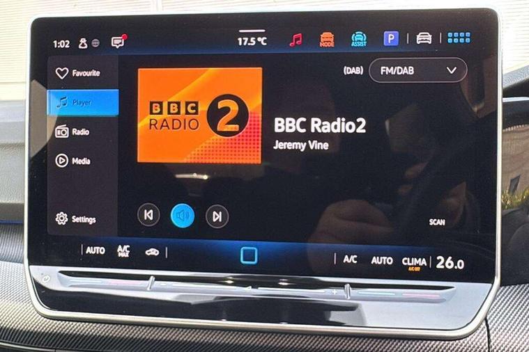 Activated carbon canister, Adaptive cruise control (ACC), Advanced driver attention and drowsiness monitor, Dynamic road sign display, Dynamic steering, E-Sim card for online connectivity, eCall emergency call system, Multi-color Digital cockpit pro, selection of different info profile possible, Multifunction front facing camera for distance control, Navigation system, Oncoming vehicle braking when turning including swerve support, Preparation for light assist system, Speed limiter, Speedo, rev counter, electronic odometer, trip, service interval display, exterior temperature and fuel gauge, Traffic jam assist, Voice enhancer and voice control, Warning signal and warning light for front and rear seatbelts not fastened, We connect plus preparation, We connect preparation, Wireless app connect, Diesel particulate filter, Hybrid propulsion system, Start-stop system with battery regeneration (recuperation - energy recovery during braking), XDS electronic differential lock for improved traction and handling, 2 USB C ports in front, 2 USB charging sockets on the centre console in the rear charging capacity upto 45W, Comfort telephony + wireless charging, without wireless aerial connection, Digital radio reception (DAB), Diversity antenna for FM reception, Gaming platform via car app, Infotainment system with 12.9" display, Mobile phone interface with inductive charging feature, 3rd brake light, Auto headlights, Automatic headlamp activation with Coming home and Leaving home feature, Body colored bumpers in R-Line style, Body colour door handles, Exterior ambient lighting with illuminated door handles, Exterior mirrors convex on the left and aspherical on the right, Front and rear electric windows, Heat insulating windshield made of laminated glass, LED daytime running lights, Rear exhaust tailpipe, Rear fog light on one side and reversing lights on both sides, Rear side wing doors, Rear windscreen washer and wiper with interval delay, Remote electrically foldable door mirrors, puddle lights and reverse activated passenger's door mirror, Welcome light with surround lighting, 12V socket in front centre console, 12V socket in luggage compartment, 3 rear head restraints, 3 seat bench in 2nd row, Ambient lighting with 30 colour including LED light unit in front footwell with selectable light colour, Brushed stainless steel pedals, Carpet mats, front and rear, Chrome plated radiator grille inserts, air vent surrounds and light switch surrounds, Front centre armrest, Integrated front head restraints, ISOFIX anchors for child seats on outer rear bench seats and on front passanger seat compatible for i-Size, Luggage compartment lighting, Plastic gear knob, Premium sports seats in front, Rear cupholder and loadthough, Single front passenger seat, Soul black instrument panel, Split folding backrest with centre armrest and unsplit rear seat bench, Storm grey roof lining, Sun visors with illuminated vanity mirrors, 3 point height adj front seatbelts + pretensioners, 3 rear three point seatbelts, ABS, Autonomous emergency braking front assist with pedestrian and cyclist monitoring, Child locks on rear doors, Driver and front passenger airbag with front passenger airbag deactivation, Electronic parking brake with auto hold, ESC (Electronic Stability Control), Extended pedestrian protection measures, Hill start assist, Rear disc brakes, Two tone horn, Tyre pressure loss indicator, Volkswagen roadside assistance, Anti theft wheel bolts, Preparation for alcohol interlock, Decorative inserts carbon grey for dashboard and front door trim panels,