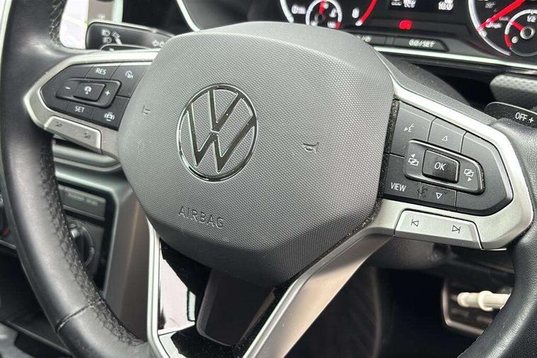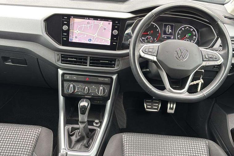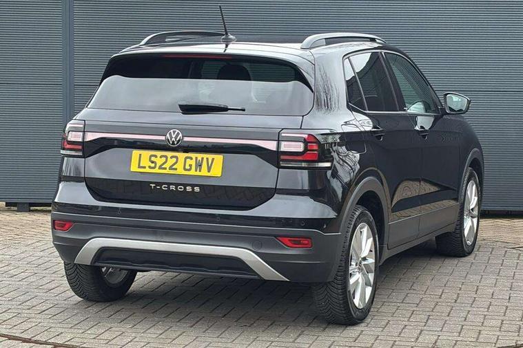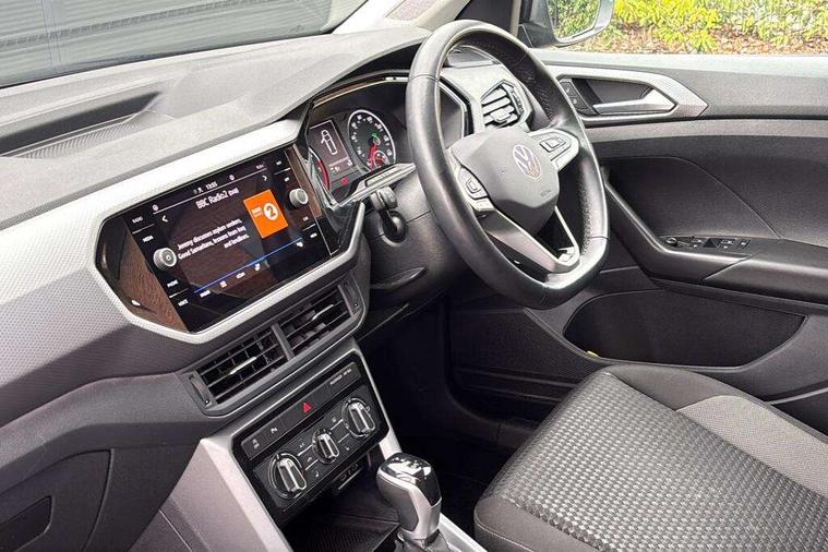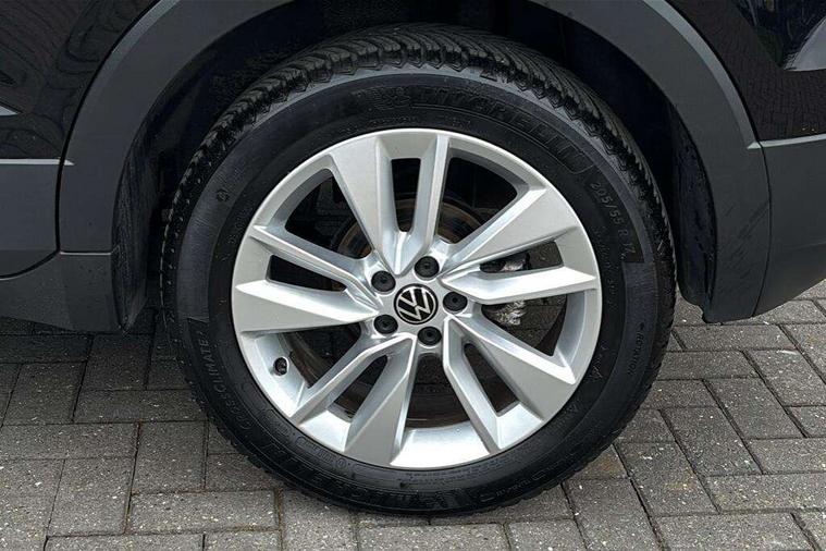 'Lights On' Reminder warning buzzer, Adaptive cruise control including front assist, forward collision warning, autonomous emergency braking, speed limiter, Blind spot monitoring, Bluetooth telephone and audio connection for compatible devices, Car information display, Driver alert system, eCall emergency call system, Lane assist, Low washer fluid warning light, Multifunction computer with visual gear change recommendation for fuel consumption, Operating permit alteration, Power assisted speed sensitive steering, Speedo, rev counter, electronic odometer, trip, service interval display, exterior temperature and fuel gauge, Stop/start system, Warning sound and light for doors and tailgate open, Warning sound and light for front seatbelts unfastened, We Connect Go Dongle, Wireless Car net app connect with Apple CarPlay, combined functionality of Apple CarPlay/Android Auto and MirrorLink, Battery regeneration during braking, Misfuel prevention device, 2x USB connection with USB charging sockets and in rear centre console, DAB Digital radio receiver, Diversity antenna for FM reception, Multi device interface (MDI) with USB connection, Music playback - MP3, WMA and AAC files, Premium USB cable for Apple or Android smartphone compatibility, Simultaneous pairing of 2 compatible mobile devices, Title and cover art display, 3D active badge on B-pillar, Active door sills, Active sill panel trims, Automatic hazard lights activation under emergency braking, Black roof rails, Body colour door handles, Body coloured bumpers, Dusk sensor + automatic driving lights, Electrically foldable, adjustable and heated door mirrors with reverse activated kerb view adjustment on passenger's side, Front and rear electric windows, Front fog lights with static cornering function, Galvanised body, Heated rear window, High level 3rd brake light, Lower door sills and door pillars in black, Radiator grille with high gloss surface and chrome strip, Rear fog light on one side, reversing light on both sides, Rear lights incorporating LED technology, Rear side wing doors, Rear tinted glass 65% approx light absorbing from B pillar backwards, Rear window aerial, Rear windscreen washer and wiper with interval delay, Reflectors in all doors, Tailgate with integrated roof spoiler, Windscreen wipers/ intermittent wipe + 4 position delay, 12V Accessory socket in centre console, 3 rear head restraints and 3 rear three point seat belts with ECE label, 3 seat bench in 2nd row, 60/40 split folding rear seat backrest, Ambient lighting and sourround lighting, Brushed stainless steel pedals, Drawer under drivers seat, Driver and front passenger sunvisor with vanity mirror, Driver's sunvisor with ticket holder, Dust and pollen filter, Front + rear carpet mats, Front and rear reading lights X 2, Front centre armrest with storage compartment, Front seat back storage pockets, Front seats with adj lumbar support, Glovebox, Heating and fresh air system with 4 stage blower, Height/reach adjust steering wheel, Instrument lighting white adjustable panel illumination, Interior light with delay, Isofix child seat preparation for 2 rear child seats, Luggage compartment cover, Luggage compartment lighting, Moveable and foldable Rear bench seat, Single front passenger seat, Storage compartment in drivers and front passengers door, Three spoke multi-function leather trimmed steering wheel and gearknob, Trapeze cloth upholstery, Variable boot floor, Winter pack - T-cross, Anti-lock Braking System (ABS) with Hydraulic Brake Assist (HBA), Automatic post collision braking system, Driver and front passenger safety-optimised head restraints, Drivers and Front Passengers airbags with front passengers airbag deactivation switch, ESC with EDL, ASR, EDTC and trailer stabilisation function, Extended and proactive pedestrian protection, Front and rear curtain airbags, Front seat side impact airbags, Height adjustable 3 point automatic front seatbelts with pretensioners, Hill start assist, Pre crash preventive occupant protection, Rear door child safety locks, Rigid safety cell with front and rear crumple zones, Single torn horn, Tyre pressure loss indicator, Volkswagen roadside assistance, Alarm with interior protection and deactivation via infotainment system, Child security locks in rear doors, Electronic engine immobiliser, Remote tailgate unlocking using key fob, Decorative strips in doors in matt silver/ center console, 17" Clayton alloy wheels + anti theft wheel bolts, Breakdown kit,