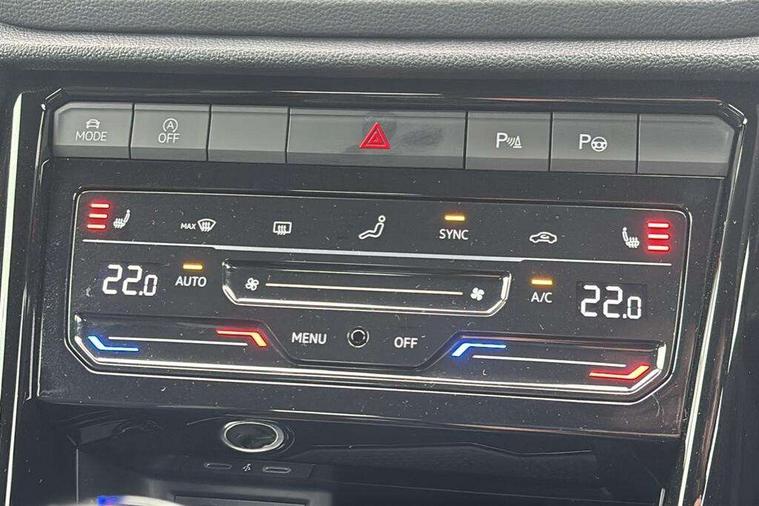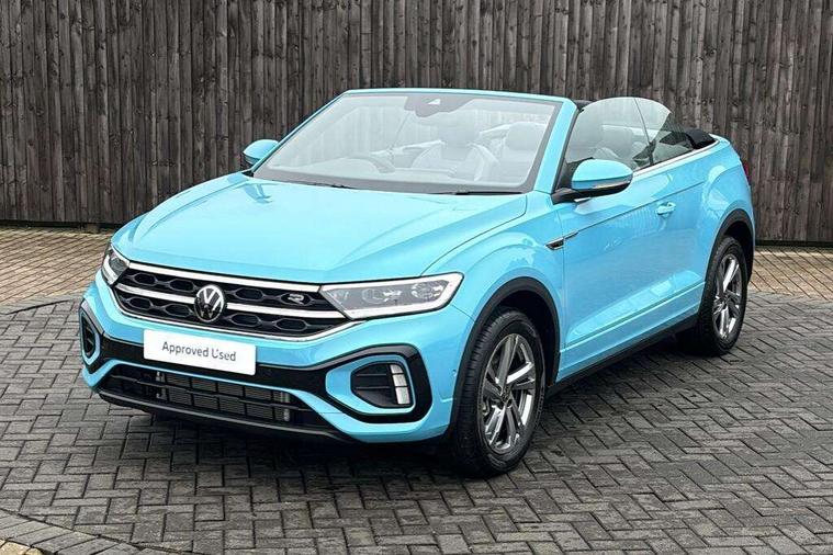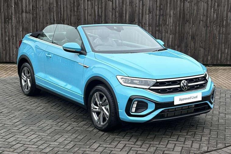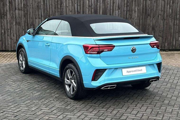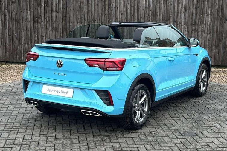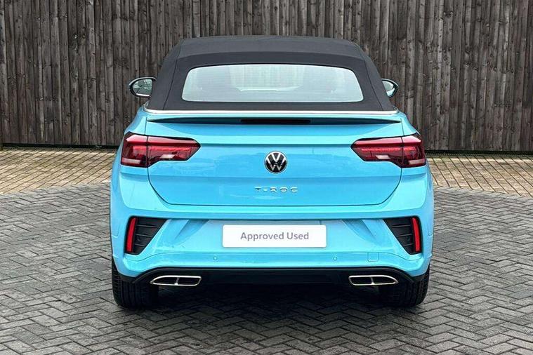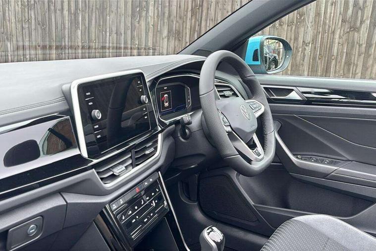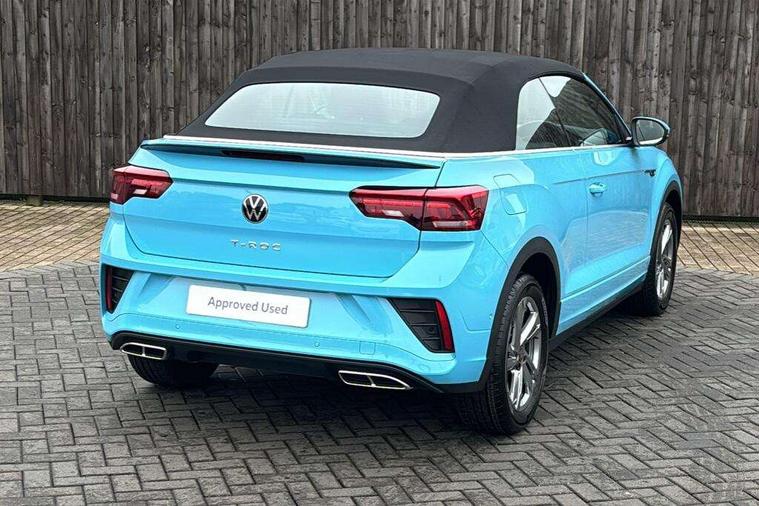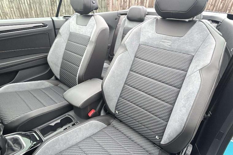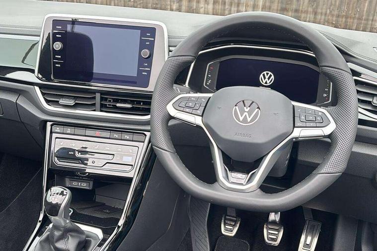 Adaptive cruise control and speed limiter, Advanced driver attention and drowsiness monitor, Brake pad wear indicator, Car information display, Digital Cockpit Pro with 10.25" Display, Driver tips and journey analysis, Dynamic road sign display, Emergency call service, Modified key software - reduce switch off time for key status change to Long no motion, Multifunction computer with visual gear change recommendation for fuel consumption, Multifunction front facing camera, Online services, Park assist including front and rear parking sensors, Speedo and rev counter, electronic odometer, trip, service interval display and exterior temperature gauge, Start/stop system with brake energy recovery, Tailgate/trunk lid release from outside, Warning sound and light for front seatbelts unfastened, Wireless App-Connect for apple Carplay and android Auto, Digital radio reception (DAB), Diversity antenna for FM reception, Mobile phone interface with inductive charging feature, Music playback - MP3, WMA and AAC files, SMS functionality - read, compose and send SMS messages using touch-screen display, Title and cover art display, USB-C Interface and USB charging socket, We Connect and We Connect Plus functionality, Ambient lighting with logo projection, Auto dimming interior rear view mirror, Automatic hazard lights activation under emergency braking, Automatic headlight control with LED separate daytime running lights with coming/leaving home function, Black roof, Body colour door handles, Body colour rear boot spoiler, Chrome effect left and right trapezoid exhaust tailpipe fascia surround, Chrome trim on upper and lower radiator grille, Dark red rear combination lamps in LED technology, Dusk sensor, Exterior mirrors aspherical on driver side, convex on front passenger side, Heat insulating glass windscreen, LED 3rd brake light, LED rear number plate lights, Power operated canvas convertible top, Power windows with comfort operation and circuit breaker, R-Line design body coloured bumpers, Rain sensor, Rear boot, Rear exhaust tailpipe, Rear fog light on one side and reversing lights on both sides, Remote electrically foldable door mirrors, puddle lights and reverse activated passenger door mirror, Volkswagen roundel, Windscreen wiper with intermittent wipe light, Without exterior ambient lighting, 12V socket in centre console storage area, 2 LED front reading lights, 2 seat bench in 2nd row, 50:50 Split folding rear seat backrests with fixed rear seat bench, Air care climatronic air conditoning system with active combination filter and 2-zone temperature control, Black door lower parts with chrome trim, Chrome plated surround to light, mirror and window switch, Door and side trim panel with leatherette insert, Easy entry backrest release, Front and rear carpet mats with black stitching, Front centre armrest, Front cupholders x 2, Front door pockets, Front seat back storage pockets, Front sports comfort seats with manual height adjustment, Heated multifunction leather sports steering wheel, Height/reach adjust steering wheel, Inserts of front seats and outer rear seats in ArtVelours titan black, Instrument lighting, white adjustable panel illumination, Interior light delay, Interior light in footwell, Interior lighting with switch off delay and contact switches on all doors, Interior white ambient lighting and surround lighting, Isofix child seat preparation, Lockable glove compartment with light, Luggage compartment lighting, Power adjustable lumbar support in front, Rear head restraints, Single front passenger seat, Stainless steel pedals, Sun visors with illuminated vanity mirrors, Unique R Line door sill protectors, Driver assistance pack without proactive passenger protection - T-Roc cabriolet, 2 x 3-point seatbelts/outer rear seats with ECE label, Driver and front passenger airbag with front passenger airbag deactivation, Driver and front passenger safety-optimised head restraints, Drivers seatbelt reminder, Electronic parking brake, Electronic Stability Control (ESC) including ABS, ASR and EDL, Front and rear disc brakes, Front assist with autonomous emergency braking, Pedestrian monitoring, Predictive pedestrian protection, Rigid safety cell with front and rear crumple zones, Side airbag/thorax airbag system, for front passengers, Three point height adjust front seatbelts + pretensioners, Two tone horn, Tyre pressure loss indicator, Volkswagen roadside assistance, Anti-theft alarm system with interior protection and central locking system with SAFELOCK, radio remote control and 2 remote control folding keys, Electronic engine immobiliser, Trims for alloy wheels,