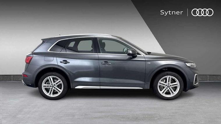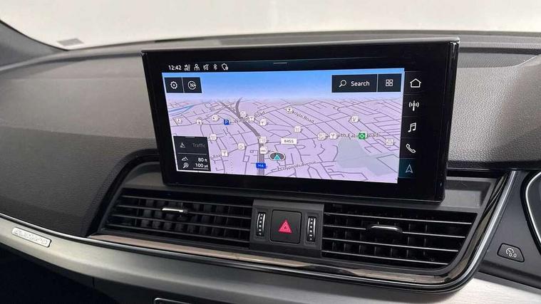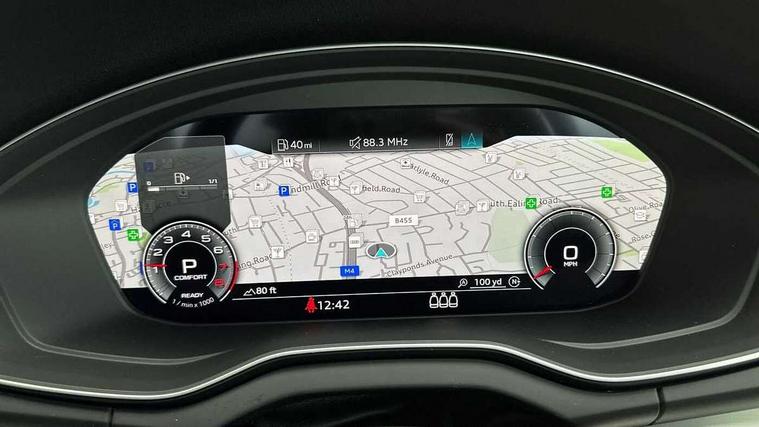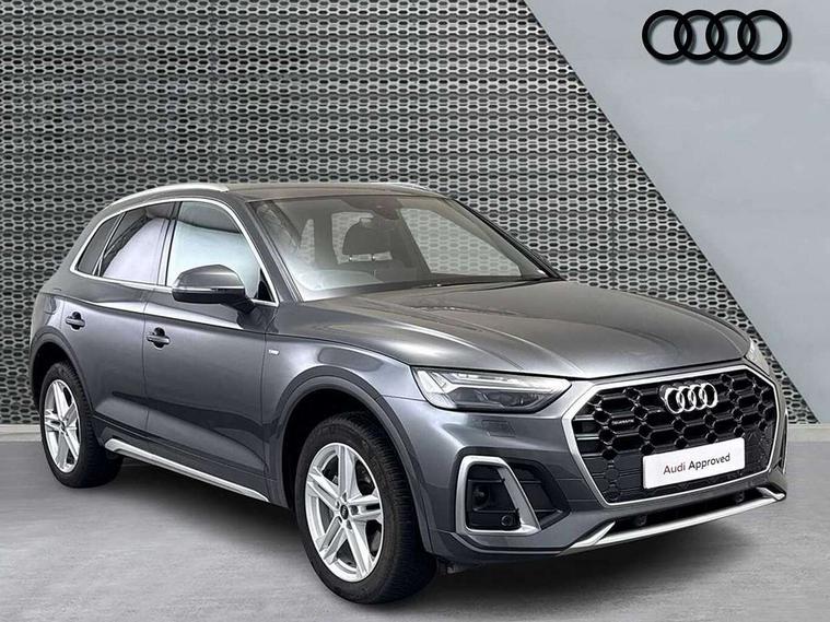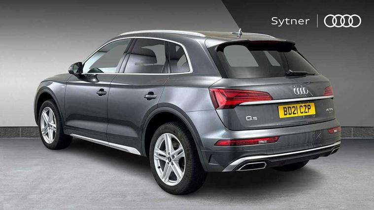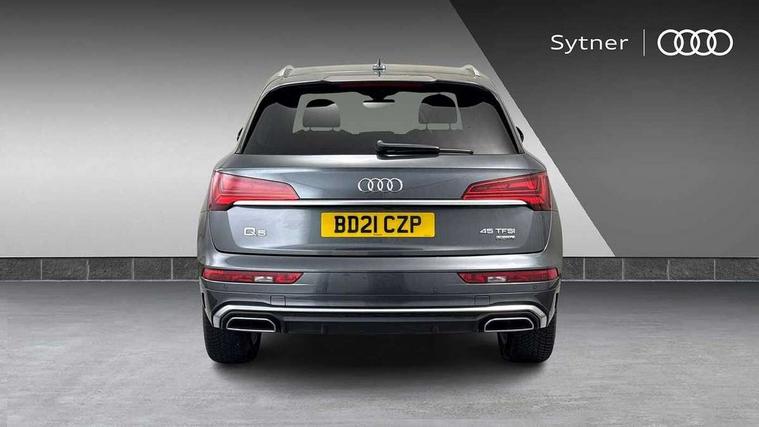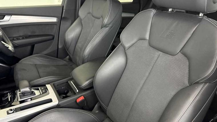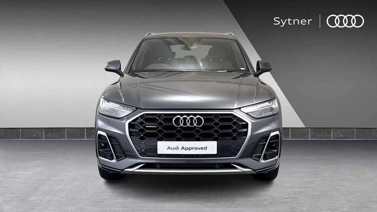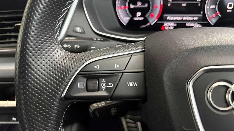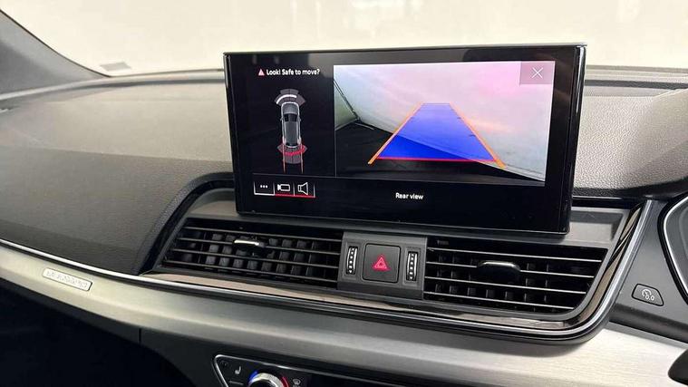 Amazon alexa Integration, Audi connect safety and service (e-call), Audi drive select, Audi virtual cockpit plus with 12.3" screen and three different layout designs, Audi wireless smartphone interface, Automatic start-stop system with coasting functionality and efficiency programme, Electro - mechanical power assisted steering, MMI navigation plus with 10.1" touch screen, Mobile telephone preparation - bluetooth interface, Power tailgate, Service interval indicator, Voice control system with Audi hotword activation "Hey Audi", Quattro on demand, 2 USB charging ports, DAB Digital radio, Acoustic windscreen, Aluminium roof rails, Audi matrix LED headlights with LED rear lights + dynamic front and rear indicators, Auto dimming rear view mirror, Automatic headlight adjustment, Automatic headlights and windscreen wipers, Body colour bumpers, Body colour door mirrors, Body colour rear diffuser with matt aluminium silver surrounds, Body colour underbody protection, Chrome plated exhaust trims, Door sills in Selenite silver, Electric adjustable/heated/folding door mirrors, Front air inlet surrounds in aluminium, Front and rear electric windows, Front radiator grille in honeycomb design, Headlight washers, Lower bumpers painted in contrast Manhattan grey, Rear chrome trim strip below lights, Rear privacy glass and rear side windows, Rear spoiler, Rear wiper, Roof bars, S Line badges on the front wings, S Line front and rear bumpers, S Line side skirts, 3 rear headrests, 40:20:40 split folding rear seat with rear centre armrest, Black cloth headlining, Contrast stitching on seats, steering wheel and gear lever gaiter, Deluxe 3 zone electronic climate control, Front centre armrest, Front/rear floor mats, Gear lever in black leather, Heated front seats, Height adjustable front head restraints, Height/reach adjustable steering column, Illuminated door sill trims with S logo, ISOFIX child seat mounting and top tether, Manual seat adjustment with 4-way electric lumbar support, Removable luggage compartment floor, Stainless steel pedals, Sunvisors with vanity mirrors, Trunk roller cover, High gloss pack - Q5, LED interior light pack - Q5, 3 point seatbelts on all seats, 6 airbags - Driver, front passenger, curtain and side airbags, Electrically operated child locks on rear doors, Electromechanical parking brake, Electronic stabilisation control including ABS, ASR and EDL, Front passenger airbag deactivation, Hill descent control, Hill hold assist, Multi collision brake assist, Pop-up bonnet for pedestrian protection, Pre sense city, Seat belt force limiter, Seatbelt monitoring, Tyre pressure warning, Warning triangle and first aid kit, Anti theft alarm, Anti-theft wheel bolts, Keyless Go access/ignition system, Matt brushed aluminium inlays, Tool kit,