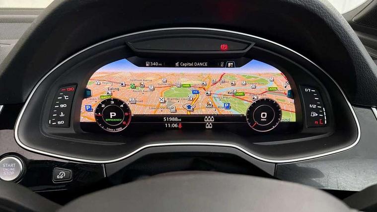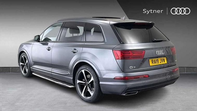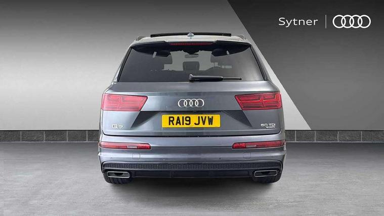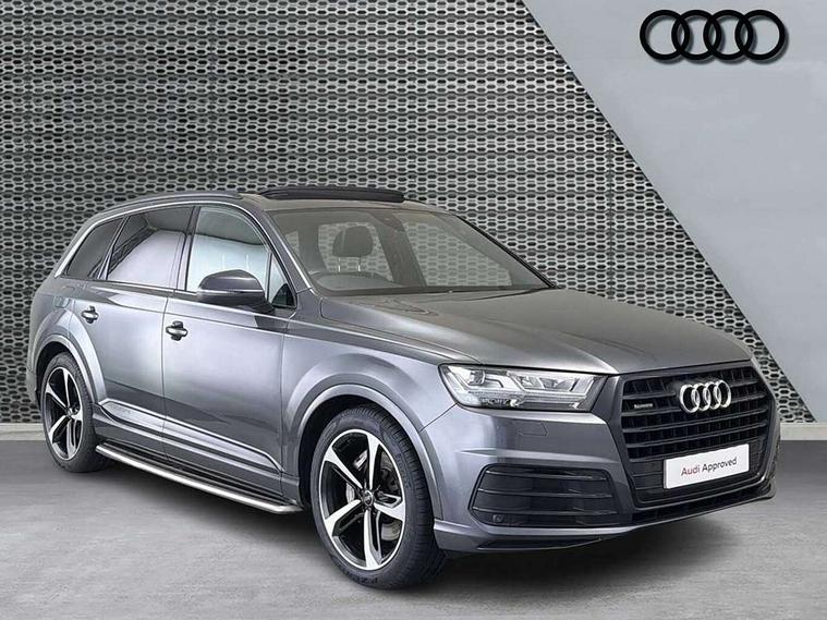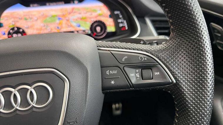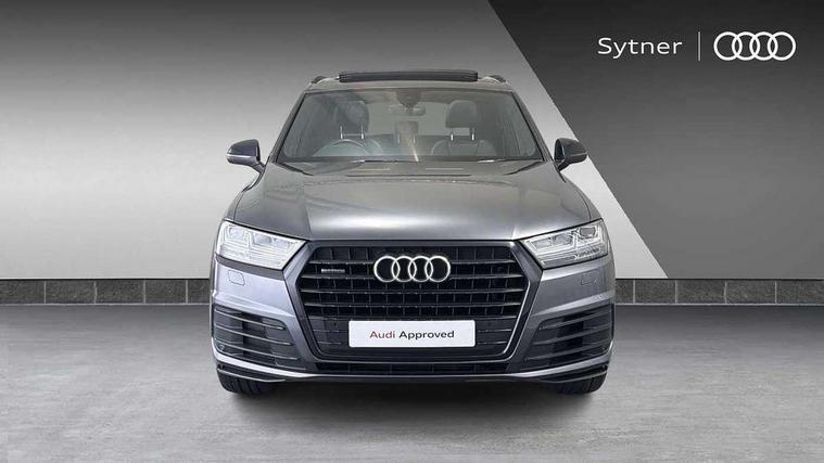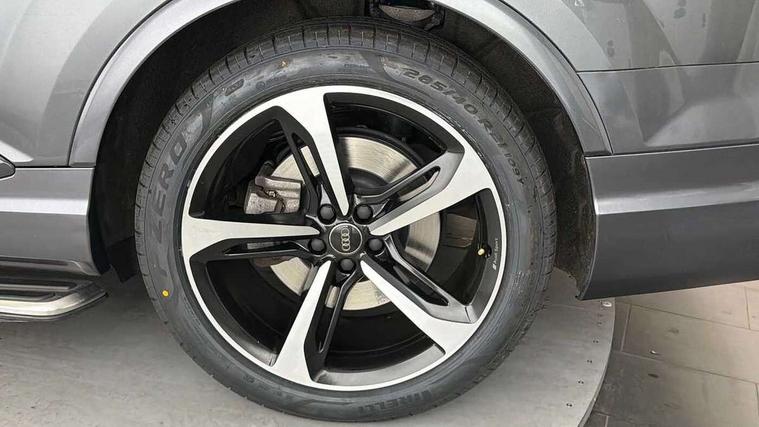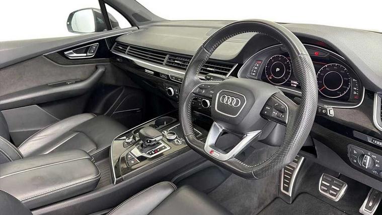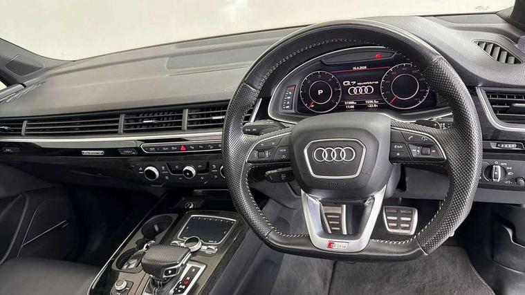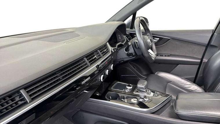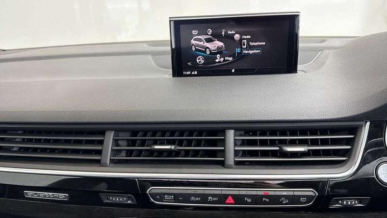 8.3" central fold-down colour display with high-resolution graphics, Audi connect safety and service (e-call), Audi drive select, Audi phone box with wireless charging, Audi smartphone interface, Audi virtual cockpit - 12.3" high-resolution LCD display with fully customisable instrument cluster, Colour driver's information system display, MMI - Multi Media Interface control system, MMI navigation plus with MMI touch, Mobile phone preparation with bluetooth interface, Power tailgate, Service interval indicator, Servotronic speed related PAS, Speed limiter, Start/Stop system with energy recuperation, Voice control system, Adaptive air sports suspension, 2 USB ports, 2x SD card slot, Audi music interface, Aux-in socket, DAB digital radio module, DVD System, MMI radio plus, Acoustic windscreen, Auto dimming rear view mirror, Body coloured bumpers, Electric front+rear windows, Electric panoramic glass sunroof, Electric/heated/folding door mirrors with memory, Green tinted heat insulating glass, Headlight washers, High beam assist, LED daytime running lights, Loading sill protector in stainless steel, Platinum grey front lip spoiler, Privacy glass, Rain and light sensors, Rear wiper, Roof spoiler, 2 cupholders in front centre console, 35/30/35 split fold 2nd row seats, Electric 3rd row 50/50 split/fold, Front ashtray and cigar lighter, Front centre comfort armrest with storage + cupholders, Front head restraints, Front/rear floor mats, Gearshift paddles, ISOFIX child seat mounting for 6 passenger seats with front passenger airbag deactivation includes top tether, Leather gear knob, Luggage compartment cover, Rear centre armrest with 2 cupholders, Rear headrests, Stainless steel pedals, Sunvisors with illuminated vanity mirrors, Interior light pack - Q7, 3 point seatbelts on all seats, ABS+Electronic Brake force Distribution, Curtain airbags, Driver and passenger airbags, EDL + ASR, Electrically operated child locks on rear doors, Electromechanical parking brake, Electronic stability control, Front side airbags, Hill descent control, Hill hold assist, Seatbelt warning, Traction control, Tyre pressure loss indicator, Warning triangle and first aid kit, Anti theft alarm, Anti-theft wheel bolts, Immobiliser, Keyless Go access/ignition system, Remote central locking, Chrome door inserts, Tool kit, Tyre repair kit,